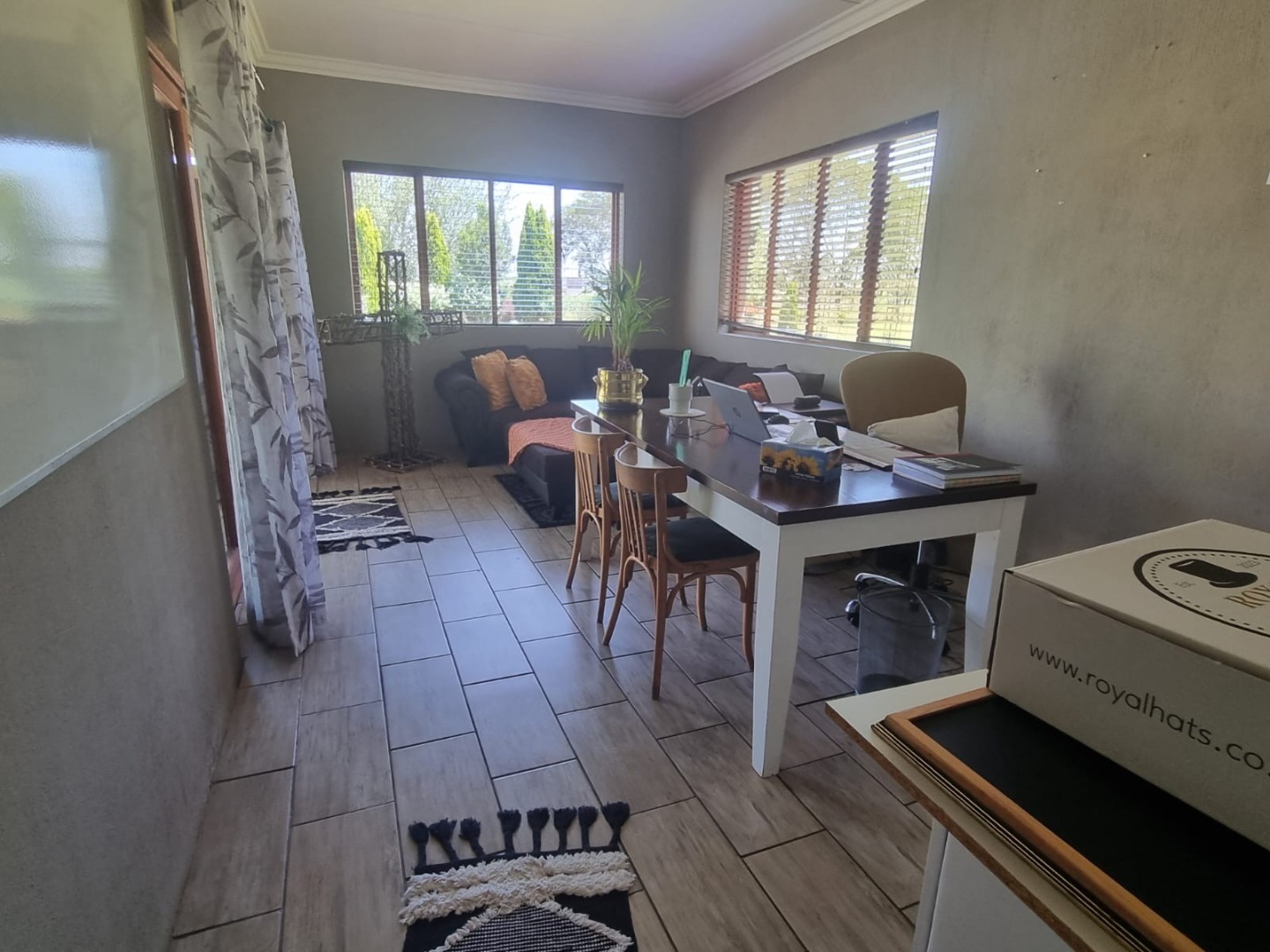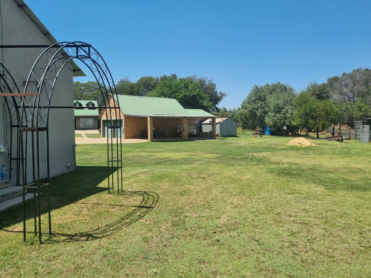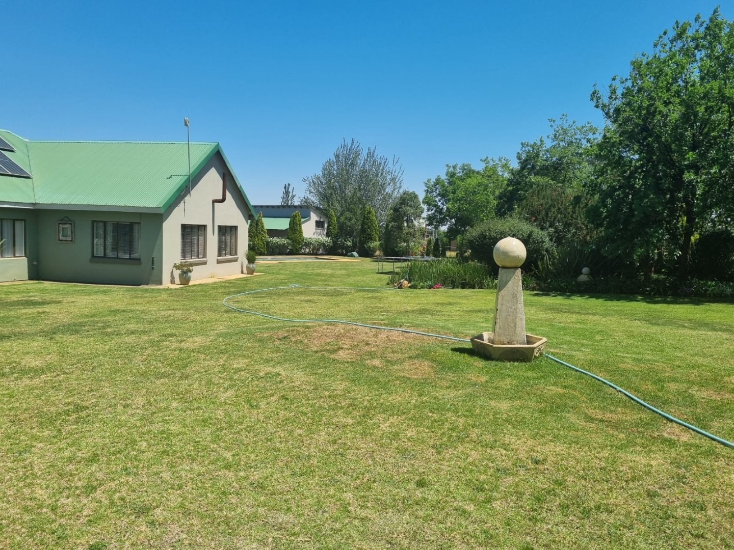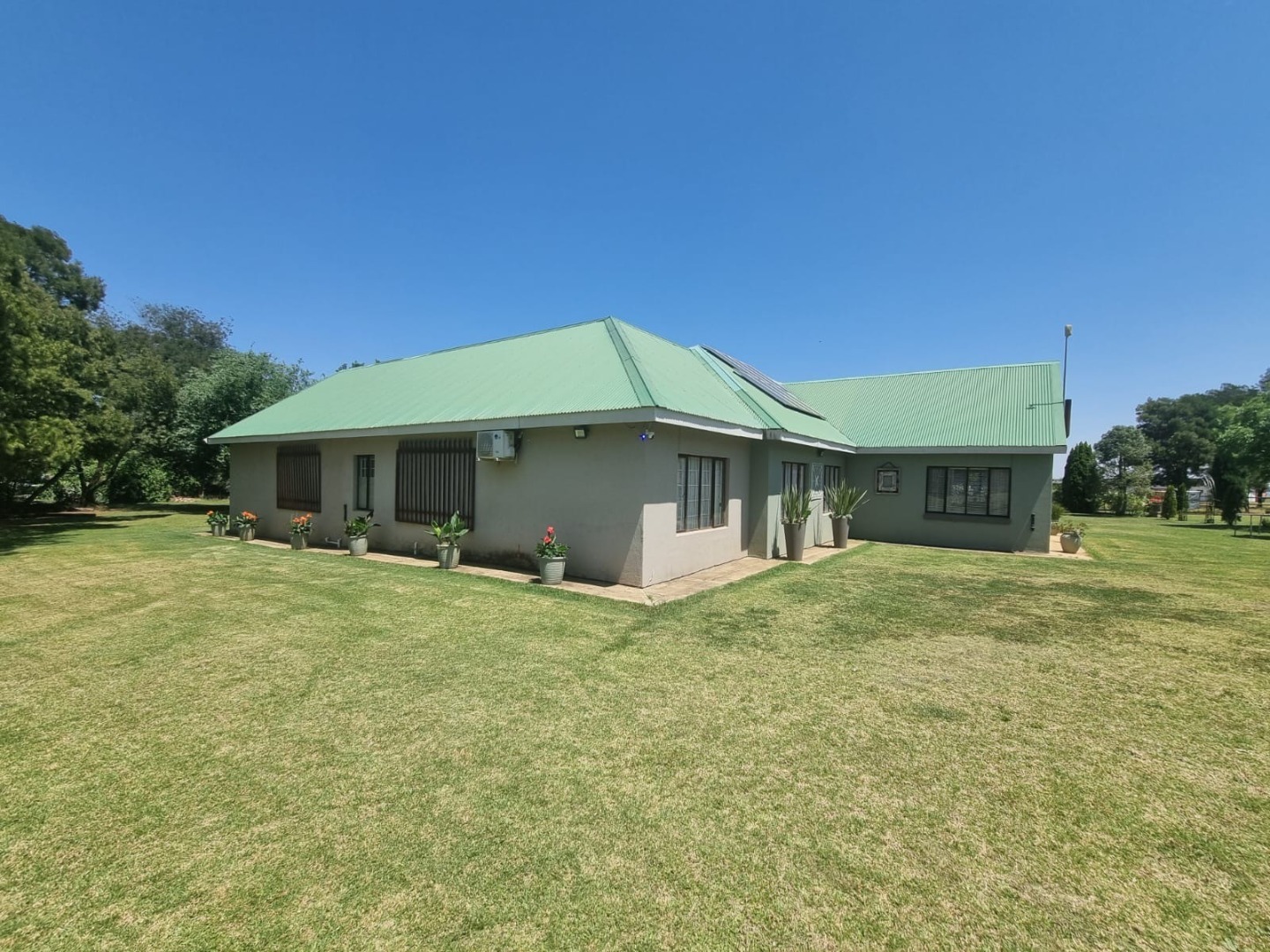 Discover this expansive lifestyle farm property located in Nestpark AH, Bronkhorstspruit, offering a blend of spacious living and outdoor amenities. This substantial residence spans 579.00 sqm on a generous 22000.00 sqm erf, providing ample room for comfortable family life and entertaining. The interior features a well-appointed layout with four bedrooms and three bathrooms, complemented by a convenient guest toilet. The home includes a dedicated study, a welcoming entrance hall, a spacious lounge, and a dining room, all designed with an open-plan flow. Practical elements such as a pantry, laundry room, wood ceilings, and special lighting enhance the living experience. Step outside to embrace the impressive outdoor offerings. The property boasts a private swimming pool, perfect for relaxation and recreation. An inviting covered patio with a built-in braai provides an ideal setting for outdoor dining and social gatherings. With two garages and six additional parking spaces, including a driveway, there is abundant secure parking for residents and guests. The large, well-maintained grounds feature mature trees, creating a serene and private environment. Security is well-addressed with an alarm system, access gate, and a totally walled perimeter, ensuring peace of mind. The property also benefits from a borehole and water tanks, contributing to water resilience. This lifestyle farm offers a unique opportunity for those seeking a spacious home with extensive outdoor features in a tranquil setting. Key Features: * 4 Bedrooms, 3 Bathrooms * Guest Toilet & Study * Lounge, Dining Room, Kitchen, Pantry * Private Swimming Pool * Covered Patio with Built-in Braai * 2 Garages, 6 Parking Spaces * Borehole & Water Tanks * Alarm System & Access Gate * Totally Walled Property * Wood Ceilings & Special Lights