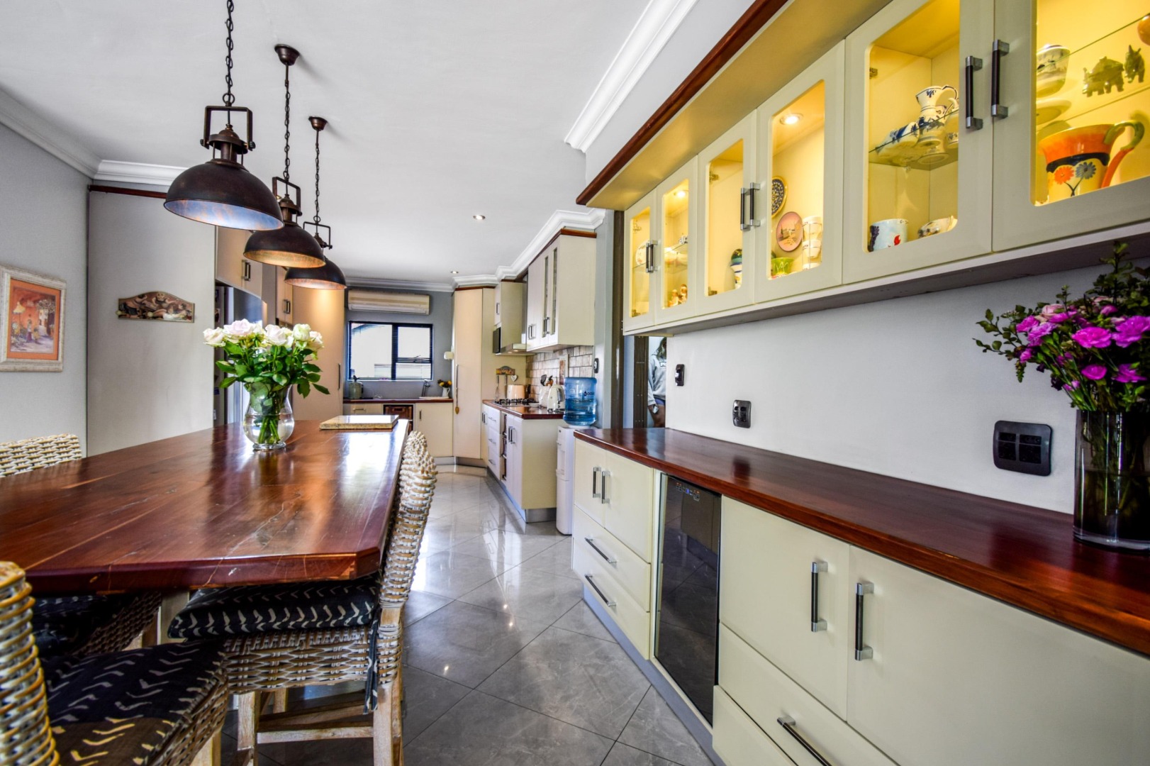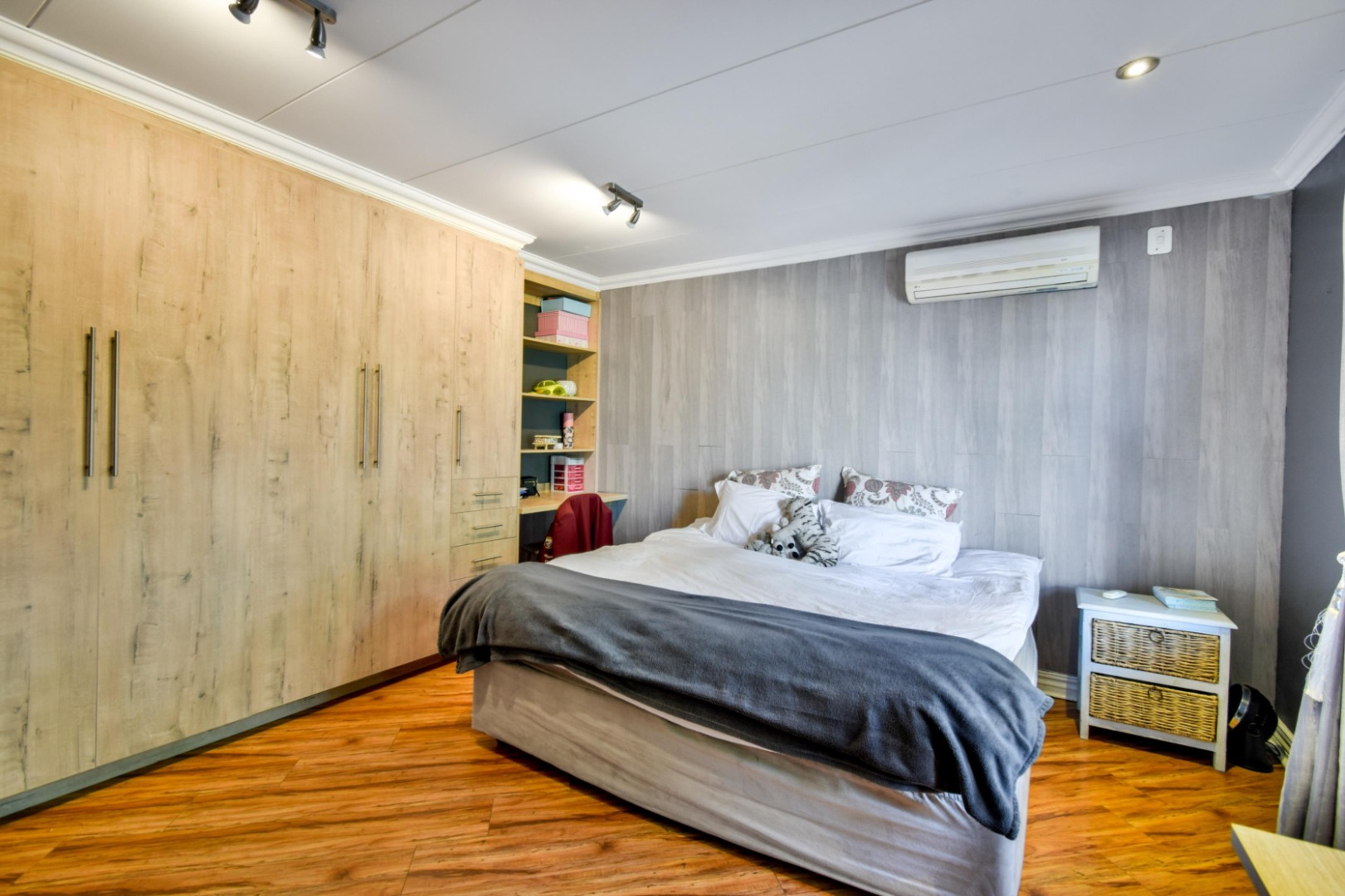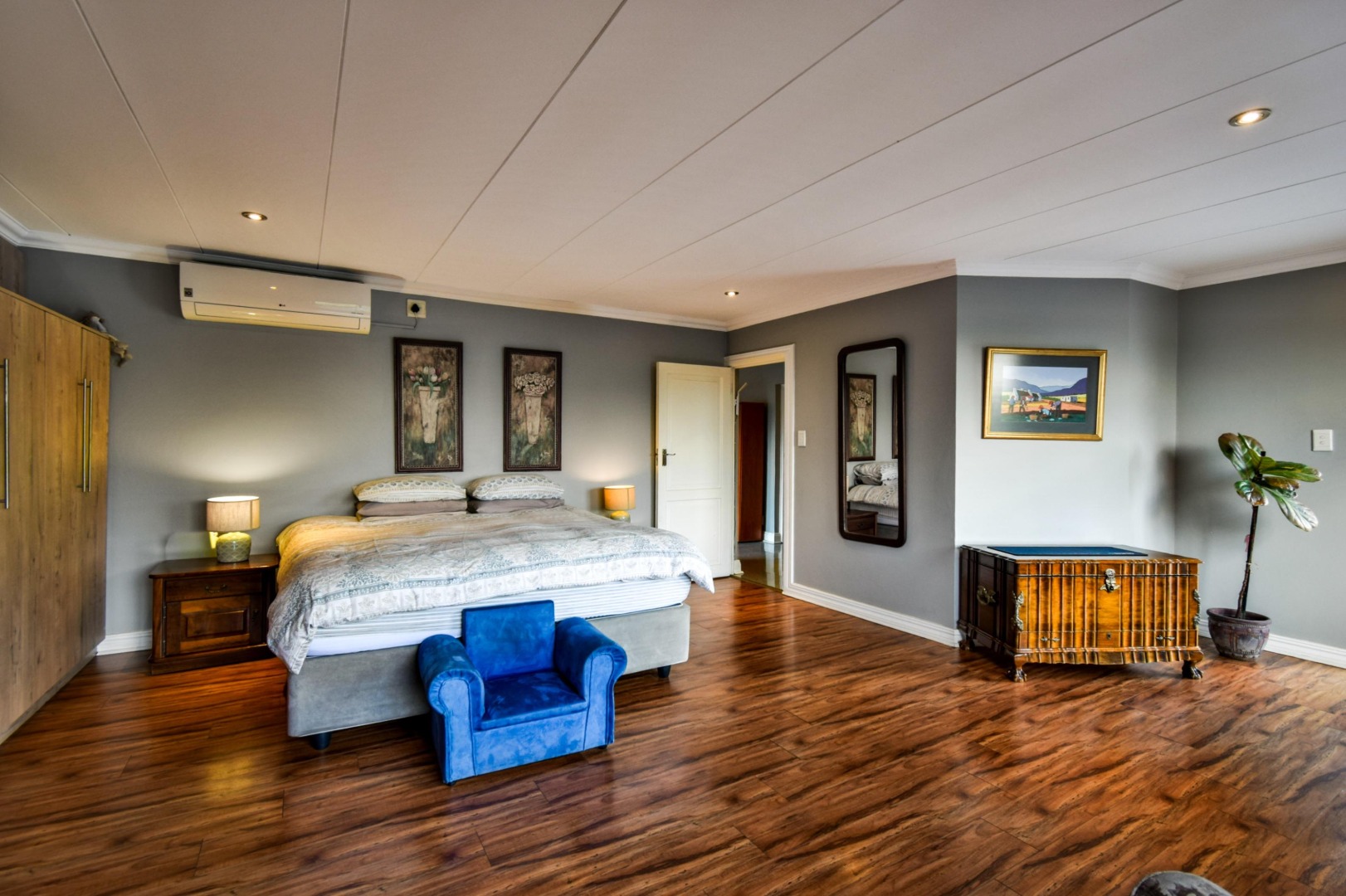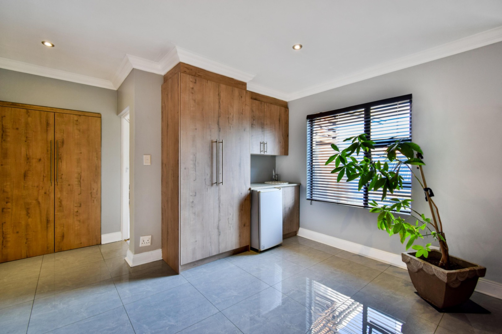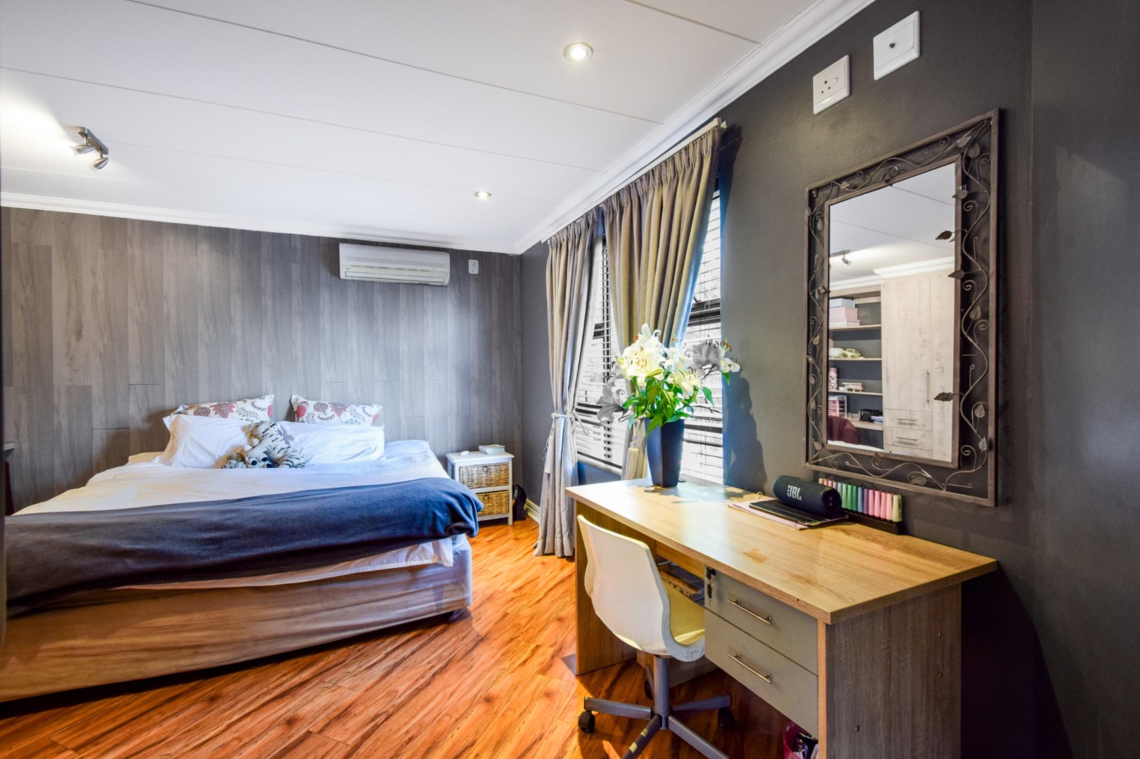 The upper level opens to a spacious pajama lounge with air conditioning and a convenient kitchenette. There are four large bedrooms, all en-suite and fitted with ample built-in cupboards and air conditioning. A generous linen cupboard provides extra storage space.