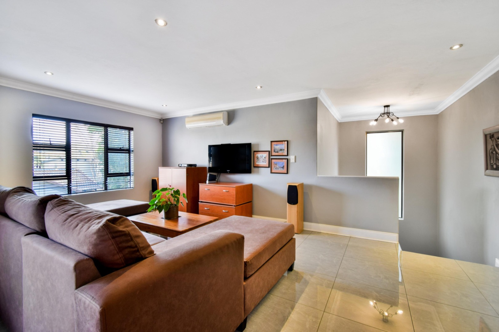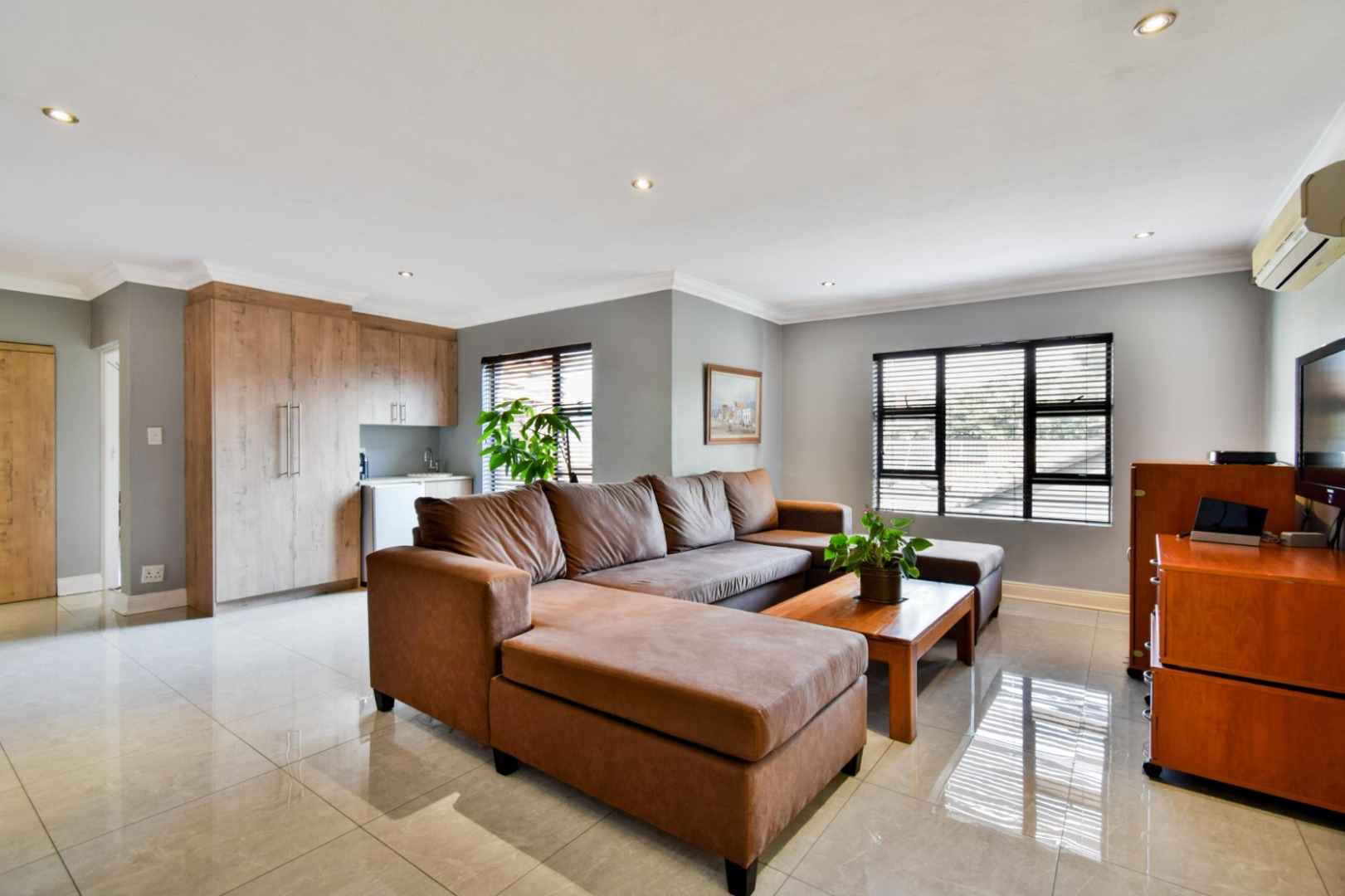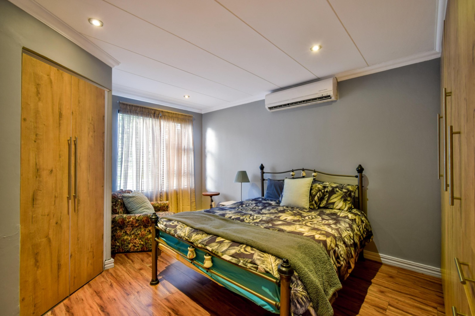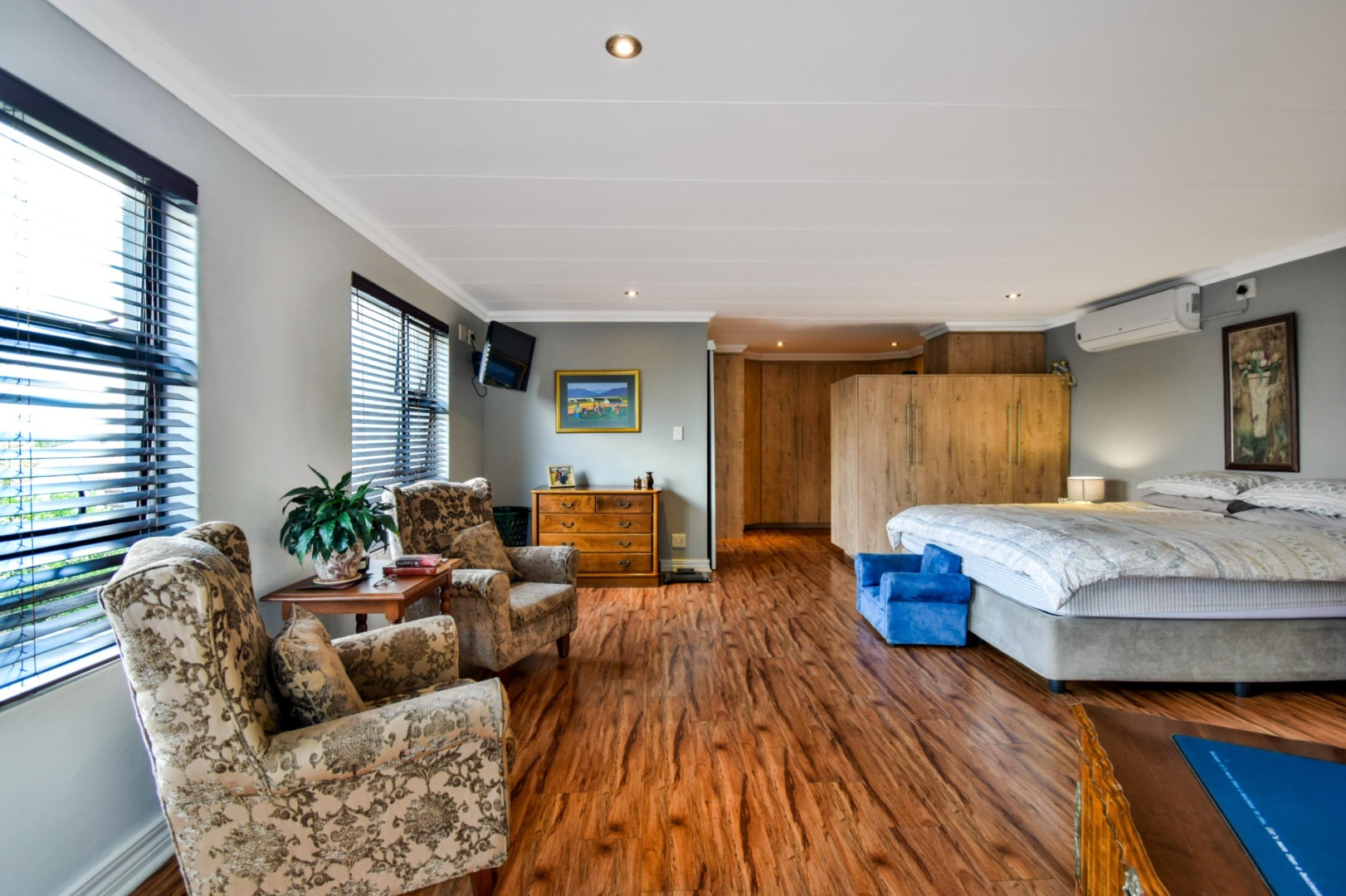 The upper level opens to a spacious pajama lounge with air conditioning and a convenient kitchenette. There are four large bedrooms, all en-suite and fitted with ample built-in cupboards and air conditioning. A generous linen cupboard provides extra storage space.