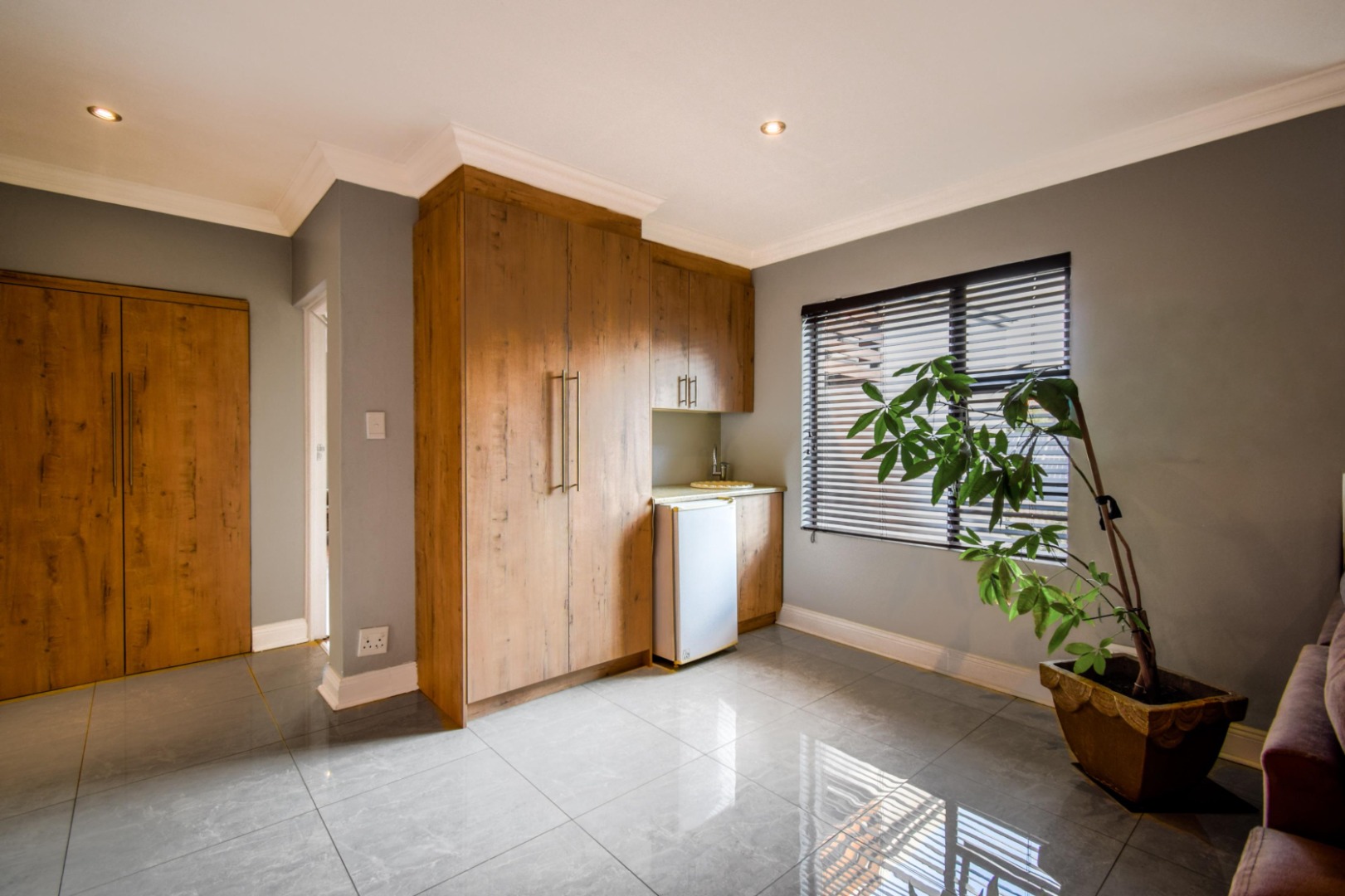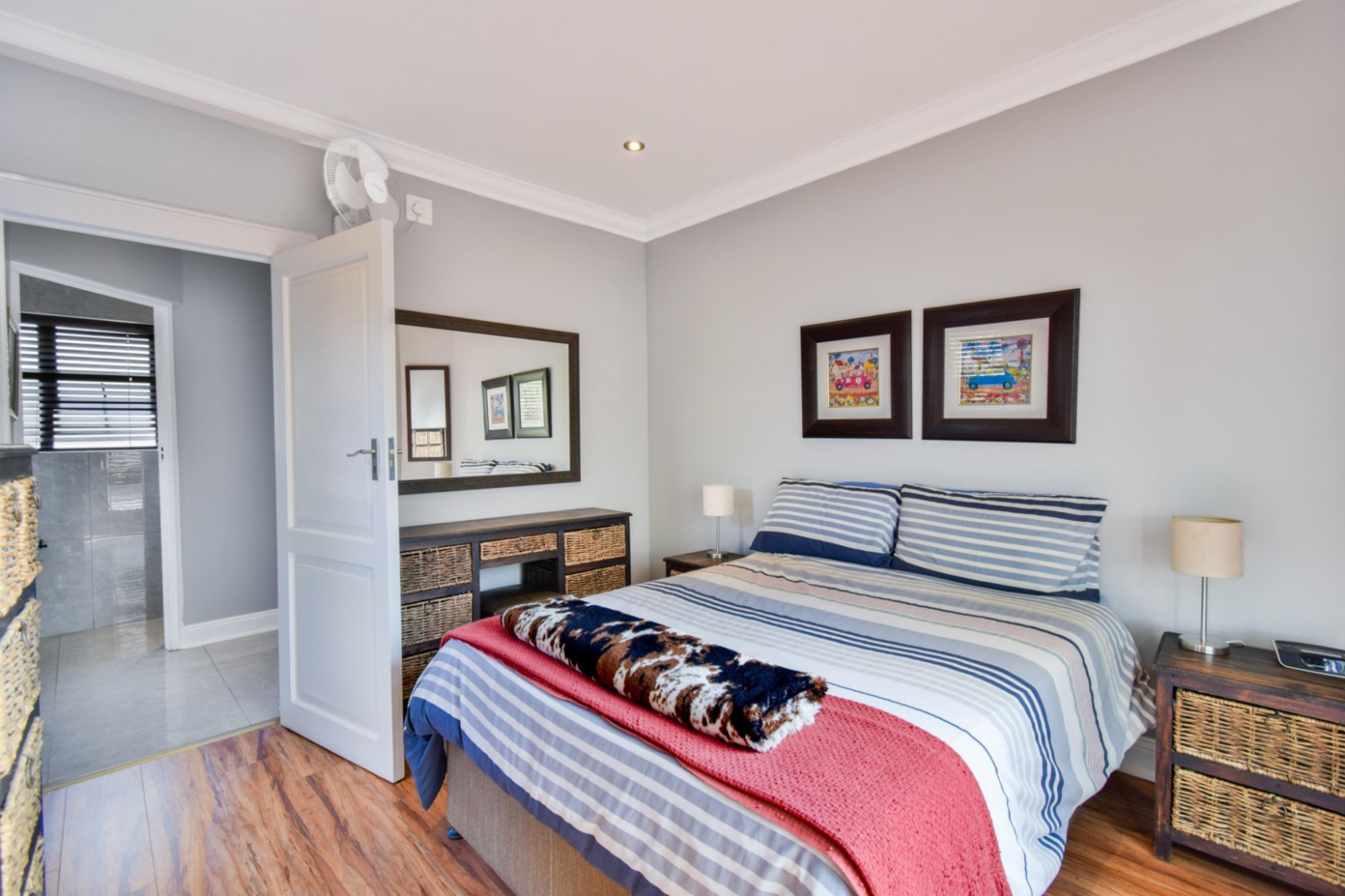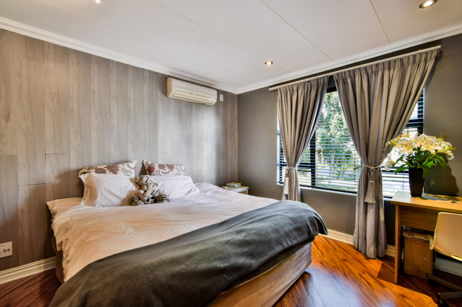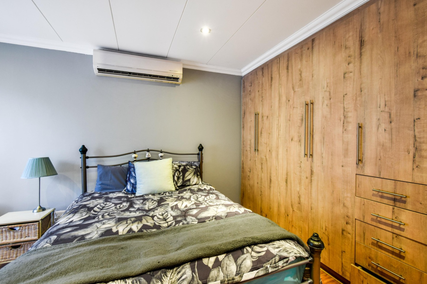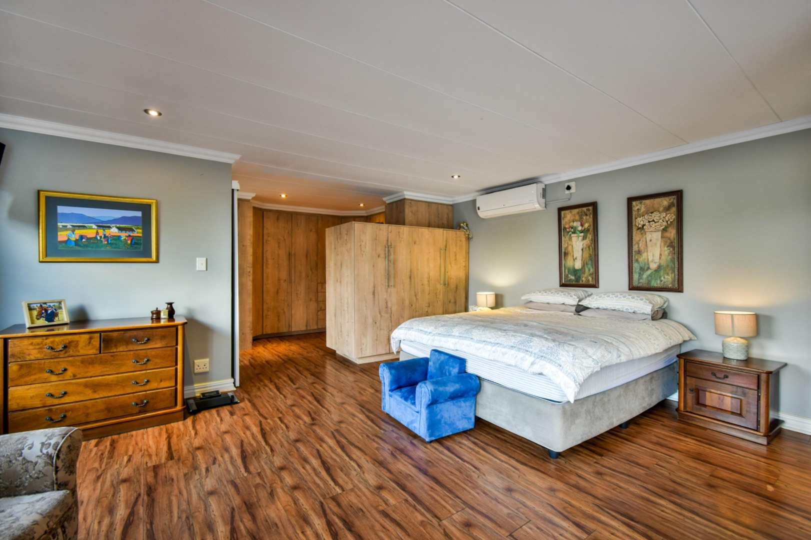 The upper level opens to a spacious pajama lounge with air conditioning and a convenient kitchenette. There are four large bedrooms, all en-suite and fitted with ample built-in cupboards and air conditioning. A generous linen cupboard provides extra storage space.