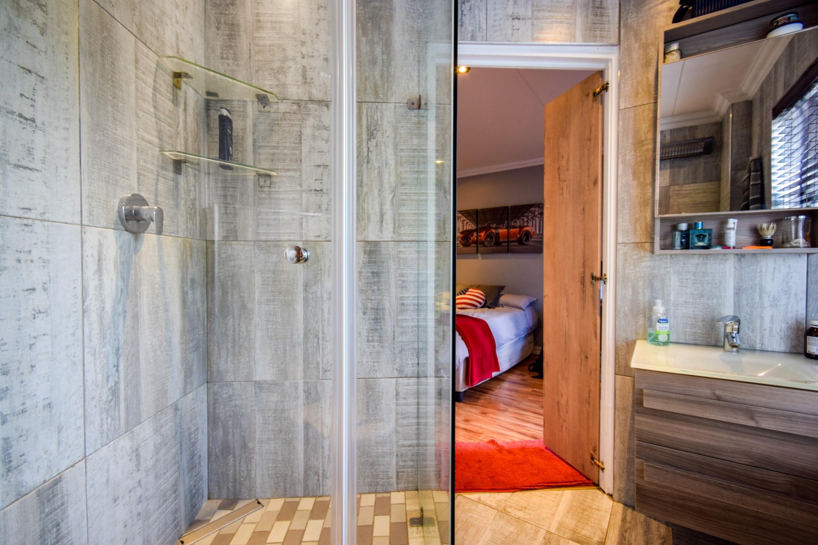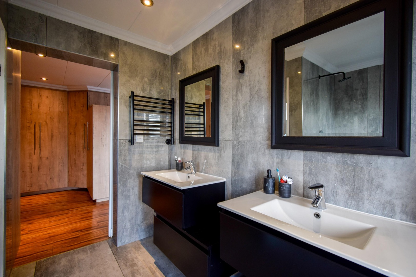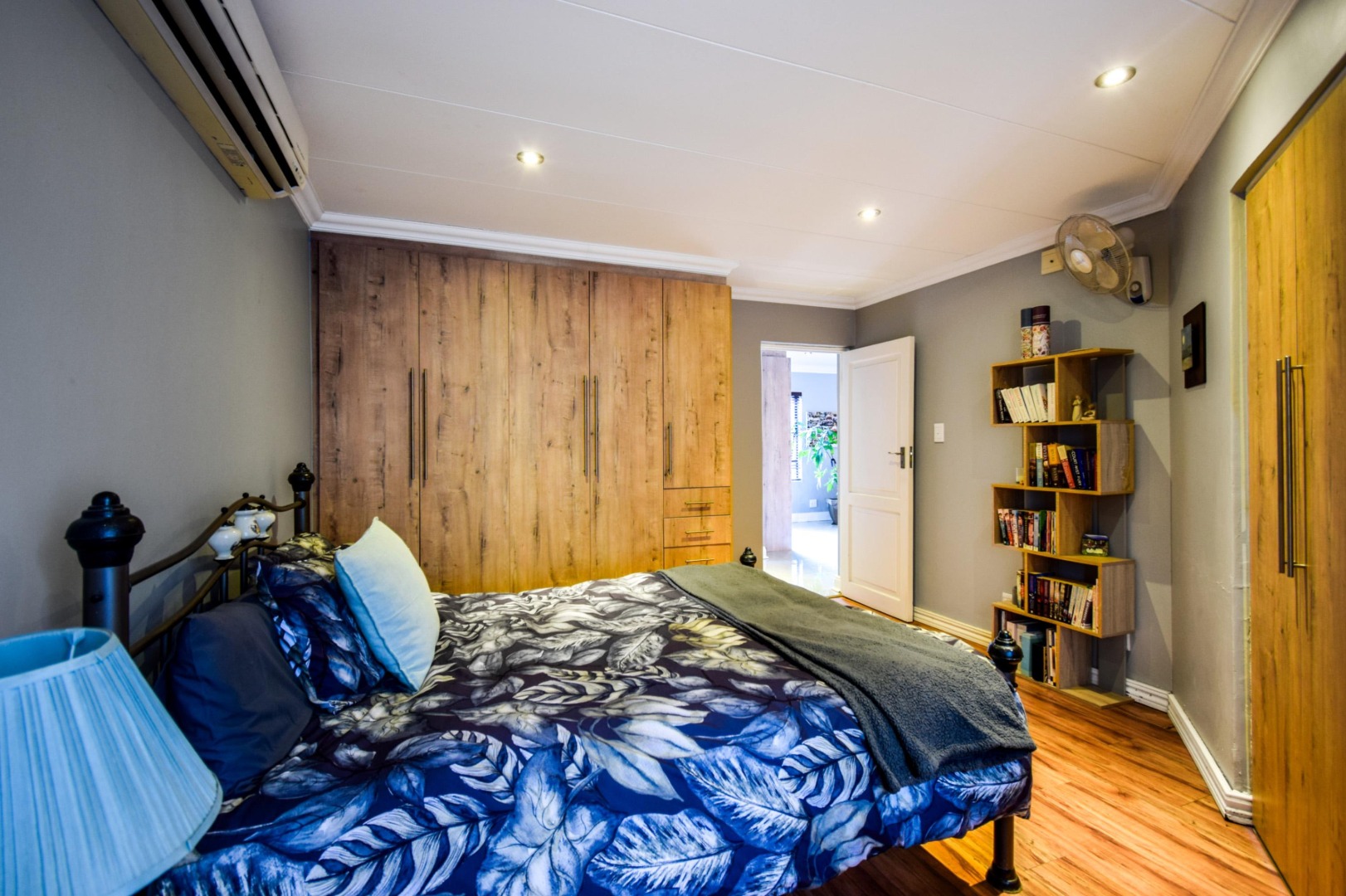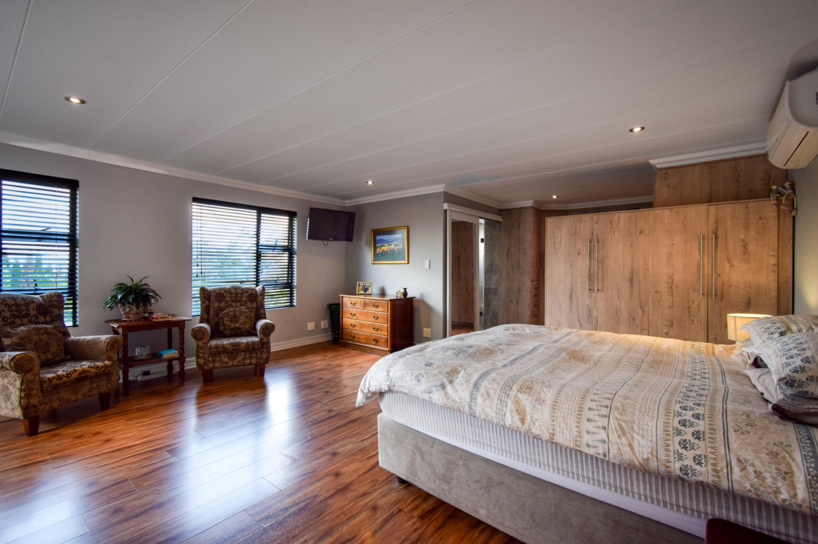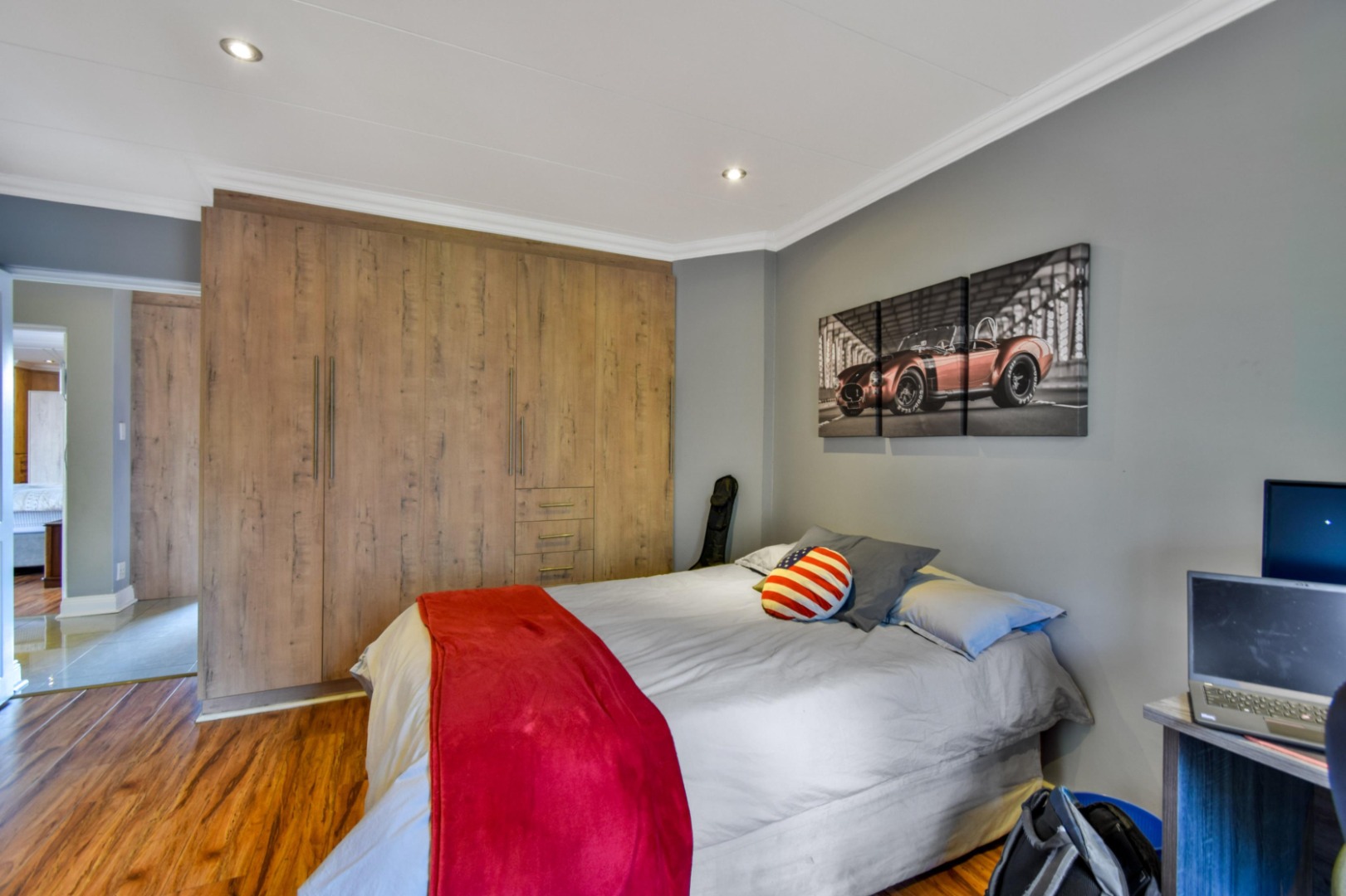 The upper level opens to a spacious pajama lounge with air conditioning and a convenient kitchenette. There are four large bedrooms, all en-suite and fitted with ample built-in cupboards and air conditioning. A generous linen cupboard provides extra storage space.
