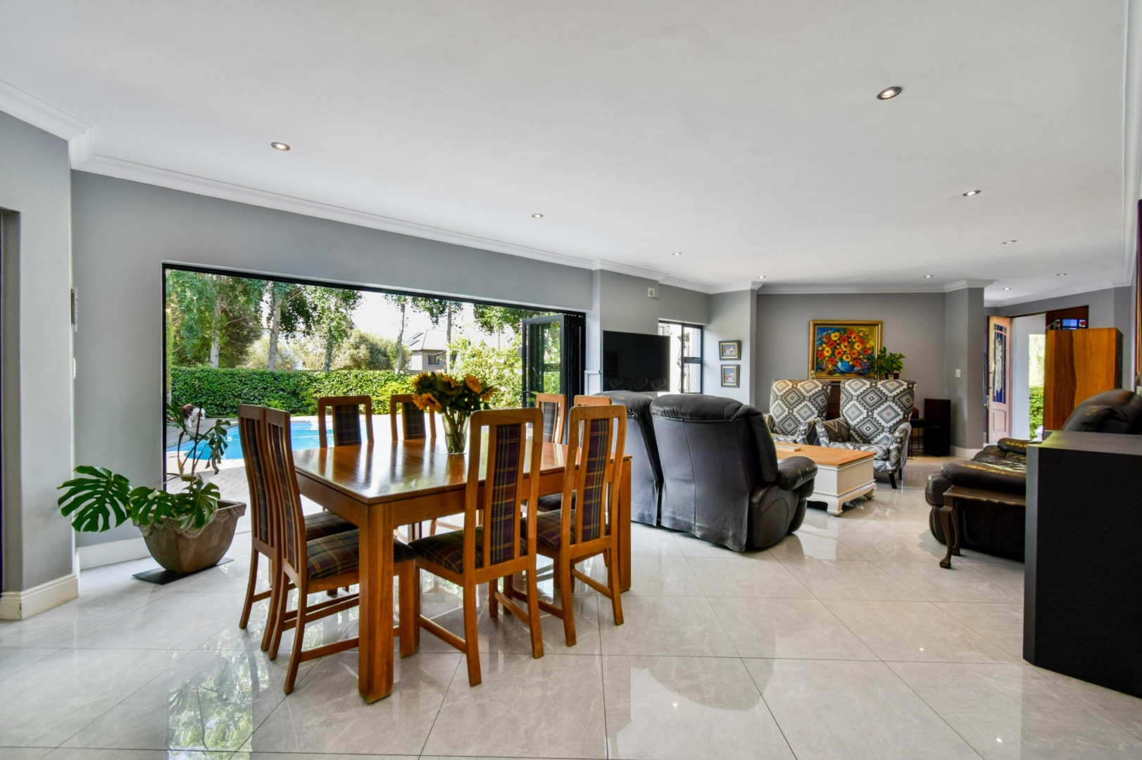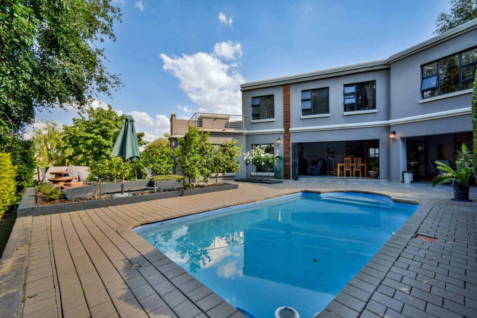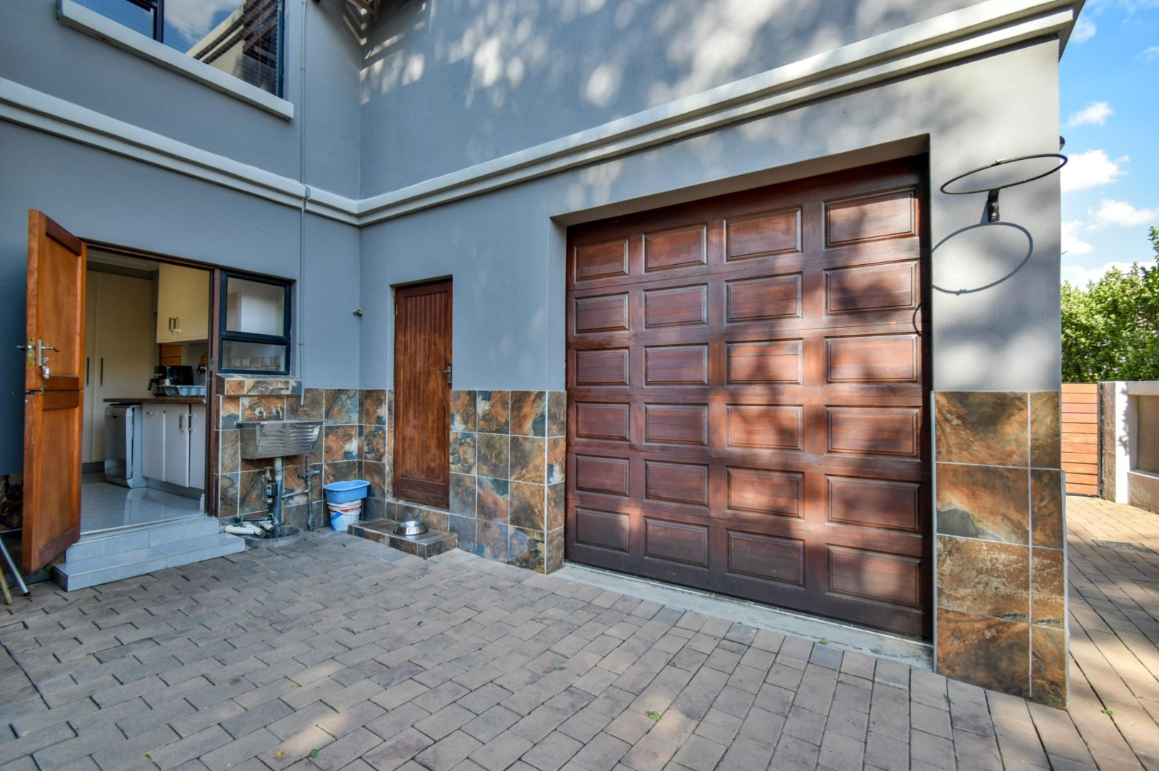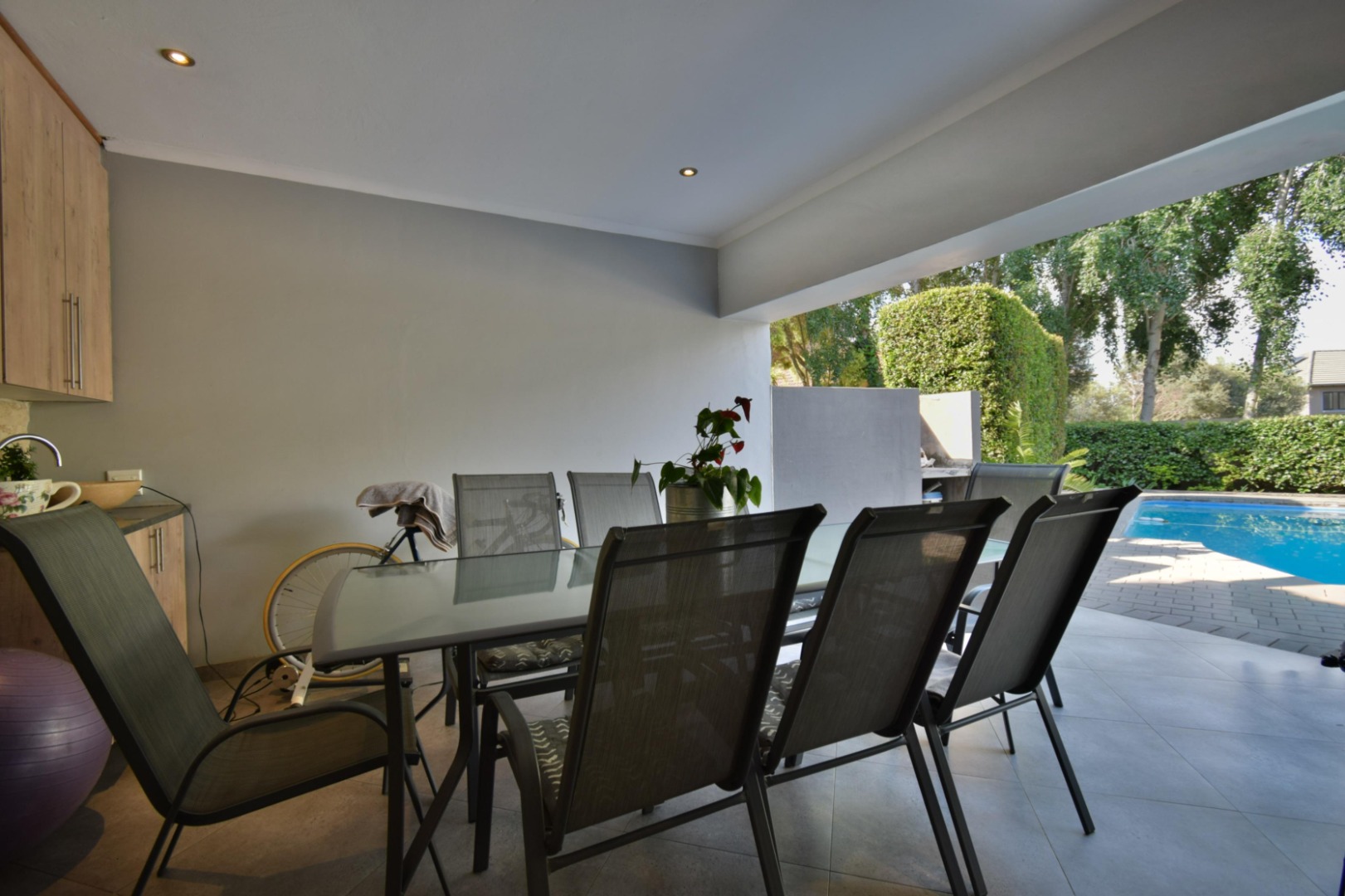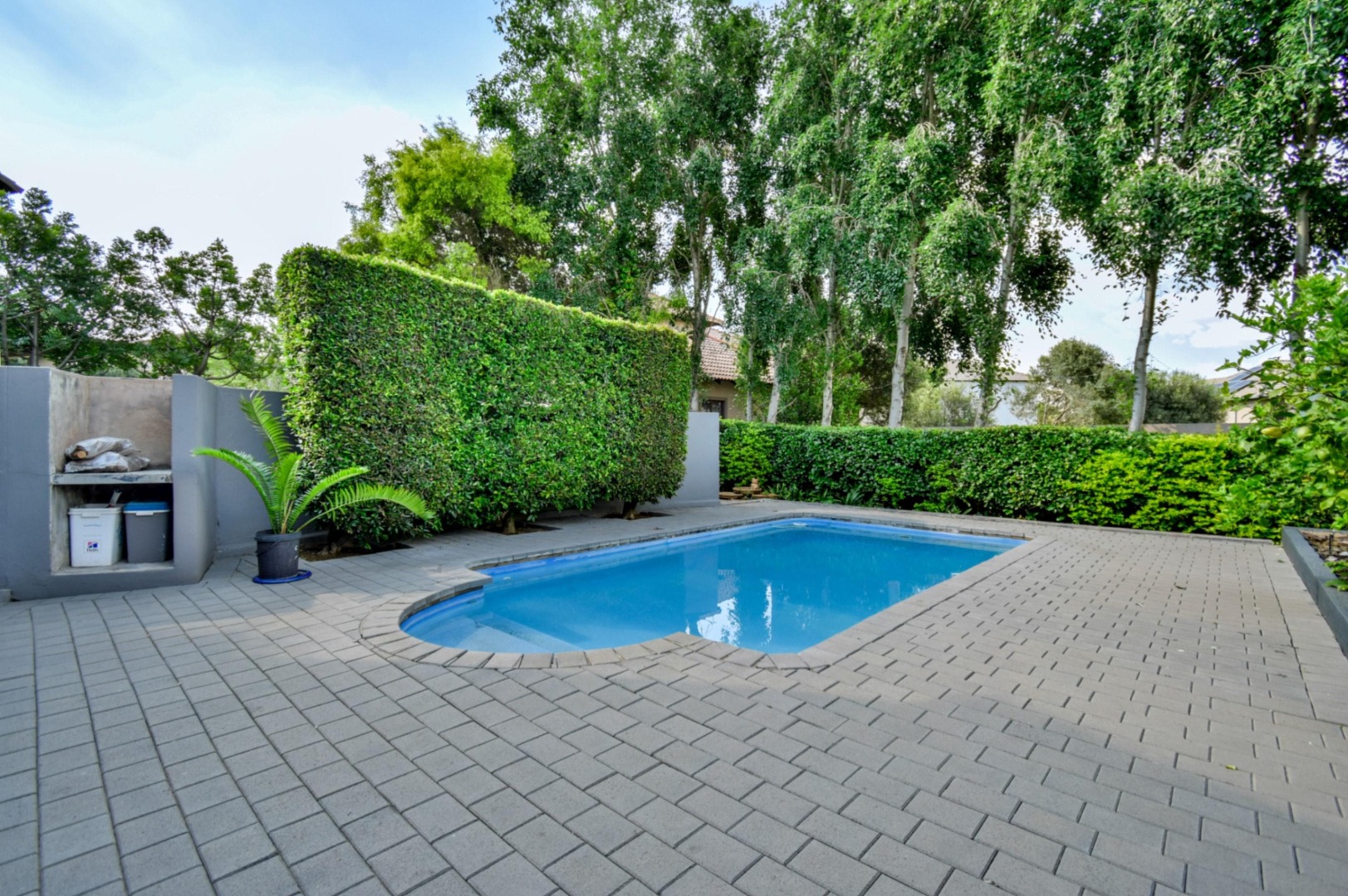 Enjoy the beautifully maintained large lawn with a fully automated sprinkler system, perfect for kids and pets. Entertain with ease around the boma, covered patio, braai area, and sparkling swimming pool. Additional features include three automated garages (with one drive-through), ample extra parking, water tanks with pump, staff quarters, washing line, and a generator switch-over for peace of mind.