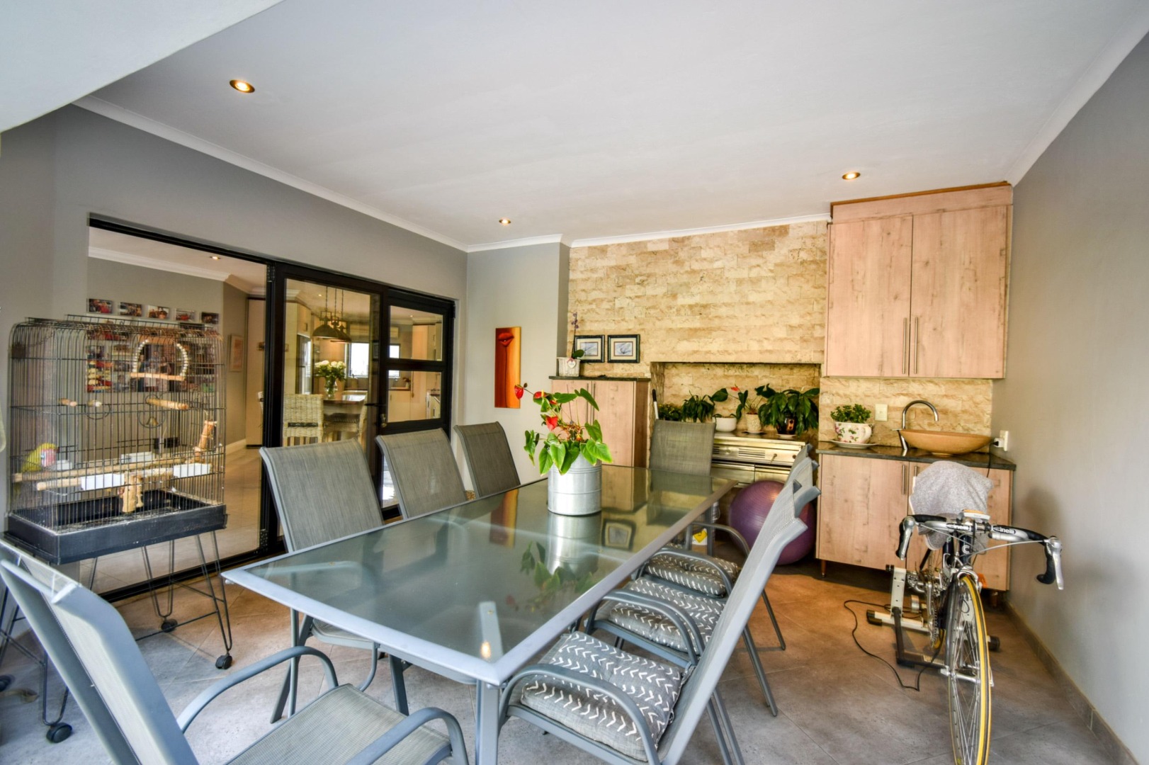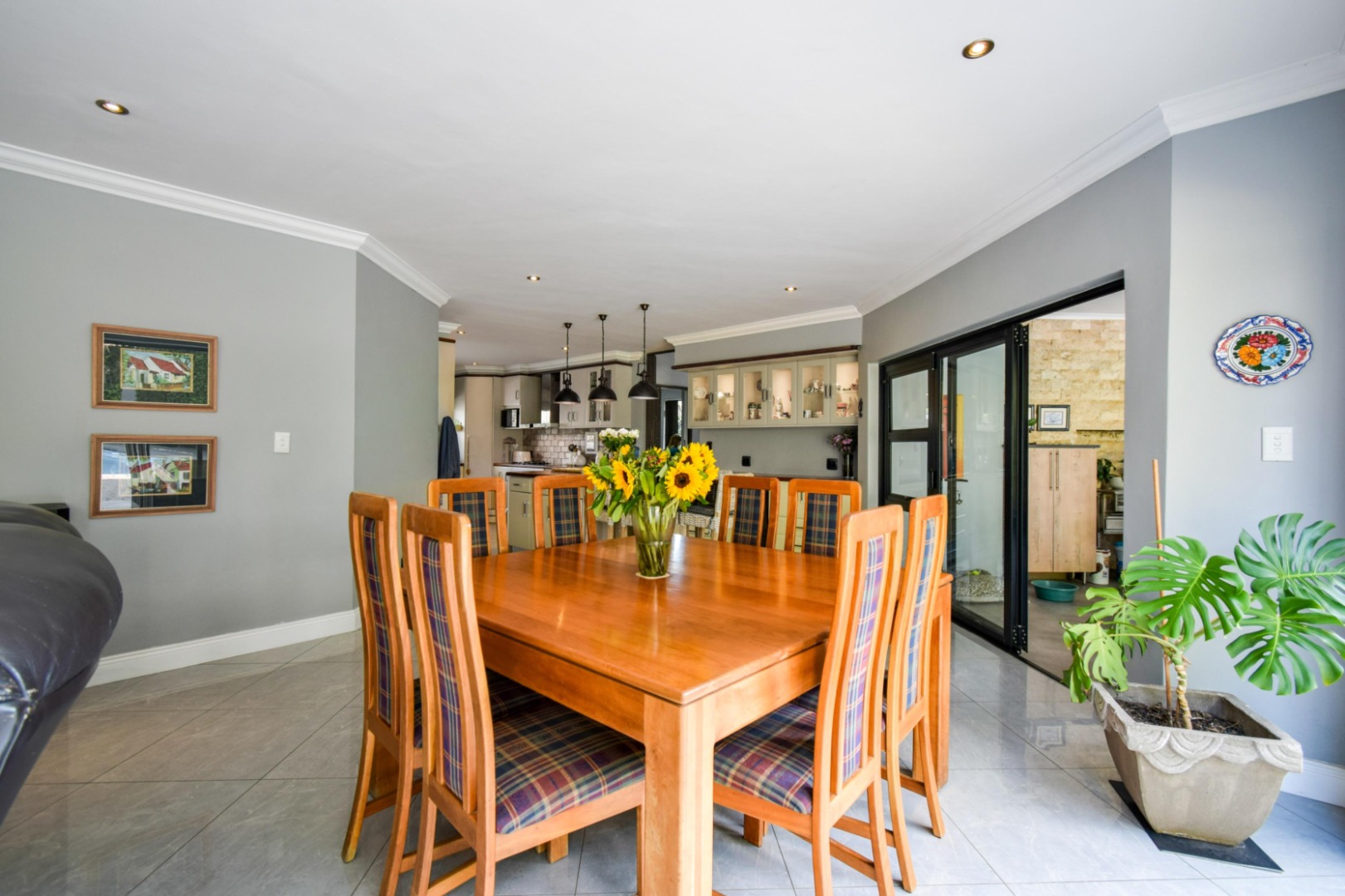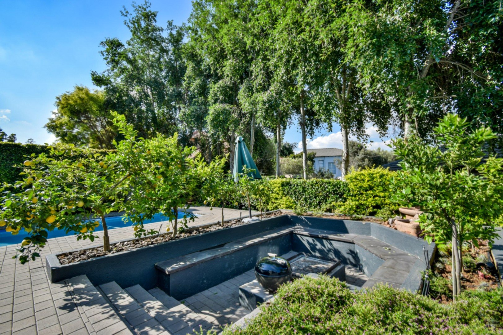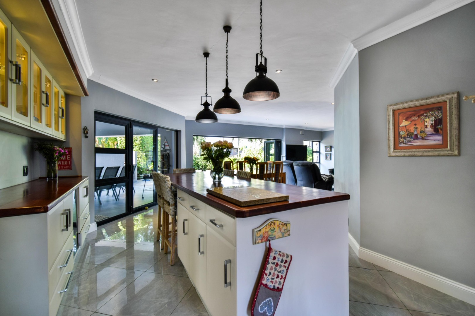 Enjoy the beautifully maintained large lawn with a fully automated sprinkler system, perfect for kids and pets. Entertain with ease around the boma, covered patio, braai area, and sparkling swimming pool. Additional features include three automated garages (with one drive-through), ample extra parking, water tanks with pump, staff quarters, washing line, and a generator switch-over for peace of mind.