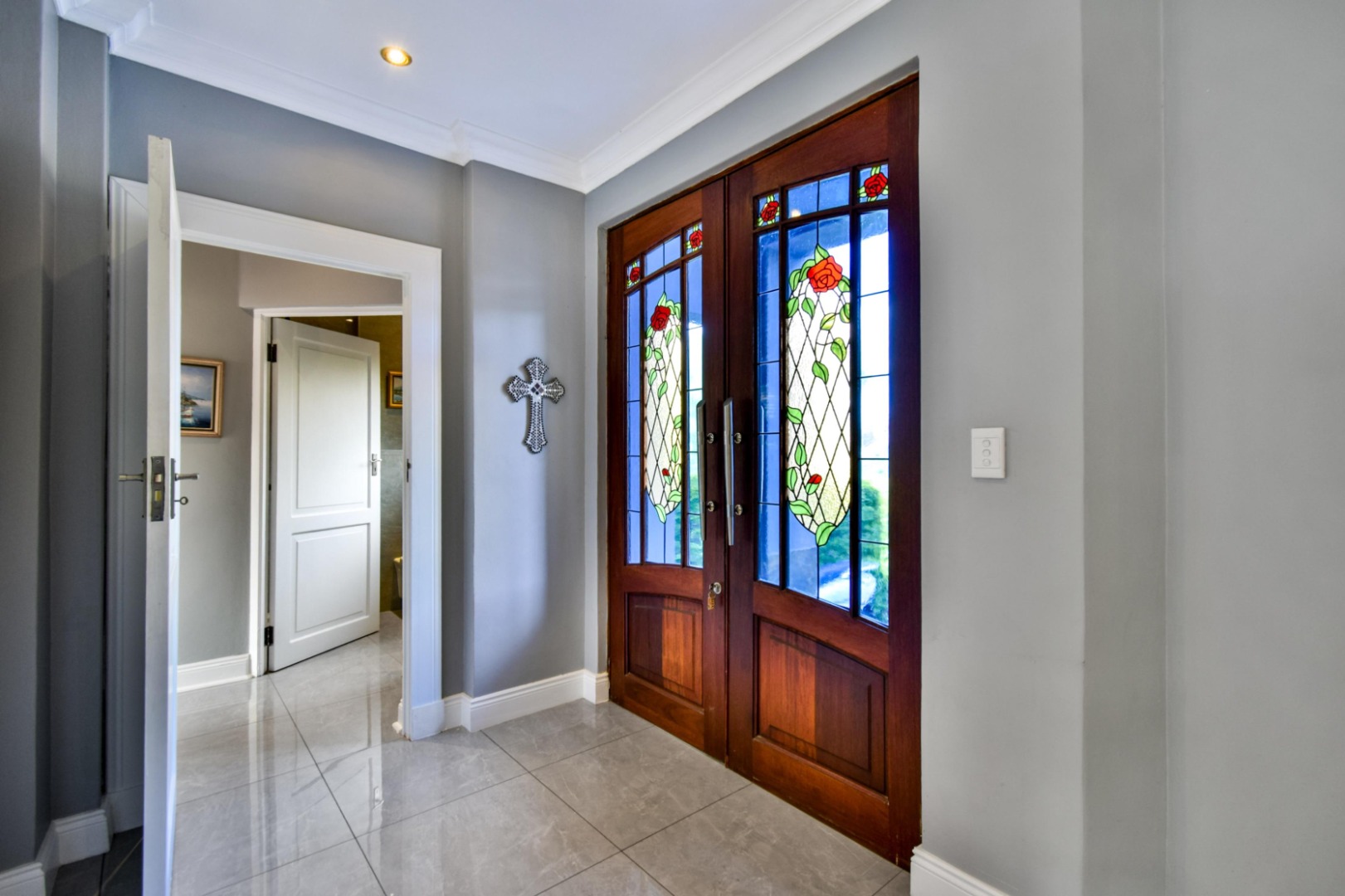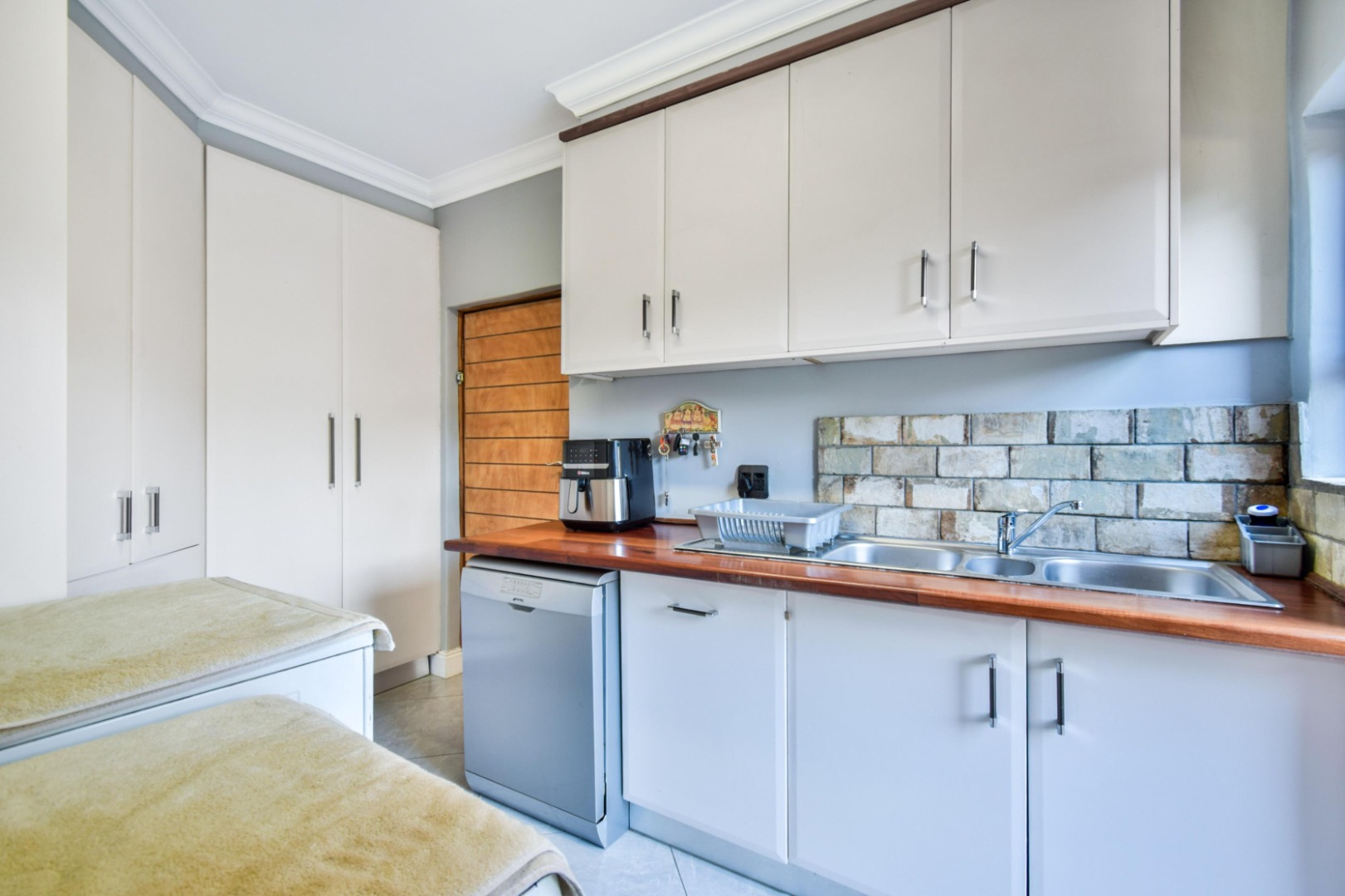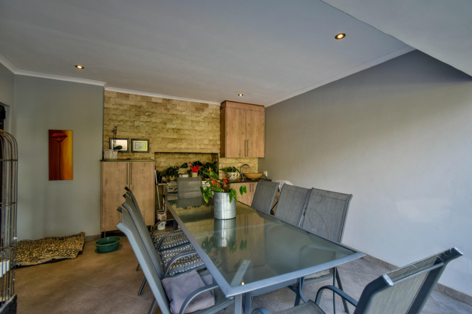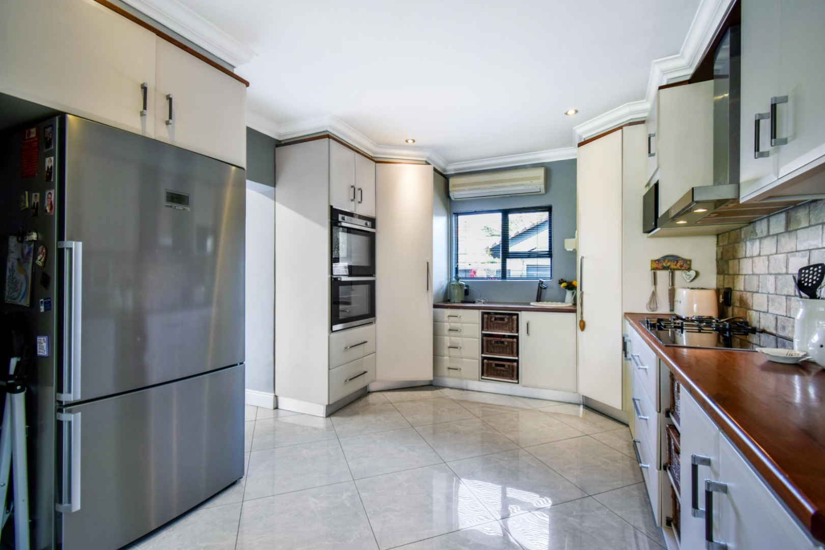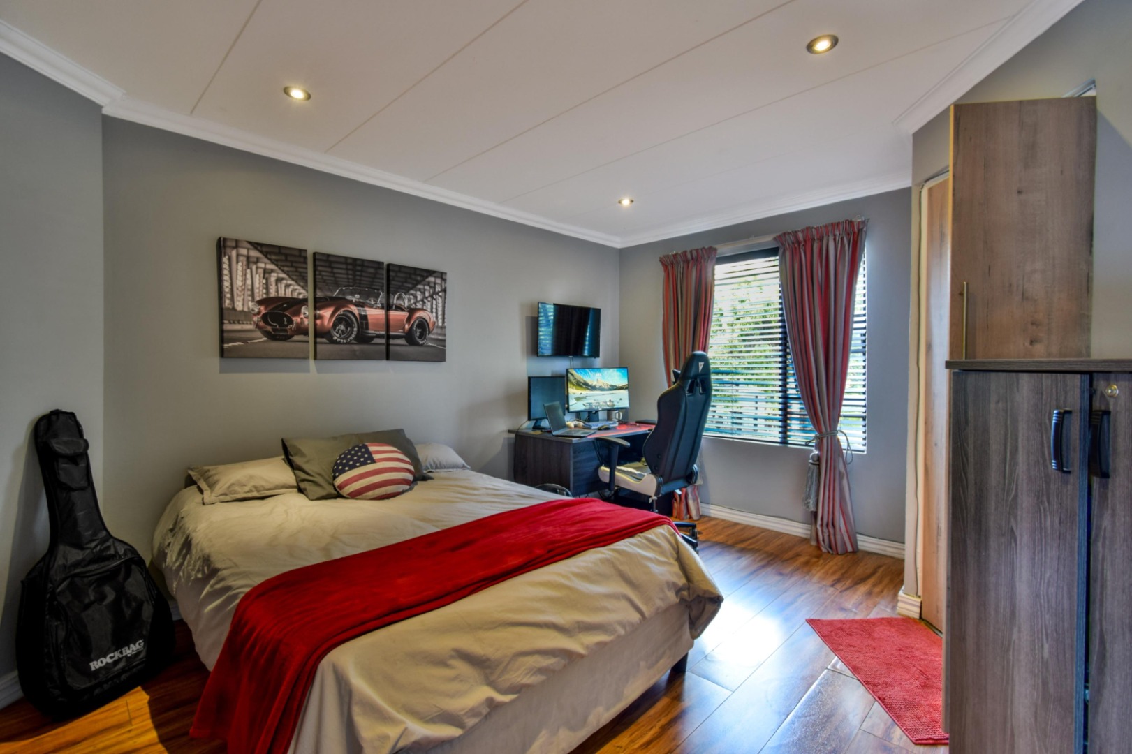 Enjoy the beautifully maintained large lawn with a fully automated sprinkler system, perfect for kids and pets. Entertain with ease around the boma, covered patio, braai area, and sparkling swimming pool. Additional features include three automated garages (with one drive-through), ample extra parking, water tanks with pump, staff quarters, washing line, and a generator switch-over for peace of mind.