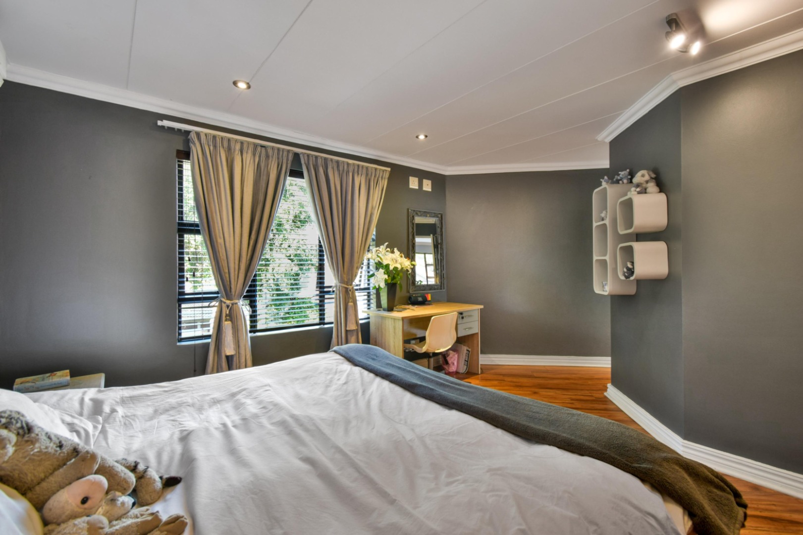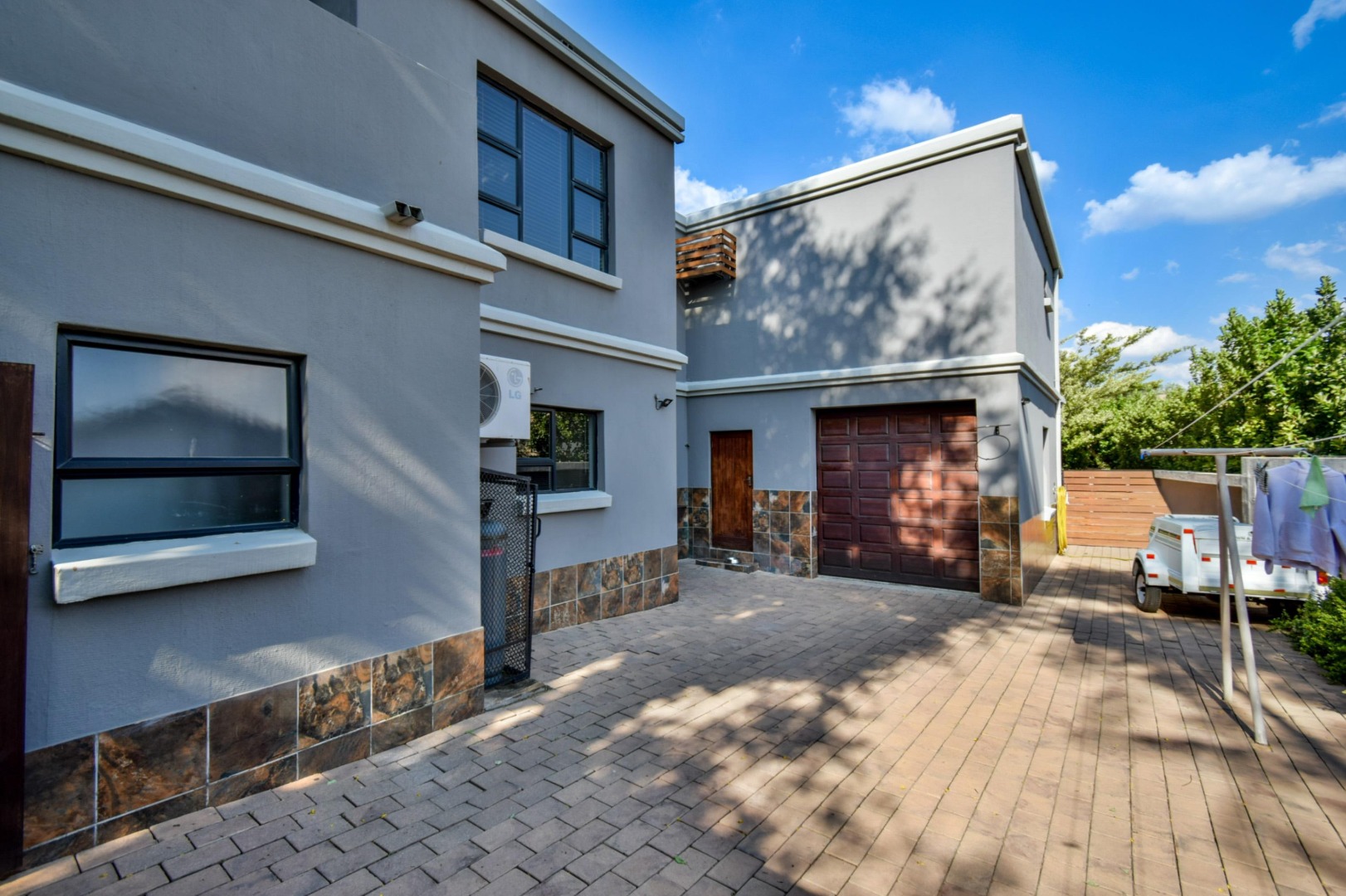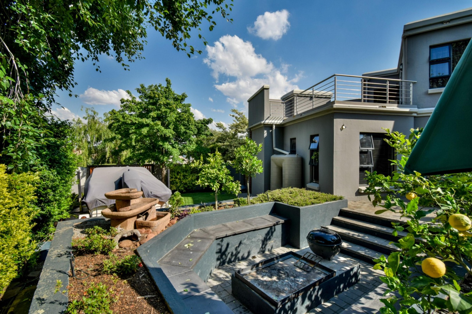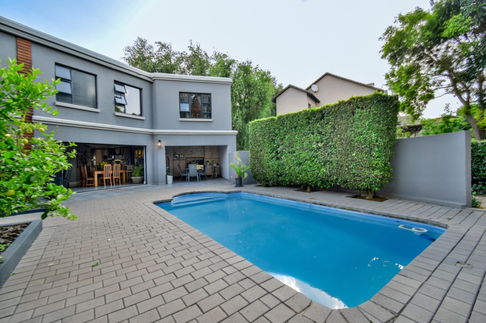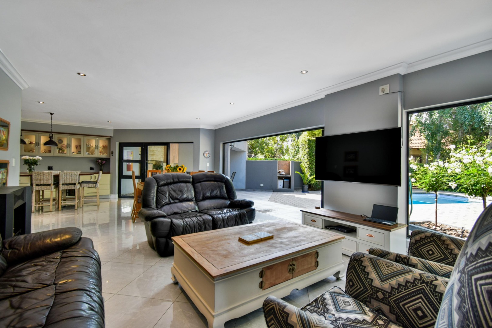 Enjoy the beautifully maintained large lawn with a fully automated sprinkler system, perfect for kids and pets. Entertain with ease around the boma, covered patio, braai area, and sparkling swimming pool. Additional features include three automated garages (with one drive-through), ample extra parking, water tanks with pump, staff quarters, washing line, and a generator switch-over for peace of mind.