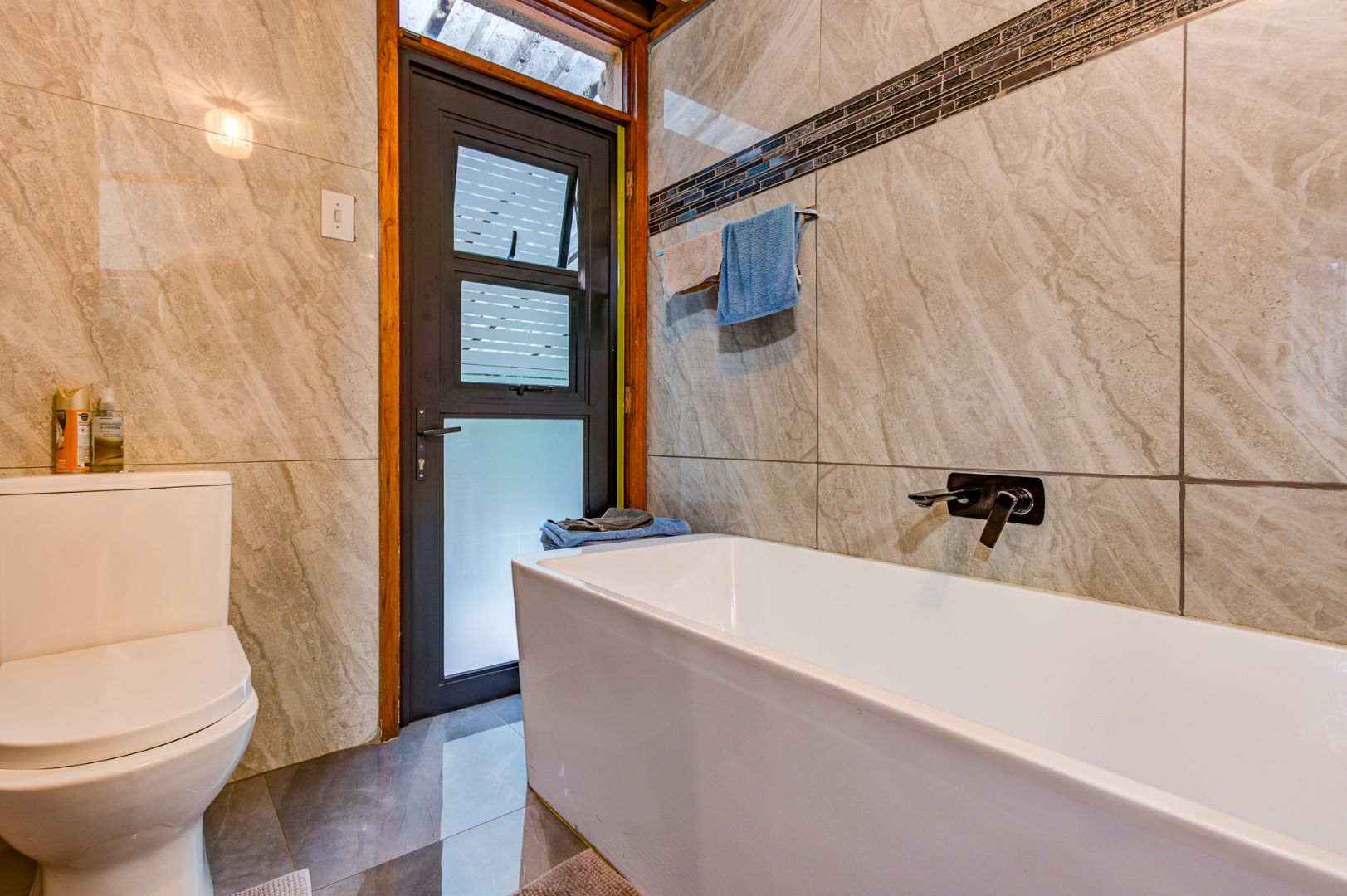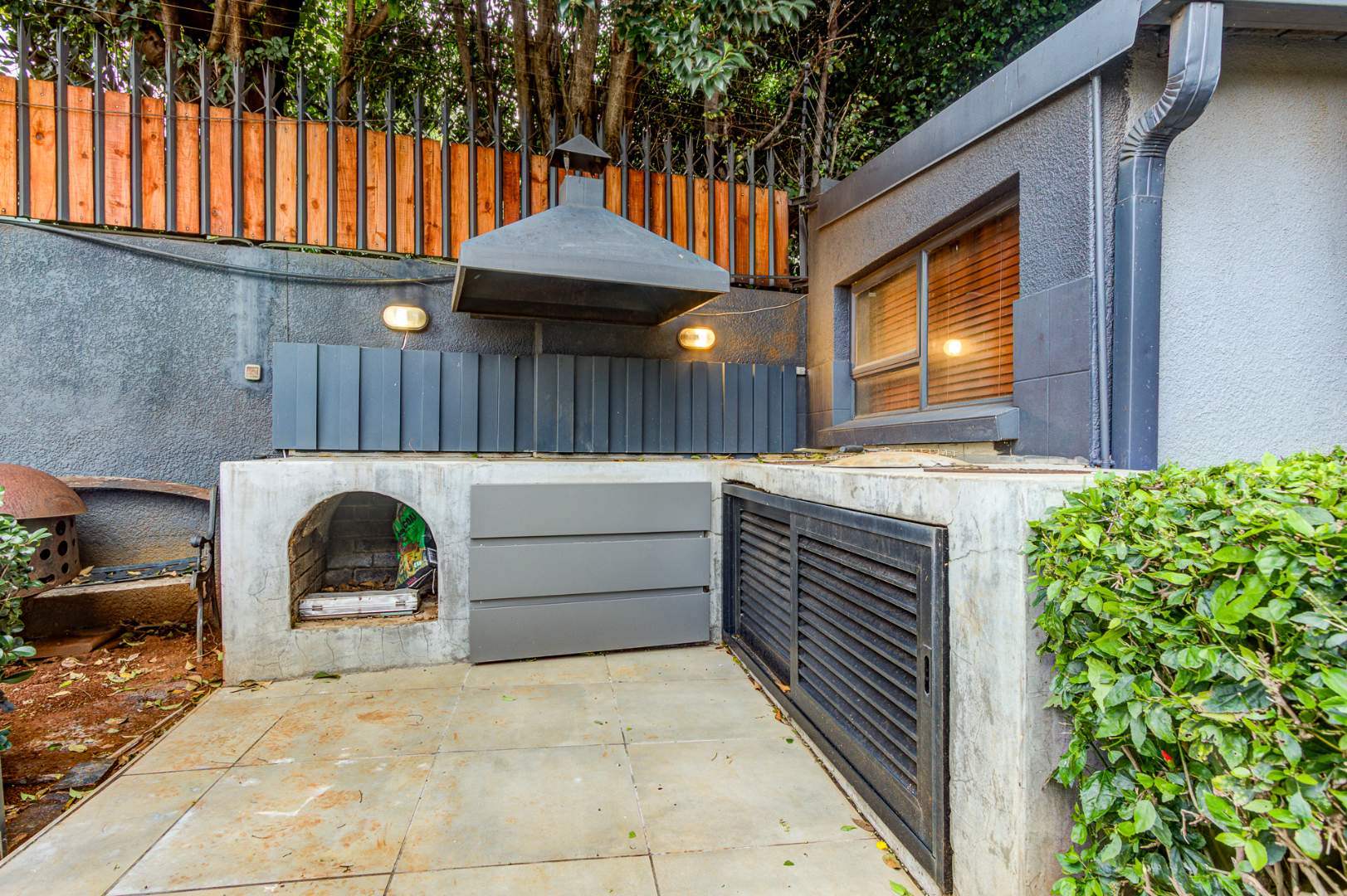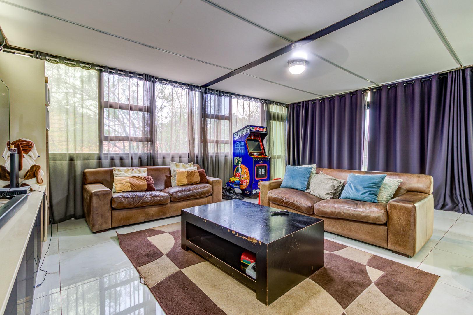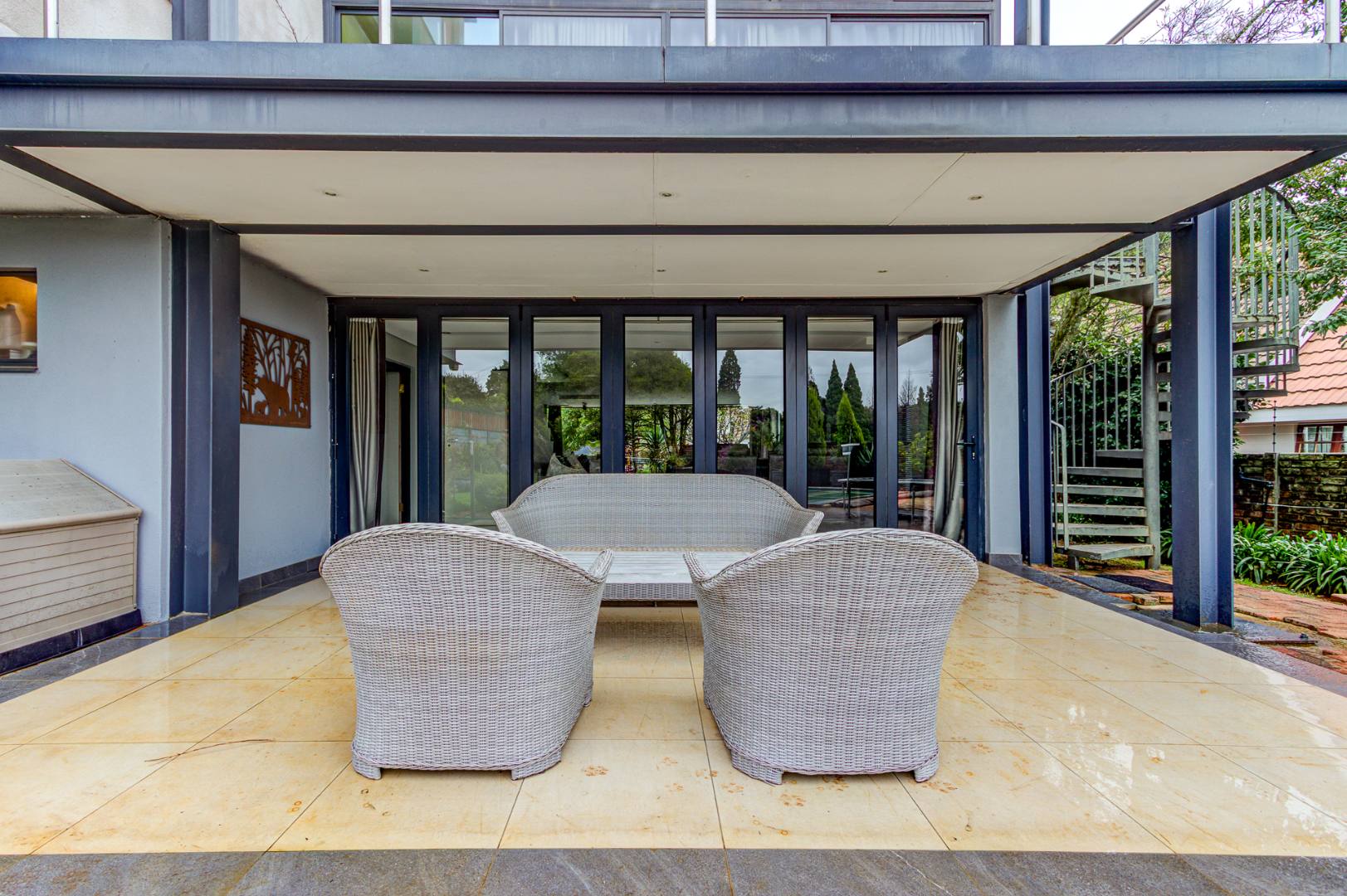 Further enhancing this exceptional property are a dedicated study, a private balcony, and a spacious patio, perfect for outdoor enjoyment. The meticulously maintained garden features a swimming pool and a built-in braai. Additional amenities include staff quarters, a separate flatlet, domestic rooms, a laundry, and ample storage. The property benefits from two garages and nine additional parking spaces. Security is paramount, with features such as a security gate, electric fencing, 24-hour security, and its location within a secure complex. Modern conveniences such as a battery inverter and fibre connectivity are also present, alongside a built-in bar and an open-plan design that enhances the sense of spaciousness. Enjoy scenic views from various vantage points within this totally walled and secure abode.
