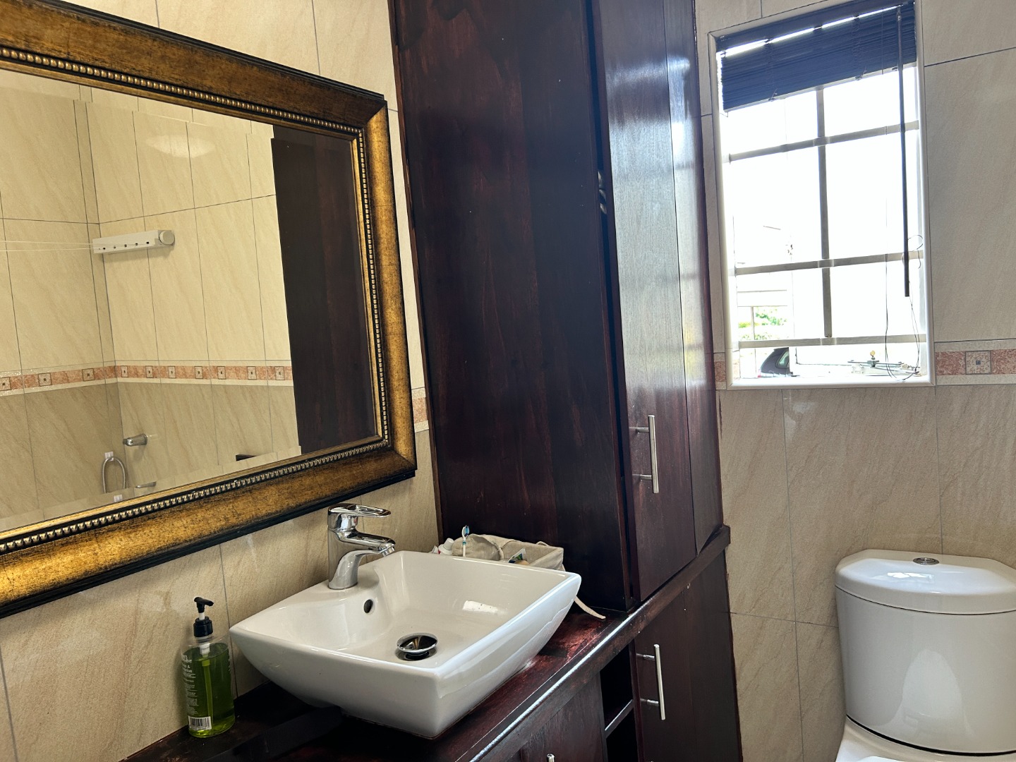 The kitchen is modern and well equipped, featuring granite countertops, ample cabinetry, a double sink, and space for two under-counter appliances such as a dishwasher and washing machine. Designed with usability in mind, it integrates seamlessly with the living area.