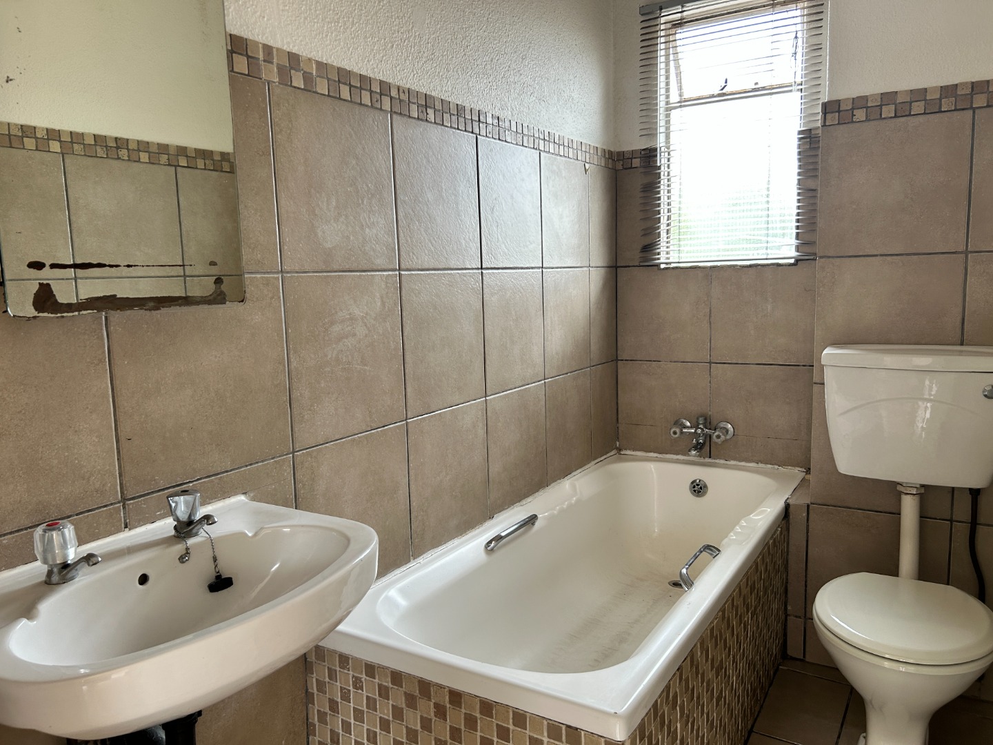 The unit is tiled throughout, with one bedroom carpeted for added comfort. The bathroom is tiled and includes a bath, basin, and toilet—simple, durable, and practical.