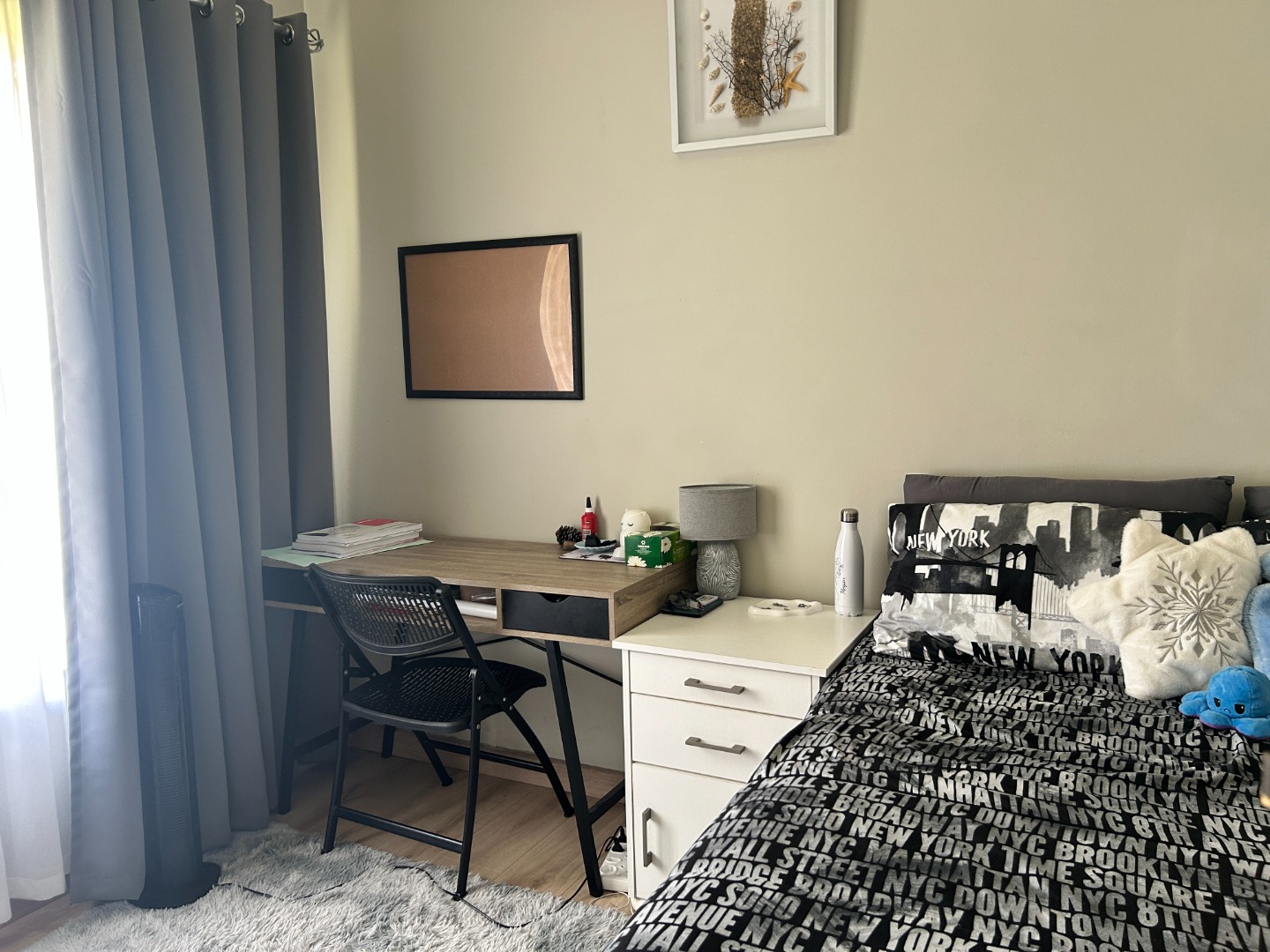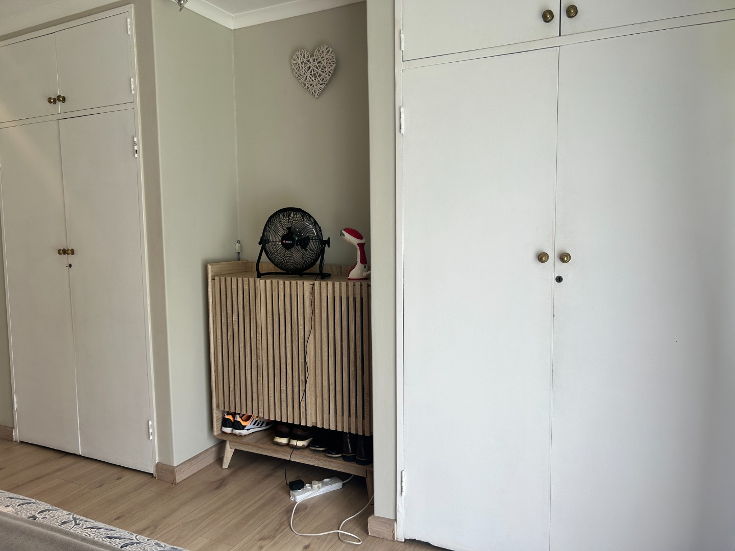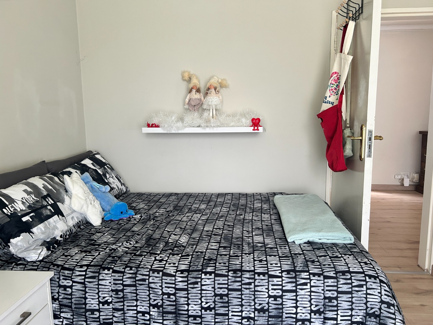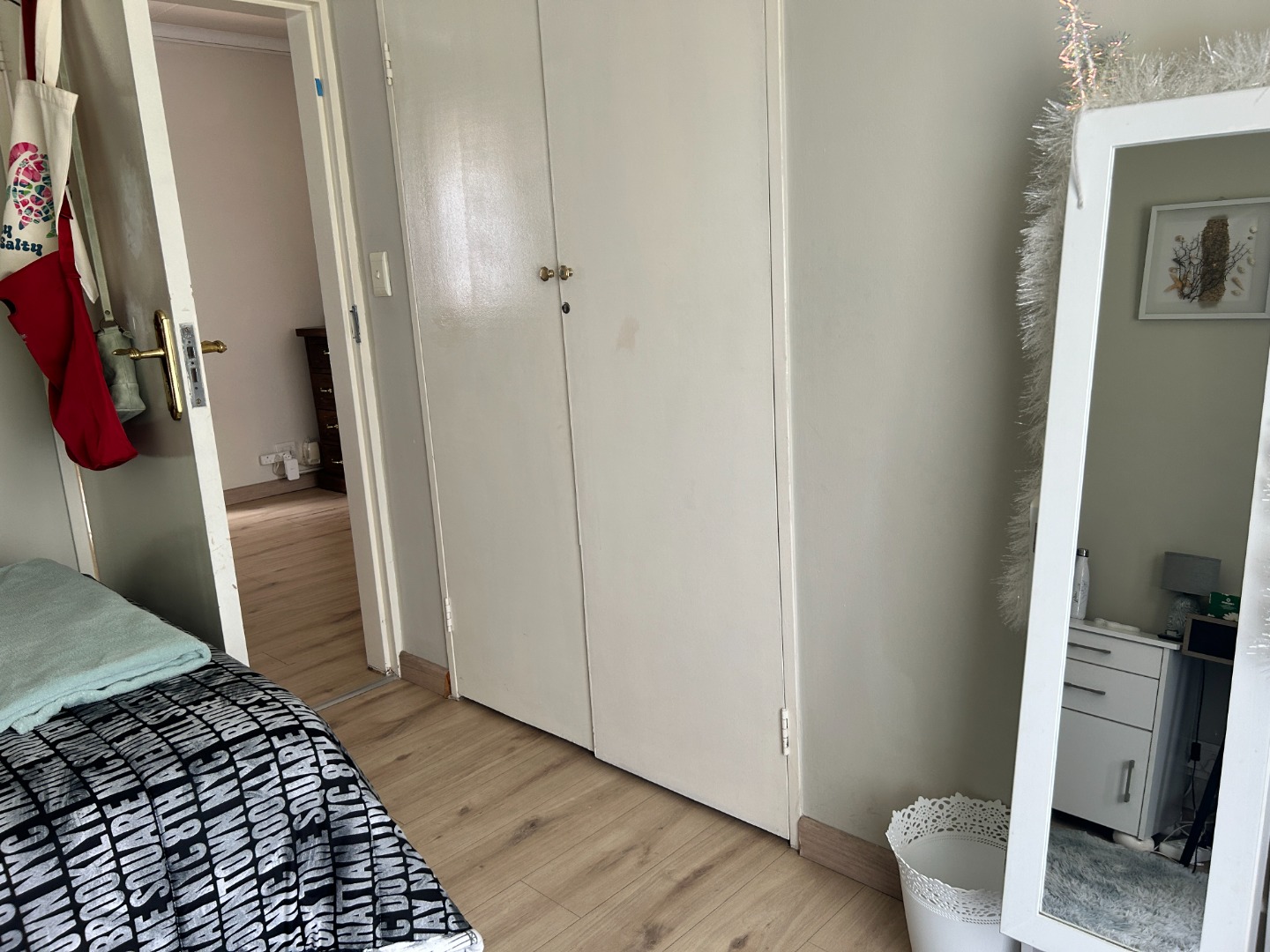 The bedrooms are fitted with laminate flooring and built-in cupboards, offering clean, low-maintenance comfort. The bathroom configuration is practical, with a family bathroom (shower, basin and loo) and a main en-suite (bath, basin and loo), supporting both convenience and privacy.
