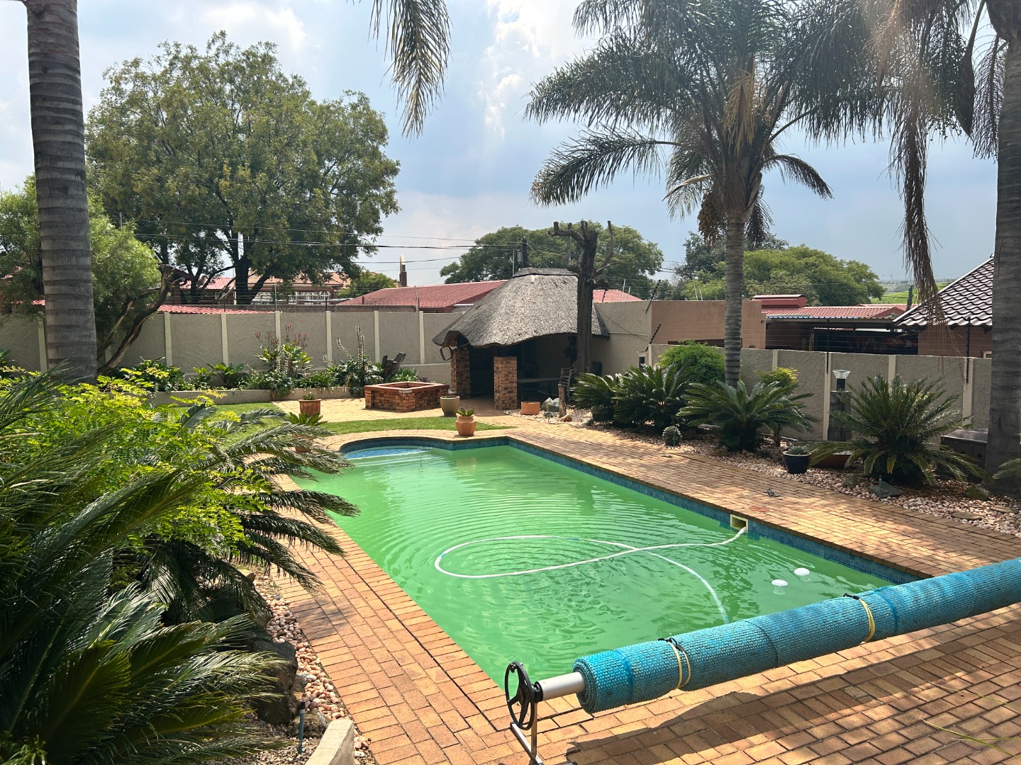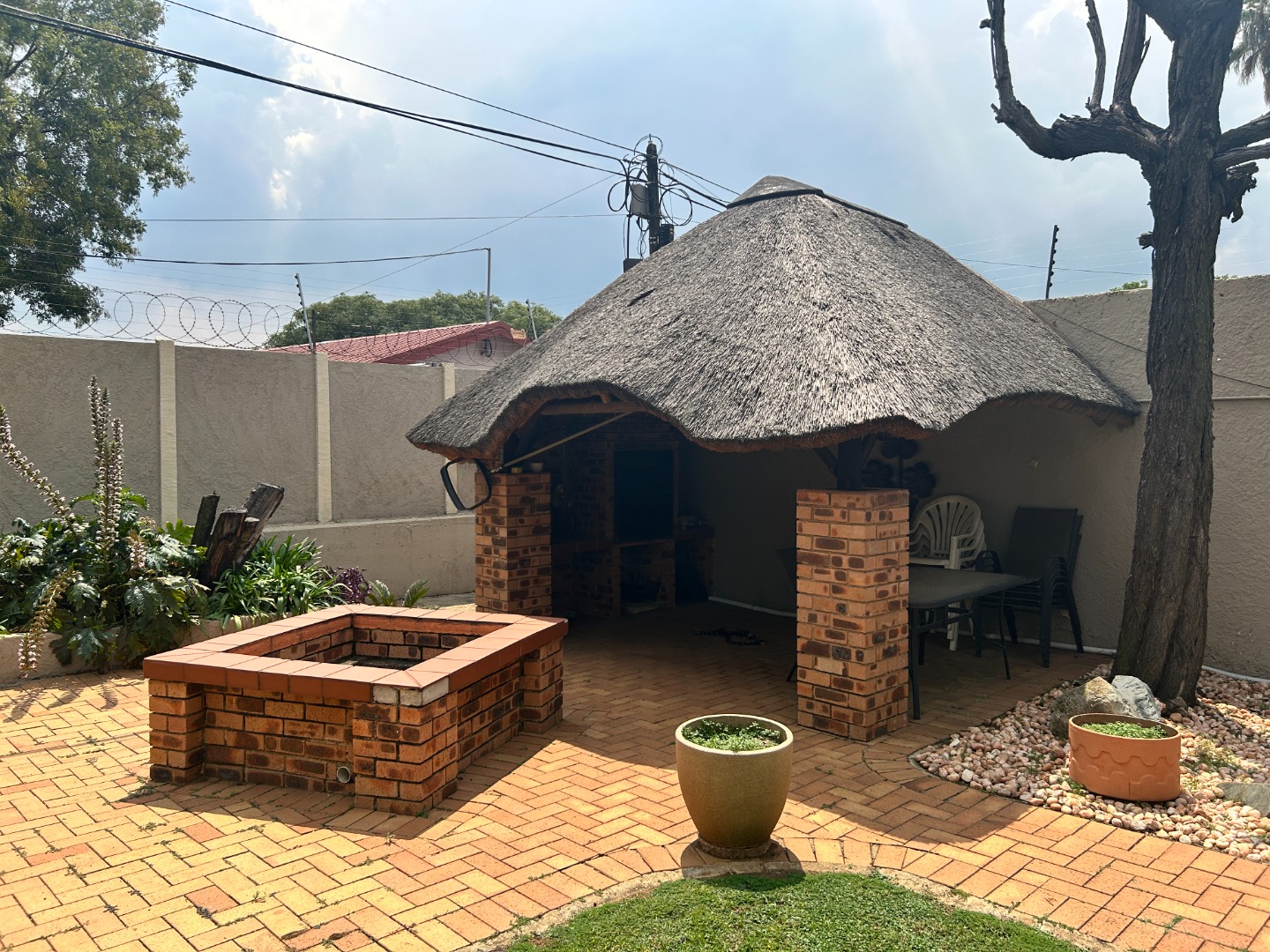 Externally, the property continues to deliver. A thatched lapa with a built-in braai provides a dedicated entertainment setting, while the expansive garden allows for further landscaping, recreation or future enhancements.