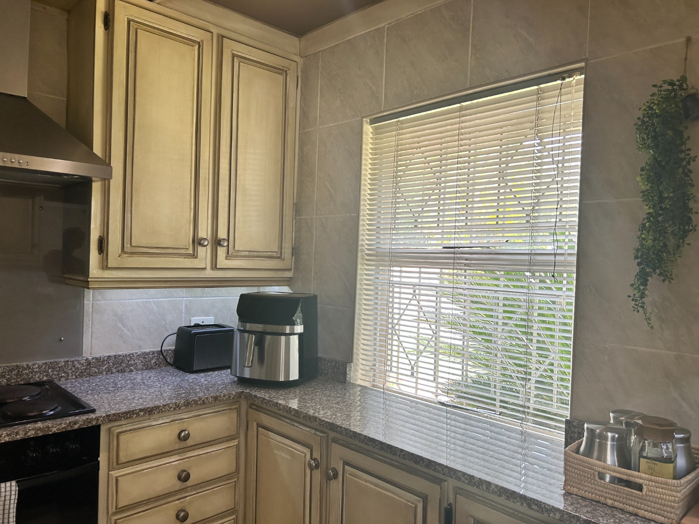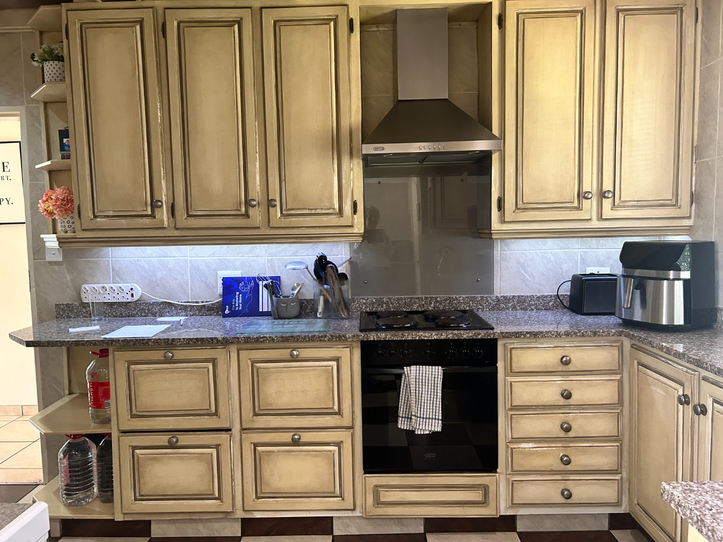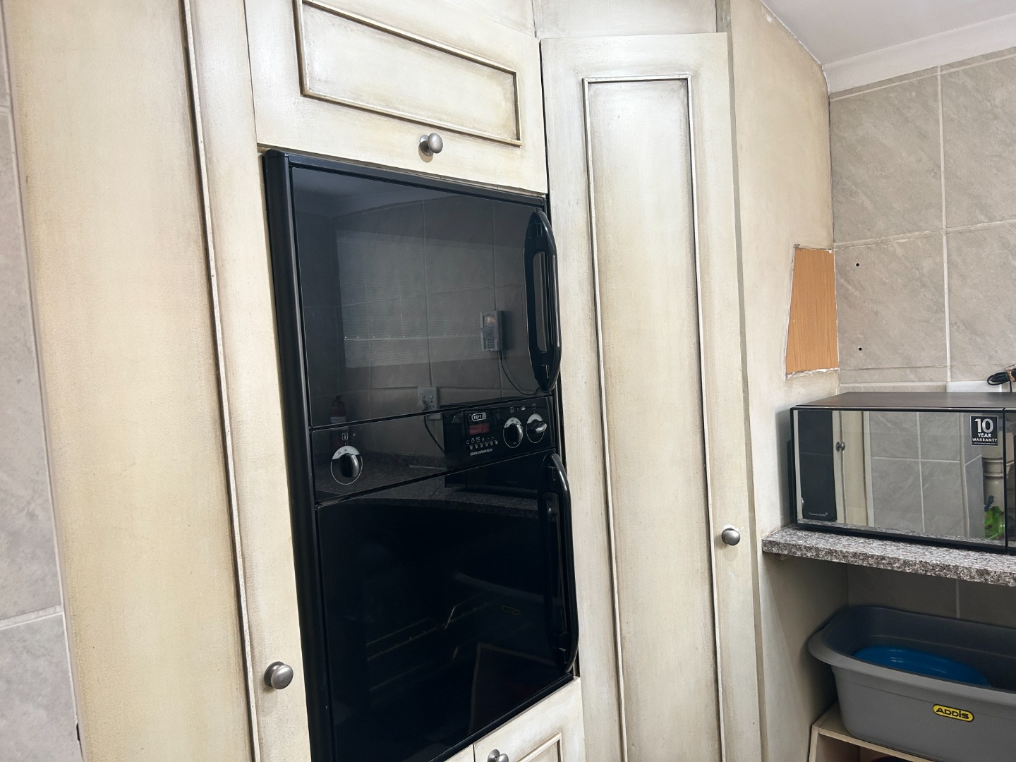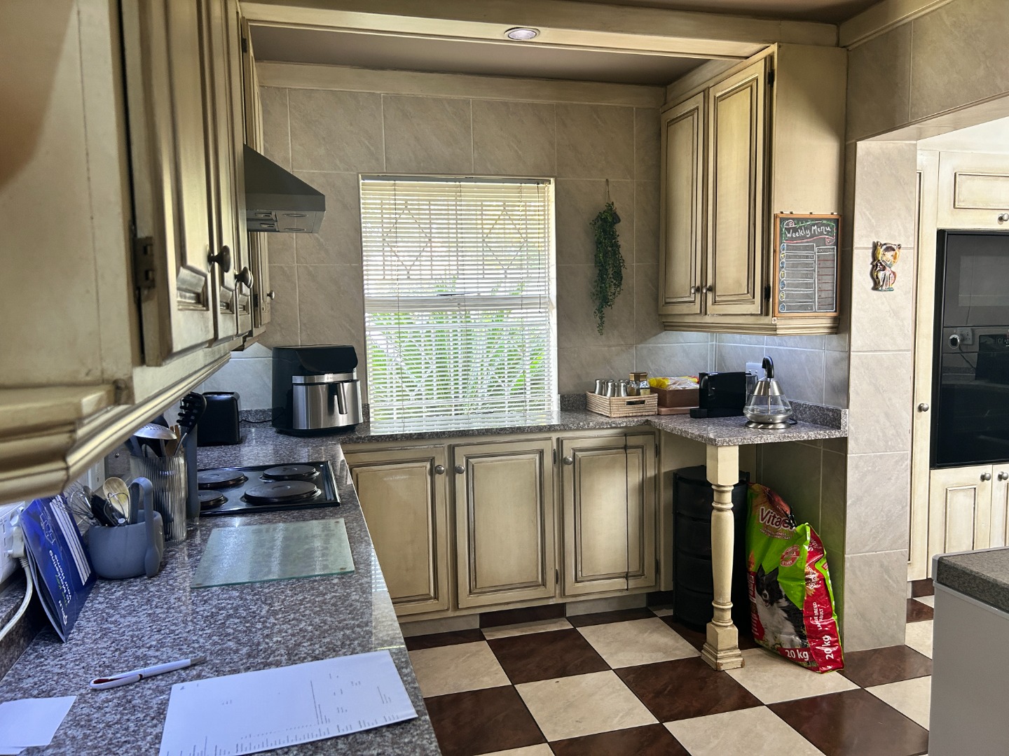 The kitchen is well-appointed and purpose-driven, featuring granite countertops, a hob, undercounter oven, extractor fan and a double eye-level oven. Ample cabinetry, along with a separate scullery/laundry area, ensures efficient workflow and organisation.
