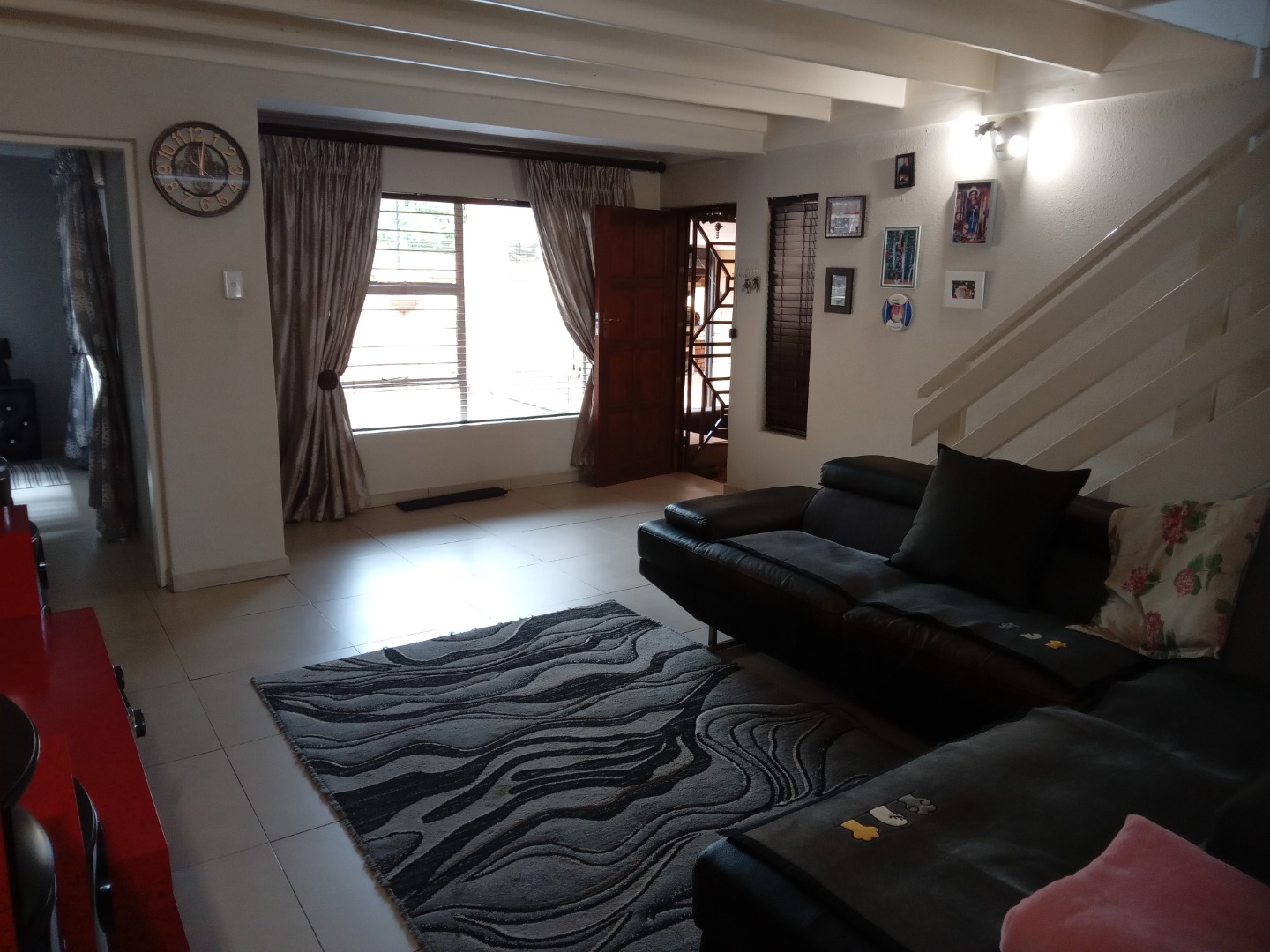 Discover this inviting 5-bedroom, 3-bathroom residence located in a secure complex in Edenvale's Edenglen. The open-plan living area features striking exposed ceiling beams, a vibrant accent wall, and flows seamlessly into a functional kitchen with a breakfast bar and integrated appliances. Enjoy ample natural light throughout. The property includes a study, a patio with a built-in braai, and a garden, perfect for outdoor enjoyment. Parking is provided with two garages and two additional spaces. Enhanced security includes electric fencing, an access gate and intercom. Fibre connectivity and a battery inverter ensure modern convenience and reliability.