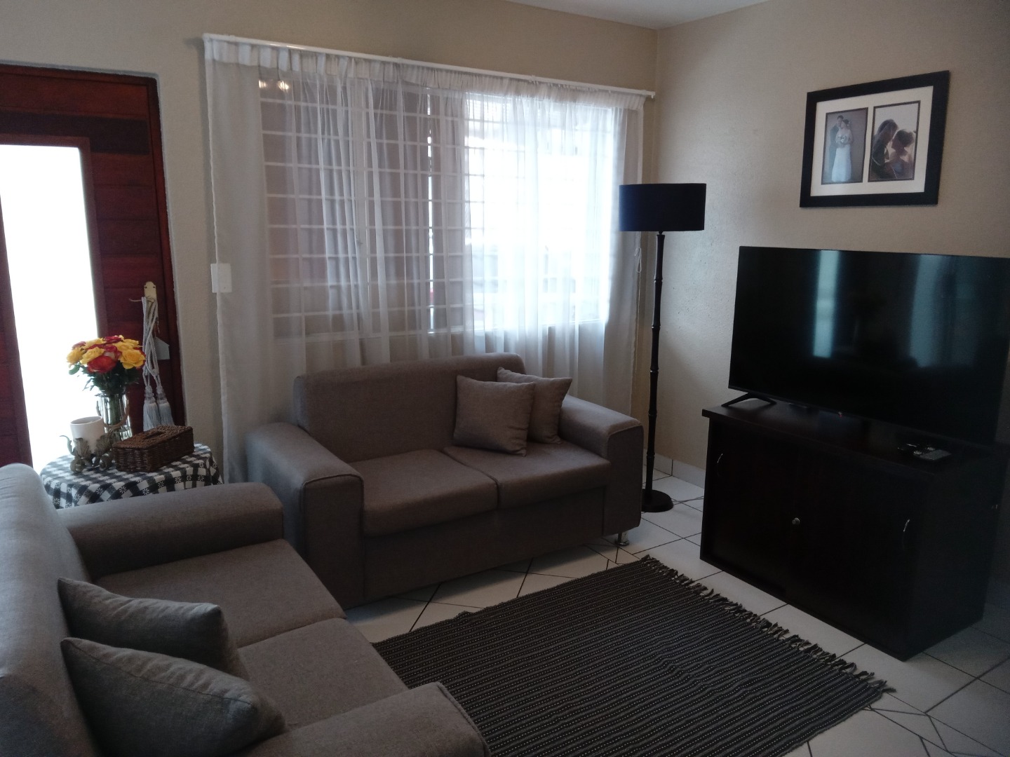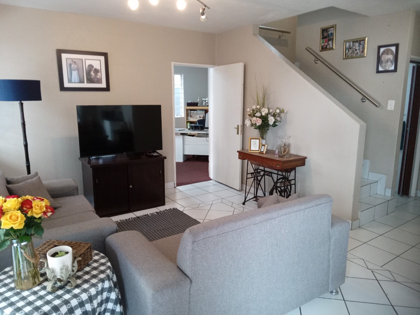This inviting 3-bedroom, 1-bathroom residential sale property is situated within a secure gated community in Hurlyvale, Edenvale, South Africa. The home features an open-plan living area with tiled flooring, a dedicated dining space, and a modern kitchen equipped with white cabinetry.
