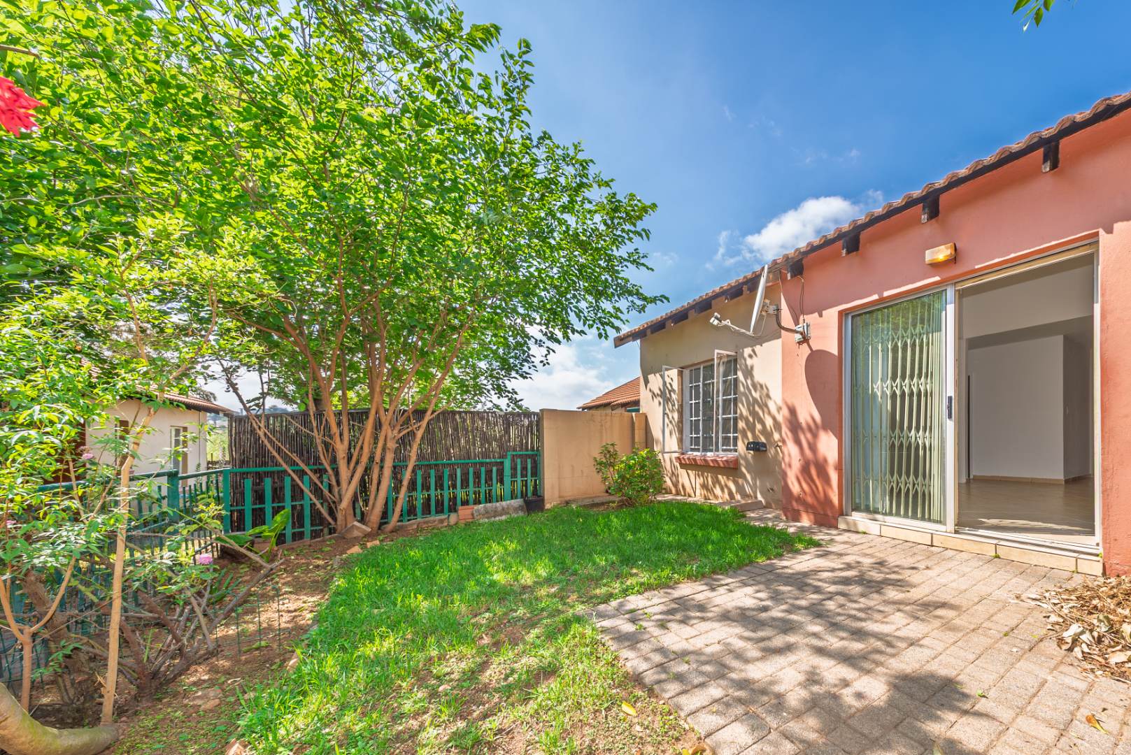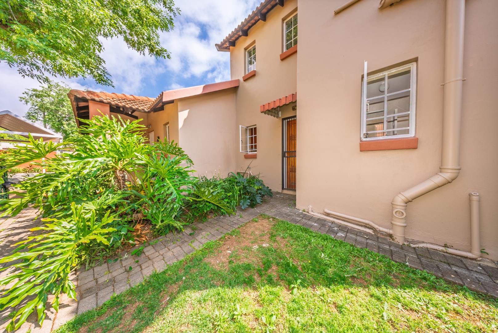 This 3-bedroom, 2-bathroom residence offers comfortable living within a secure complex in Illiondale, Edenvale. The 77 sqm floor plan features an open-plan lounge and a functional kitchen, complete with ample wooden cabinetry, granite-look countertops, and a built-in hob. The bedrooms provide built-in cupboards and natural light, complemented by two tiled bathrooms, one featuring both a bath and separate shower. Enjoy outdoor living with a private patio and garden, ideal for pets. Security is paramount with 24-hour surveillance, electric fencing, access gates, and an intercom system. Fibre connectivity is available. This property offers a convenient suburban lifestyle in South Africa.