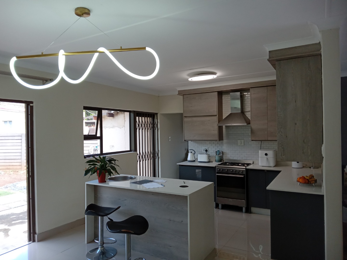 Discover this modern, move-in ready home nestled within a secure, boomed area of Buurendal, Germiston. Featuring three comfortable bedrooms and two bathrooms, including an ensuite, this residence offers contemporary living. The open-plan kitchen, complete with Caesarstone countertops and a gas hob, seamlessly flows into the lounge and dining areas. The lounge extends to a large patio, perfect for relaxation or entertaining. An attached flatlet with its own bathroom provides versatile additional accommodation. Enjoy peace of mind with 24-hour security and the convenience of a double garage and fibre connectivity.