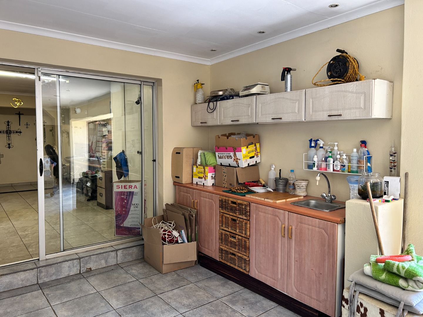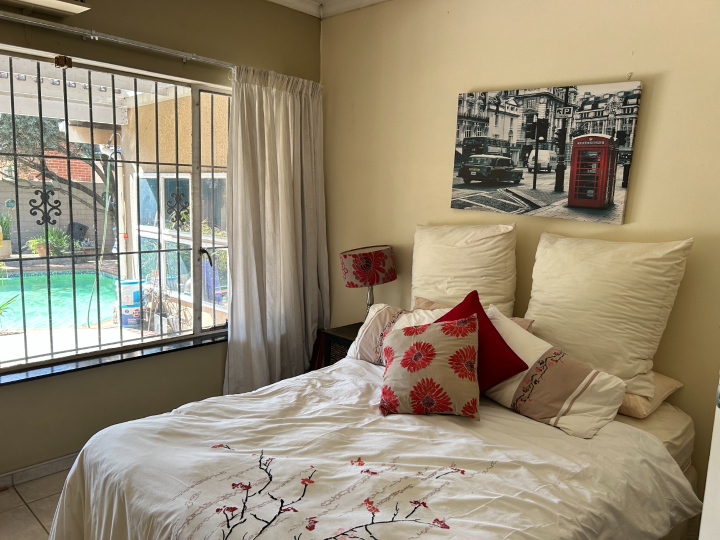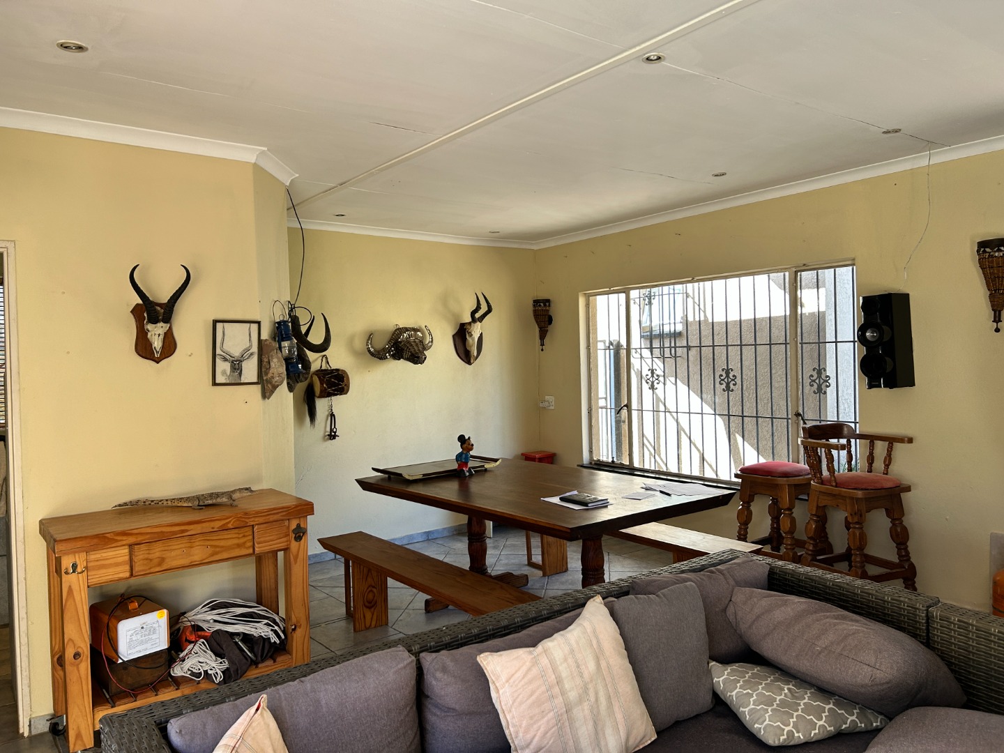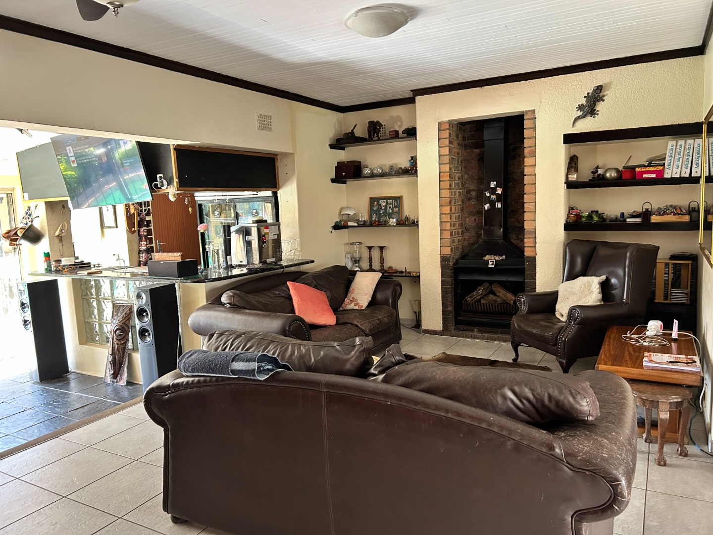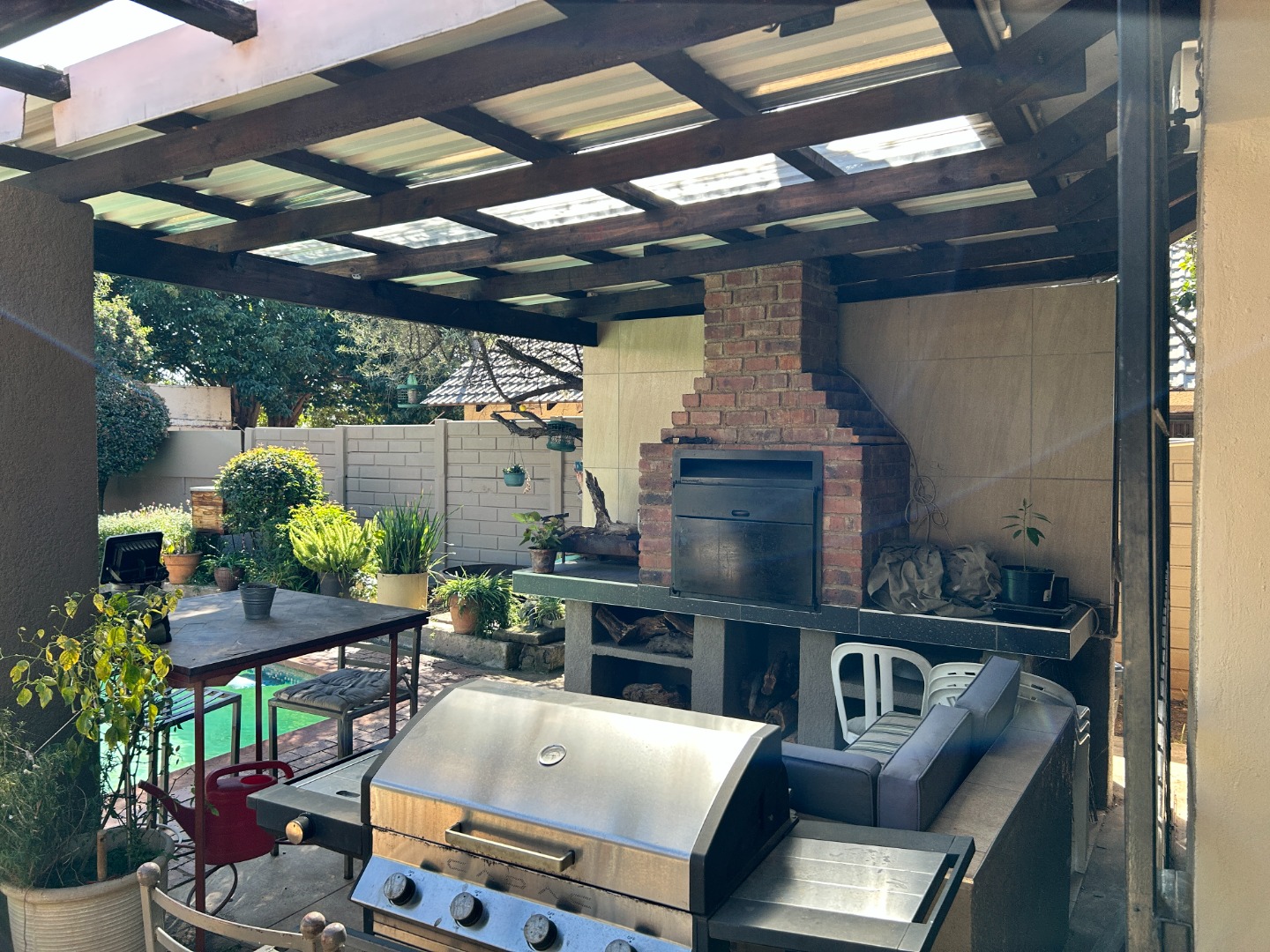 Step outside and discover the sparkling pool and covered patio featuring a built in braai, perfect for family gatherings and entertaining guests.