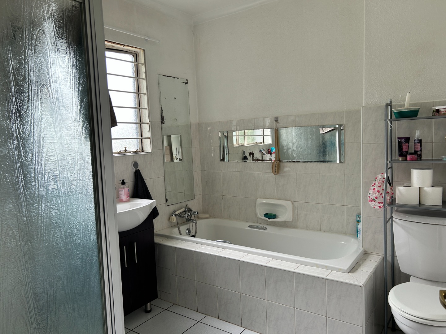 Upstairs, all three bedrooms are carpeted and fitted with built-in cupboards. The main bedroom opens onto an enclosed balcony, offering an additional flexible space. The family bathroom is fully tiled and includes a bath, shower, vanity, and toilet.