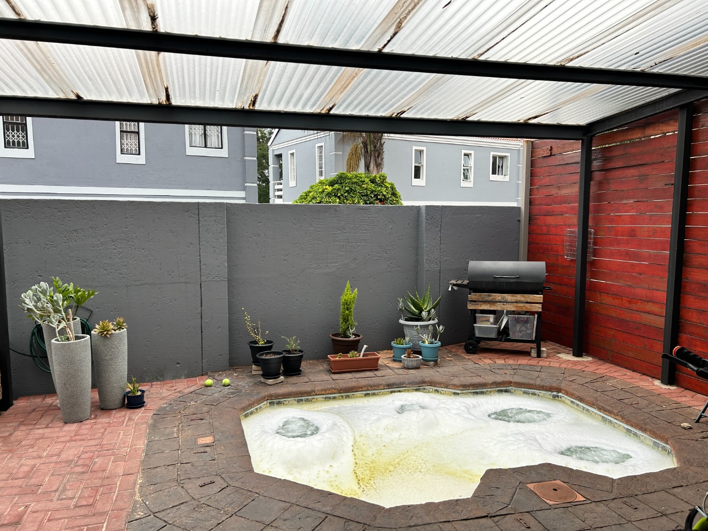 Sliding doors from the lounge open onto a covered patio featuring a private bubble pool, providing a low-maintenance outdoor space for relaxation without excess upkeep. A guest cloakroom is conveniently positioned on the ground floor.
