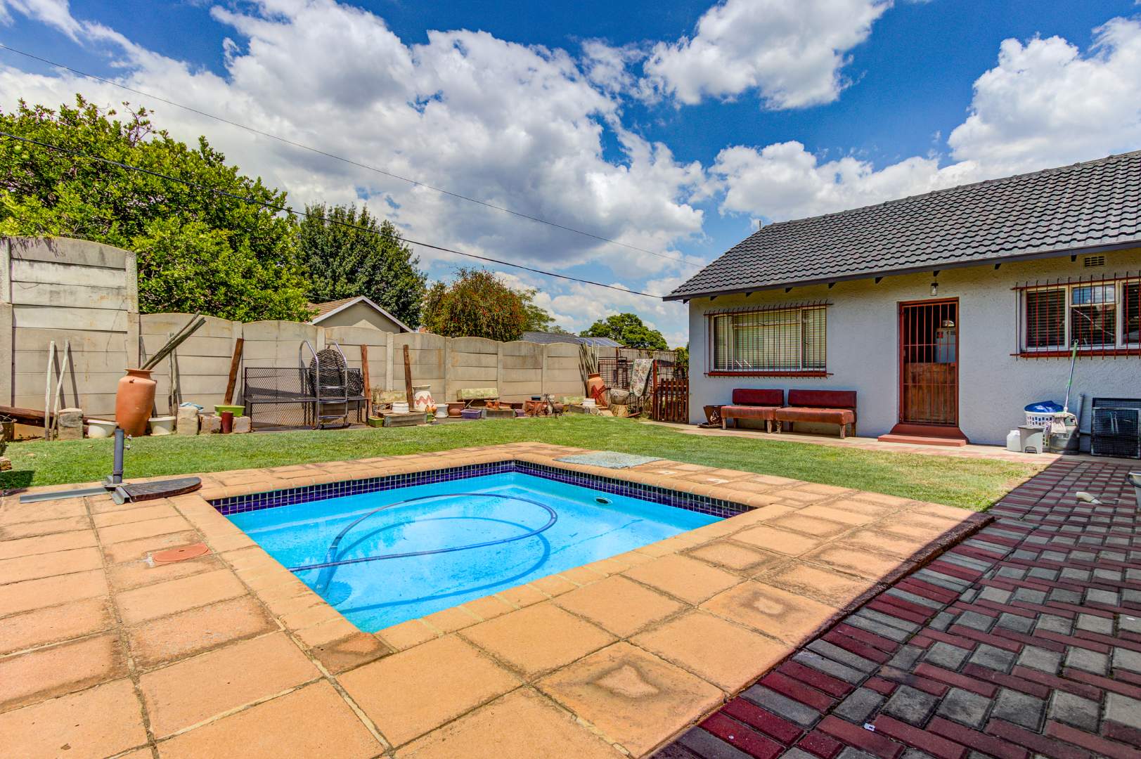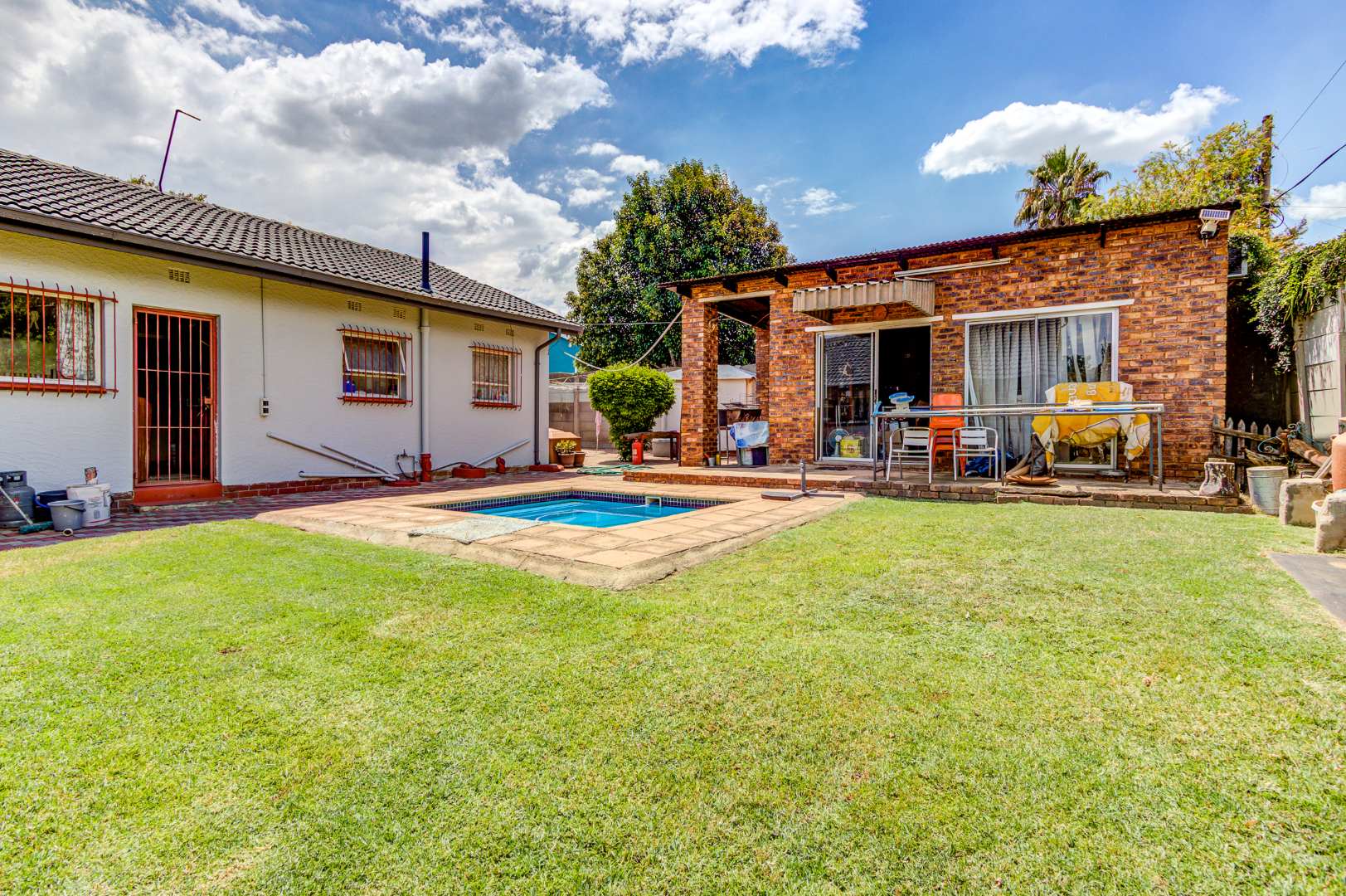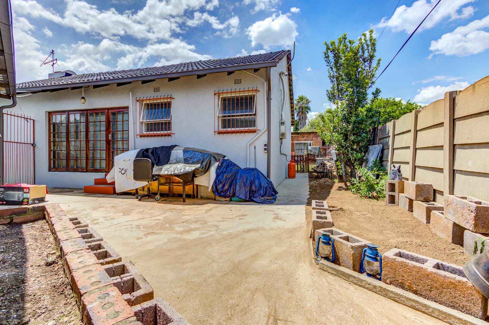 Discover this inviting family home nestled on a generous 997 sqm erf in the established suburb of Elspark, Germiston. The property presents a neat kerb appeal with a well-maintained front lawn, and a classic dark tiled roof, complemented by security bars on windows for peace of mind. Ample parking is available for up to four vehicles, ensuring convenience for residents and guests.