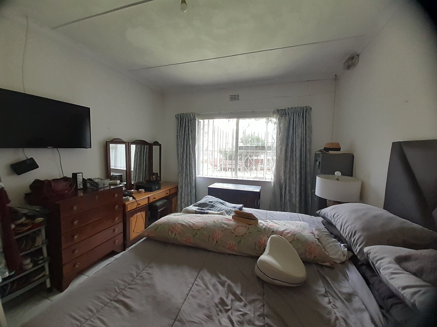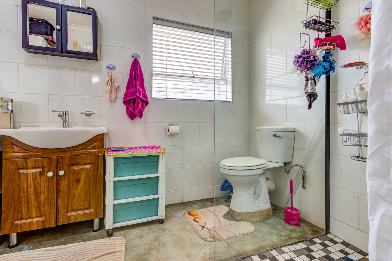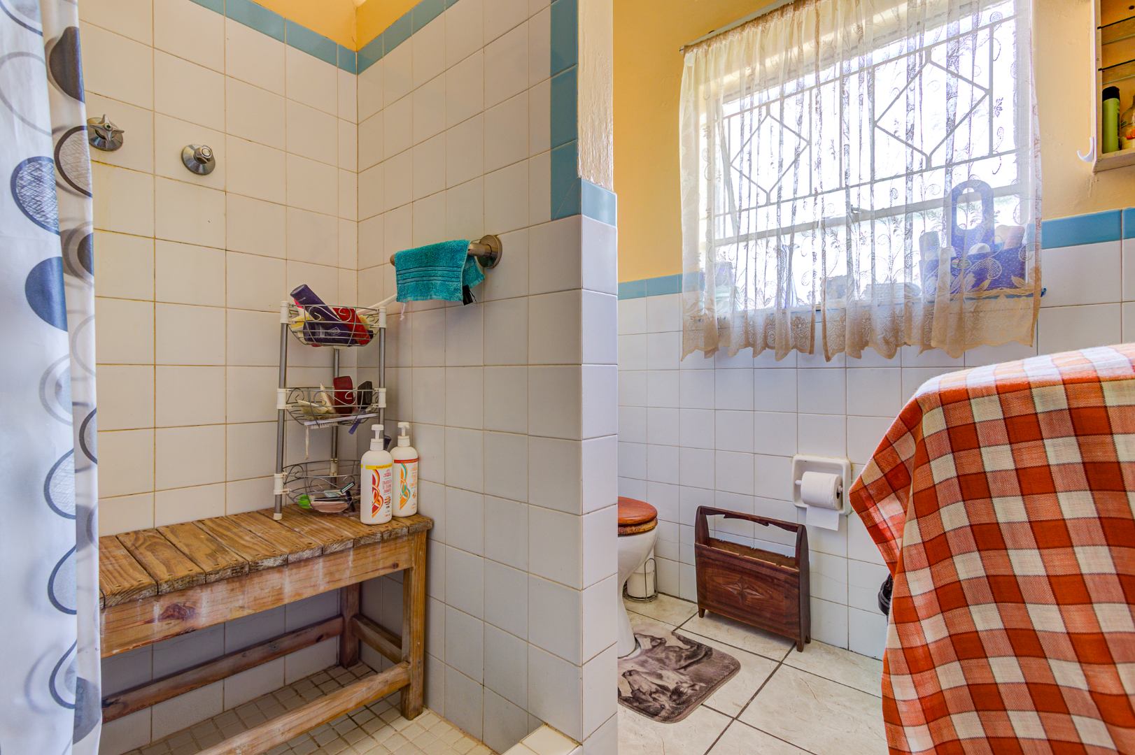 This residence offers three comfortable bedrooms, each designed for restful living. The main bedroom includes an ensuite bathroom, providing a private retreat. A second well-appointed bathroom serves the remaining bedrooms and guests. Throughout the bedrooms, you'll find practical tiled flooring, large windows allowing for natural light, and security bars for enhanced safety.