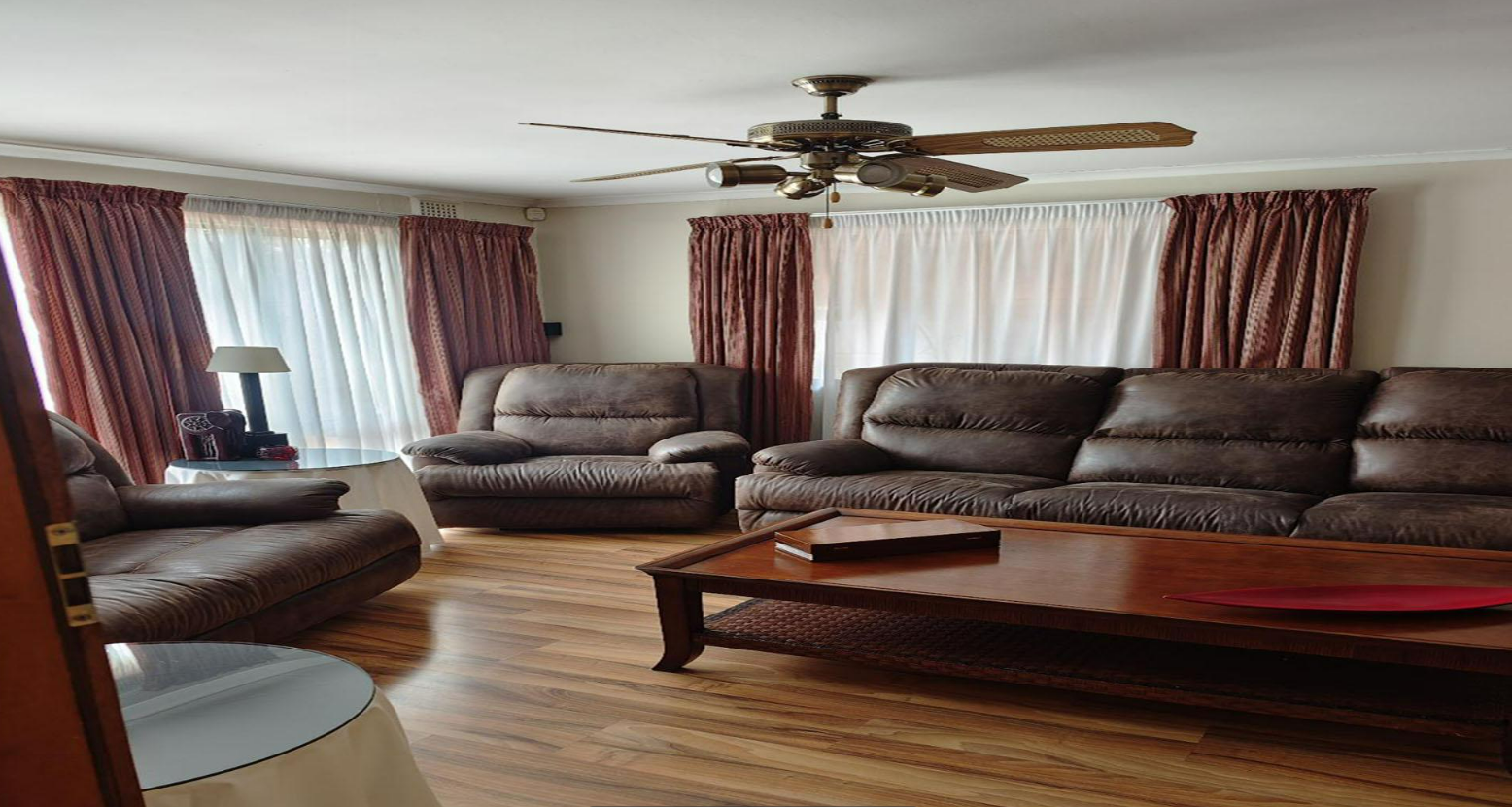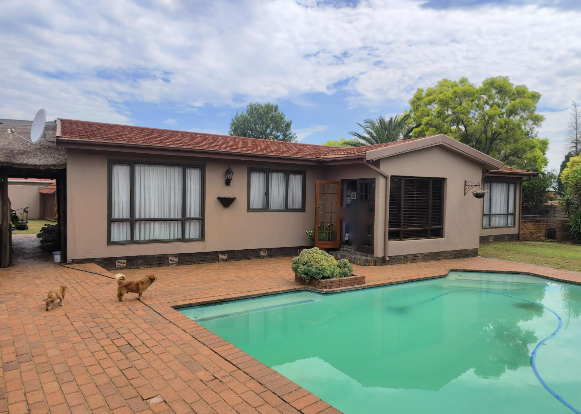 Discover this inviting family home situated in the established suburban area of Klippoortje, Germiston. Boasting a generous erf size of 1098 sqm and a floor size of 188 sqm, this property offers ample space for comfortable living and entertaining. The well-maintained exterior features a light brown/tan facade with a terracotta-tiled roof, complemented by a double garage and a paved driveway, enhancing its kerb appeal. Step inside to find an open-plan layout that seamlessly connects the living and dining areas. The home offers multiple spacious lounges, some featuring warm wood-look laminate flooring, others with durable tiles, and one with classic hardwood, all benefiting from abundant natural light. Ceiling fans are present in several rooms, ensuring comfort. The functional kitchen is equipped with white cabinetry, dark countertops, a built-in oven, and a range hood, providing ample storage and preparation space. This residence comprises three comfortable bedrooms and two bathrooms, including a private en-suite for added convenience. The outdoor space is a true highlight, featuring a large, clear swimming pool surrounded by extensive brick paving, perfect for relaxation and recreation. A charming thatched archway adds character to the garden, which is well-maintained and pet-friendly. Security is addressed with fitted burglar bars, offering peace of mind. This property presents an excellent opportunity for those seeking a spacious home with desirable outdoor amenities in a convenient Germiston location. Key Features: * 3 Bedrooms, 2 Bathrooms (1 En-suite) * 2 Garages * Large Swimming Pool * Open-Plan Living Areas * Paved Driveway and Patio * Established Garden * Burglar Bars * Pets Allowed