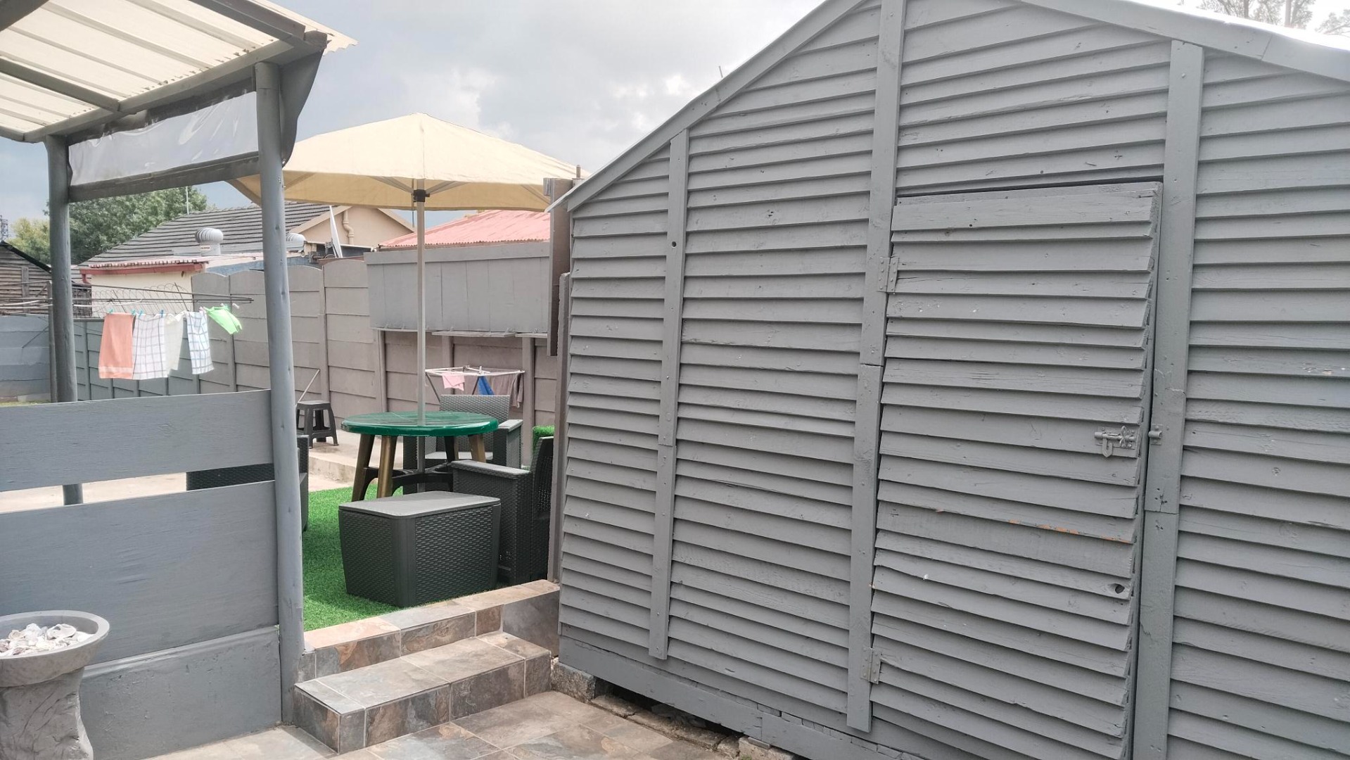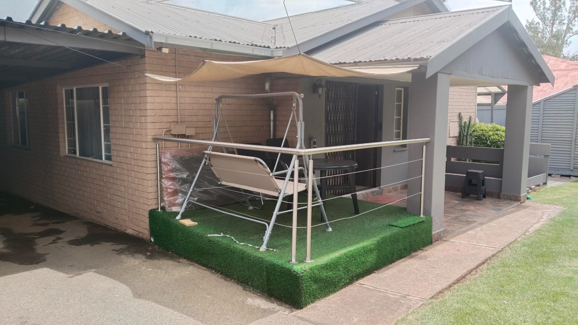 * Open patio at the back with artificial turf