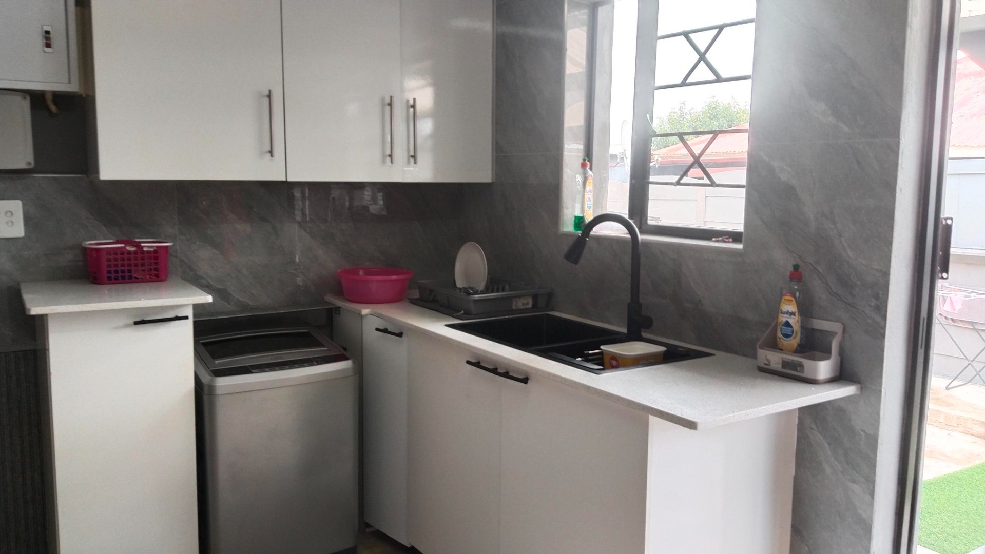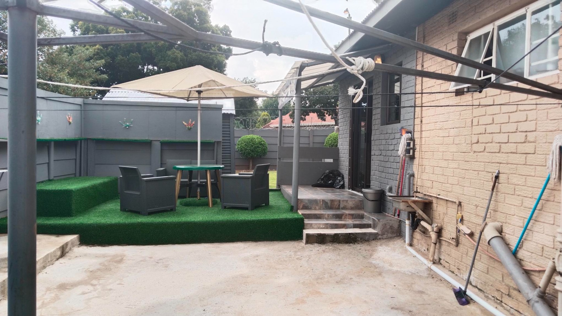 * Open patio at the back with artificial turf