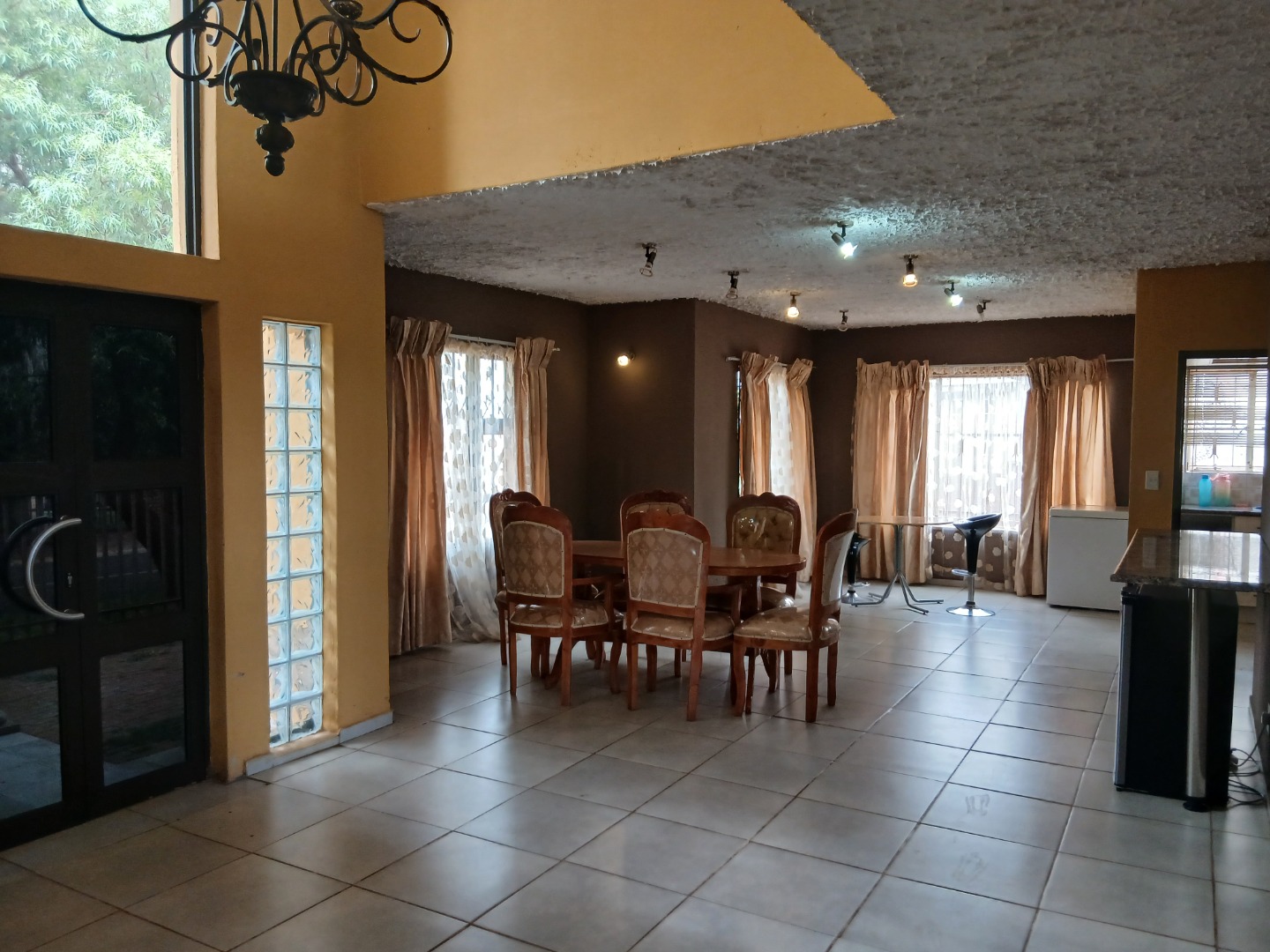 This impressive residential property in Ennerdale, Johannesburg, offers a real spacious and comfortable living environment. The home features a modern architectural design with large windows inviting abundant natural light. A secure perimeter fence and mature trees enhance its kerb appeal, while a welcoming entrance hall with high ceilings and an ornate chandelier sets a grand tone.