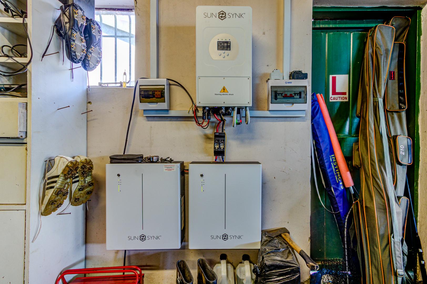 Solar system with 12 panels, 5 KVA inverter and 2 batteries.