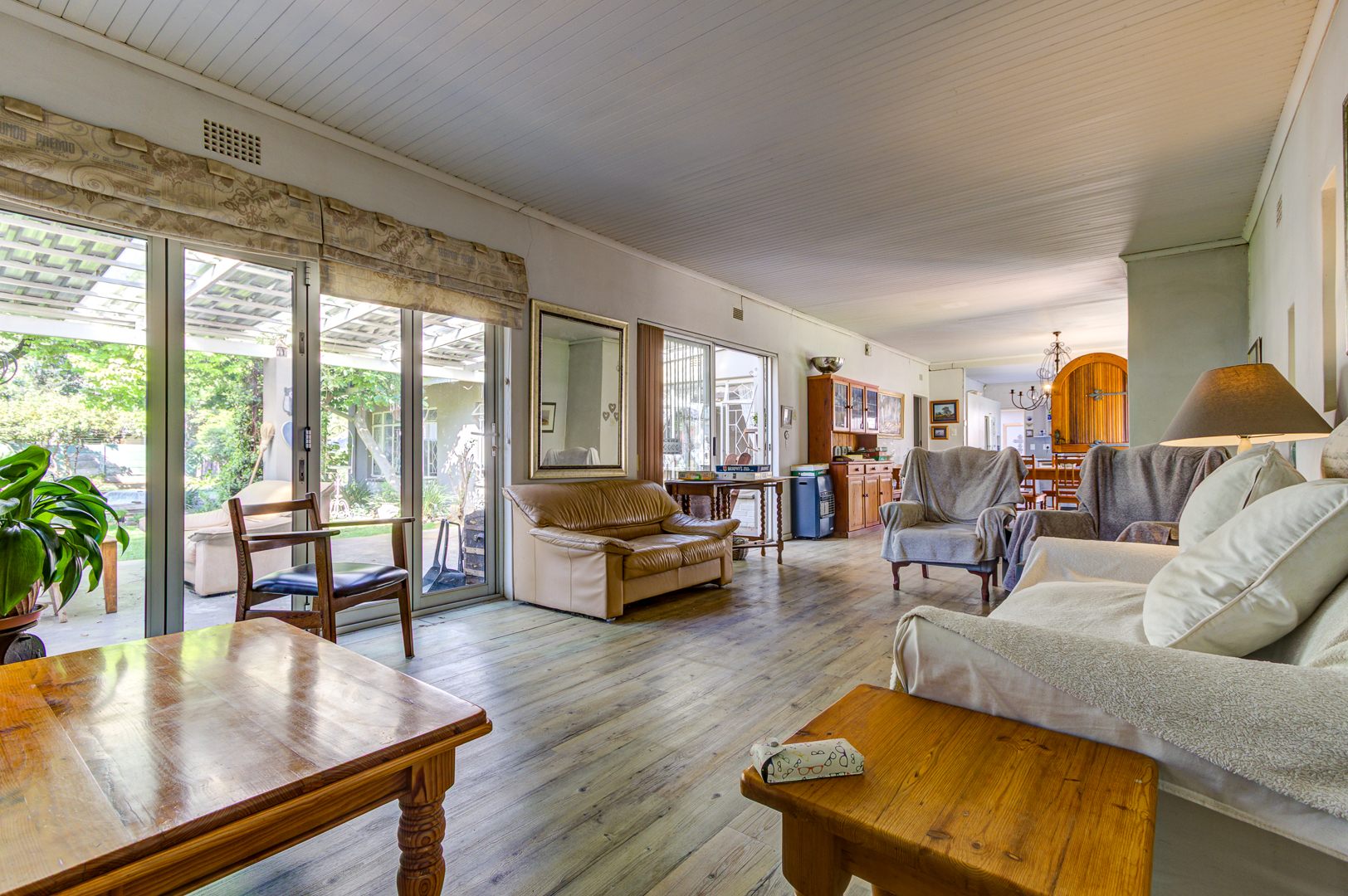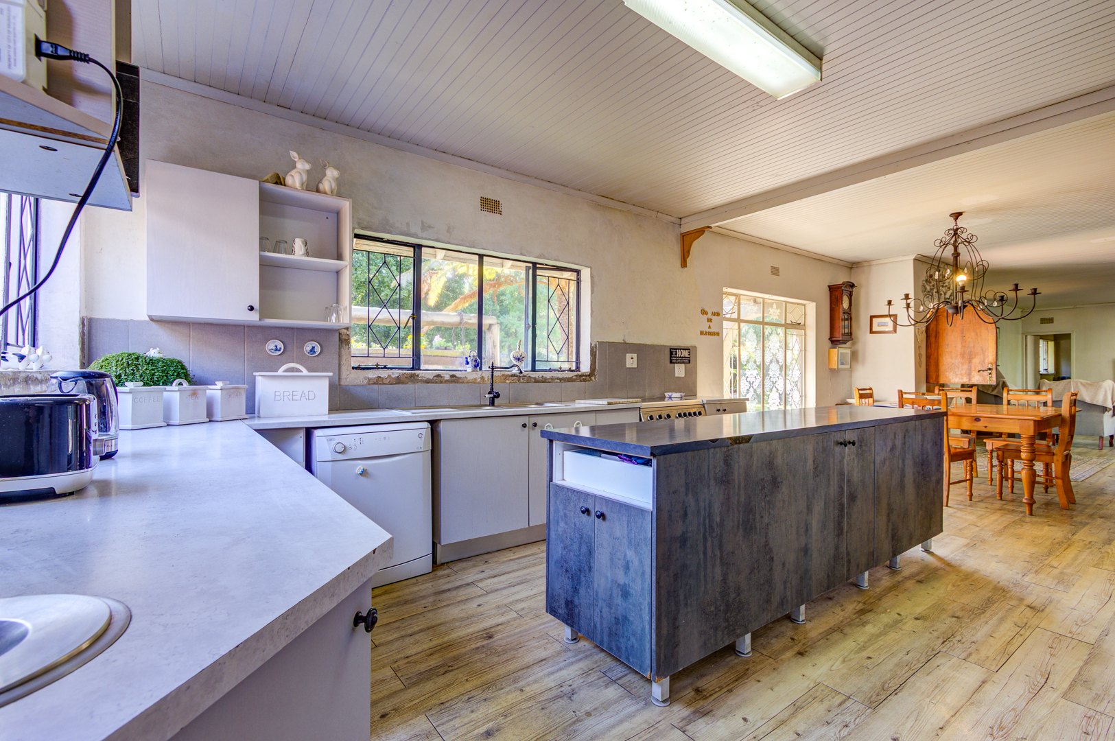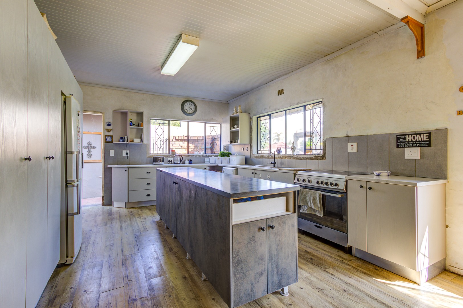 The open-plan kitchen, dining, and lounge layout creates a sense of flow and possibility. A central island, double sink, gas stove, and ample cupboards make the kitchen both functional and inspiring. The lounge leads onto a large covered patio with enough room for both dining and lounging—perfect for entertaining or family gatherings.