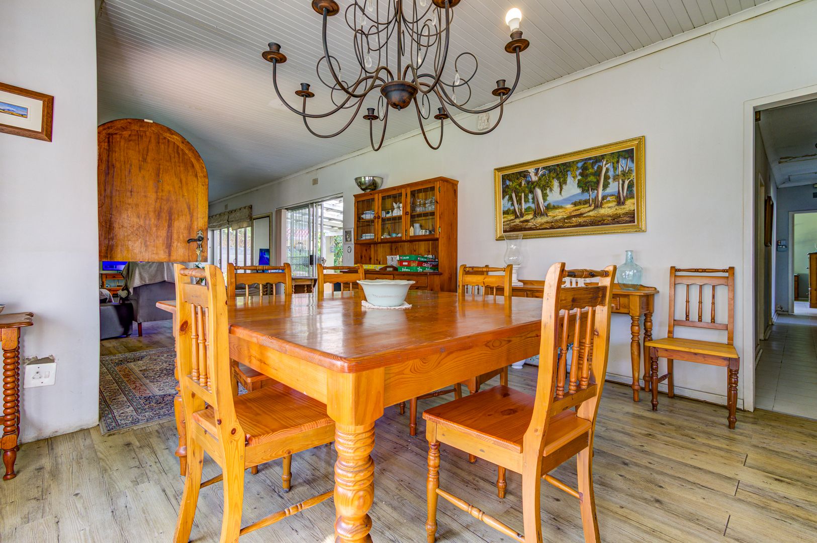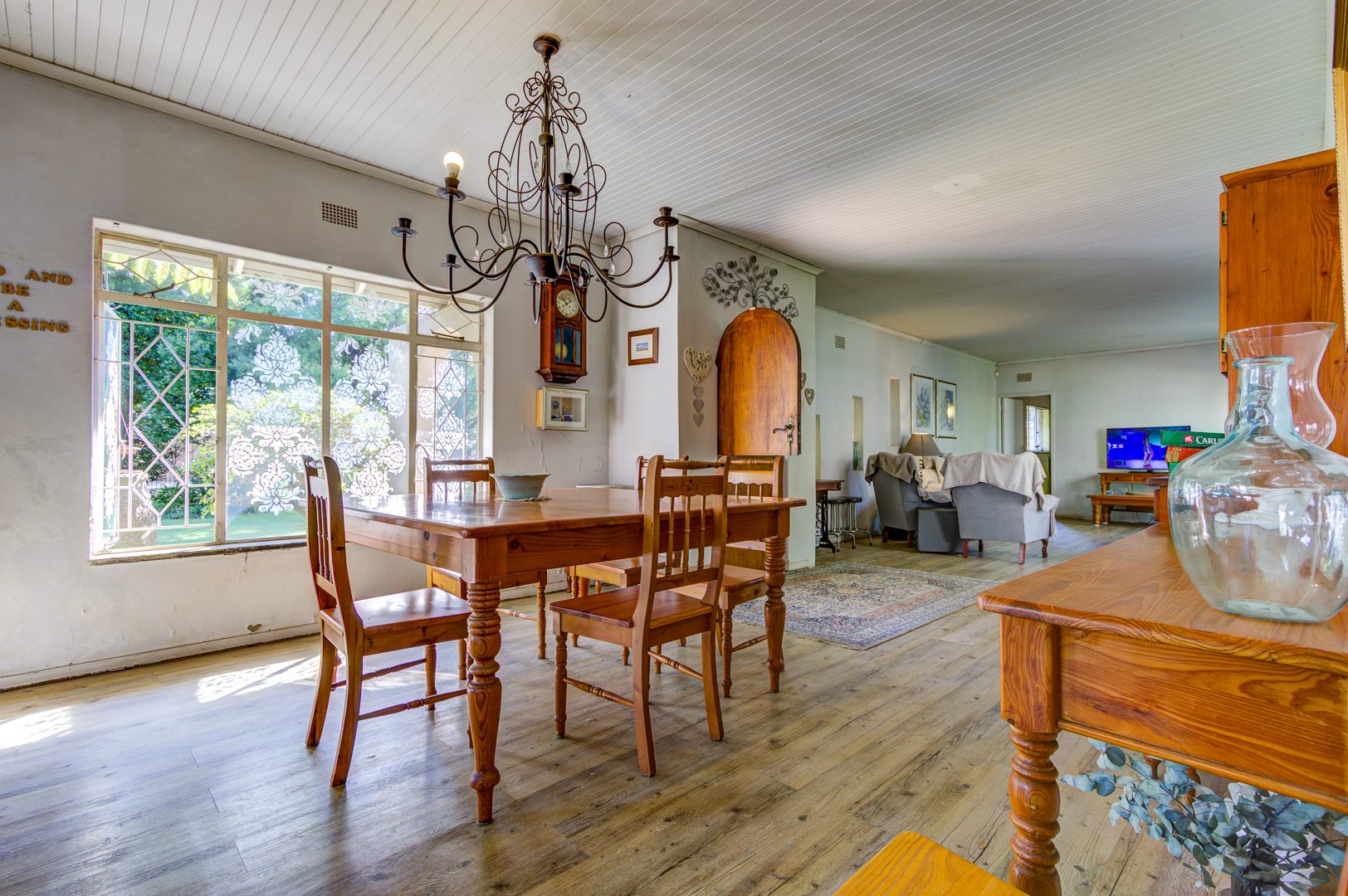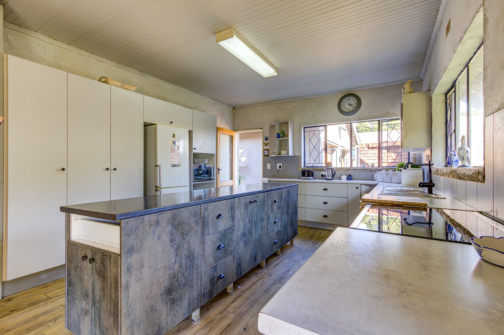 The open-plan kitchen, dining, and lounge layout creates a sense of flow and possibility. A central island, double sink, gas stove, and ample cupboards make the kitchen both functional and inspiring. The lounge leads onto a large covered patio with enough room for both dining and lounging—perfect for entertaining or family gatherings.