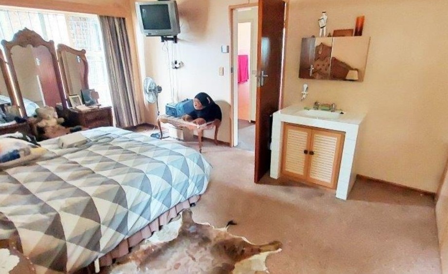 Upstairs, you’ll find five well-proportioned bedrooms, each offering ample space, built-in cupboards, and contemporary finishes. The master suite serves as a true retreat, featuring a stylish en-suite bathroom and private balcony views over the garden.