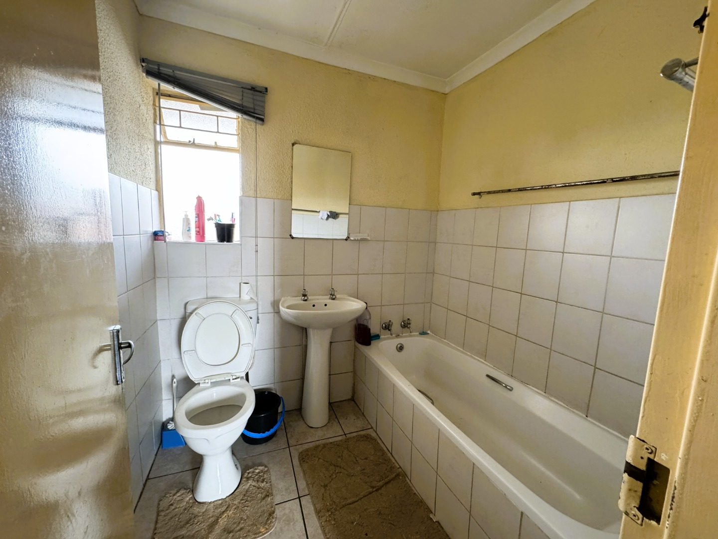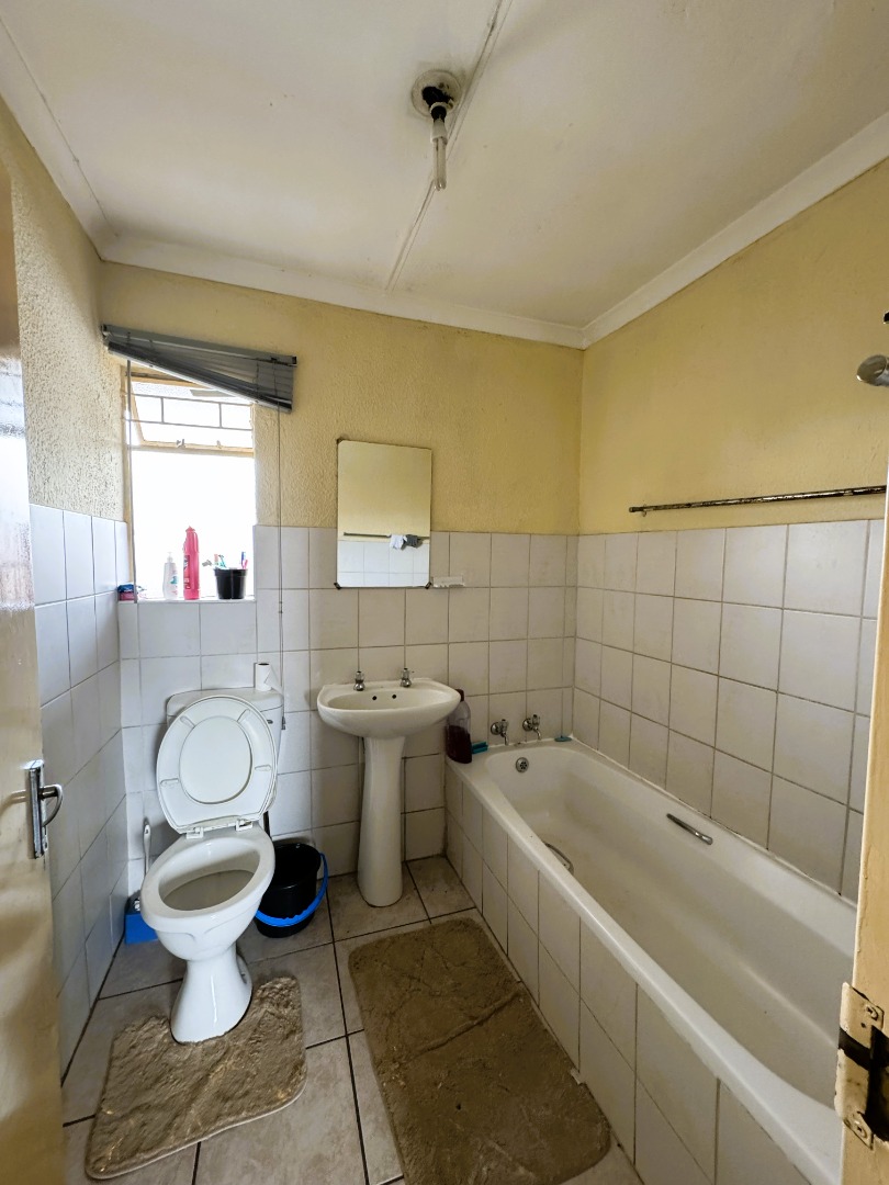 Both bedrooms are generously sized and fully tiled. The main bedroom is large and airy, offering ample space for additional furniture, while the second bedroom is equally well-sized, perfect for a child’s room, guest bedroom, or home office. The property includes one full bathroom fitted with a toilet, basin, and bathtub, finished in a practical and easy-to-maintain design.