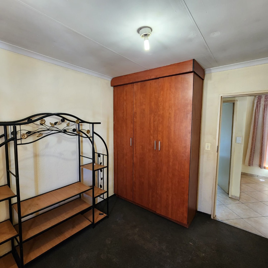 Security is a key feature of this property, which includes an alarm system, an access gate, and burglar bars on windows, alongside a totally walled perimeter. The paved driveway provides practical off-street parking, and the garden area offers potential for personalisation and outdoor enjoyment.