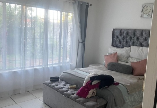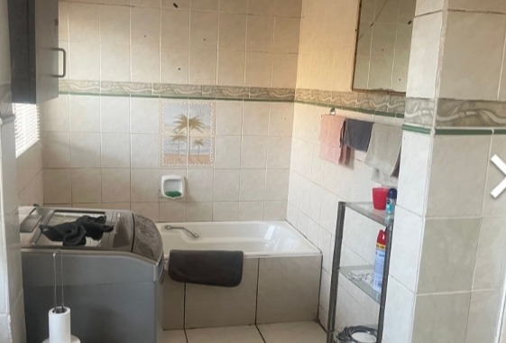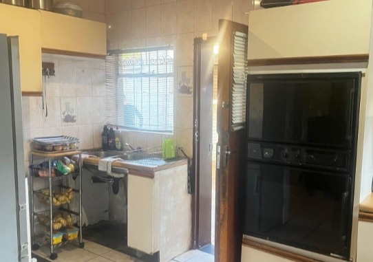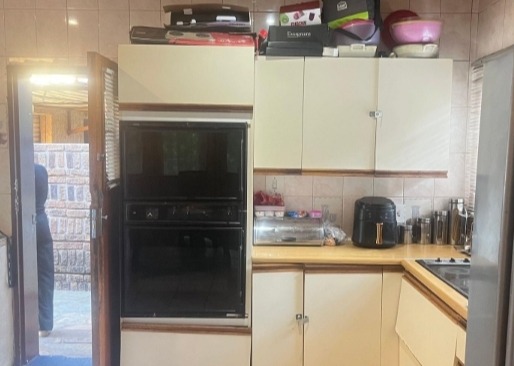 Discover this 3-bedroom, 2-bathroom home situated on a generous 1000 sqm erf in Birch Acres, Kempton Park, South Africa. The functional kitchen features tiled walls, a built-in double oven, and an L-shaped counter, offering direct outdoor access. Bedrooms are well-lit with large windows, security bars, and dual curtains, complemented by tiled flooring and built-in wardrobes for storage. The property boasts extensive outdoor flagstone paving, a secure gated entrance, and a paved driveway. Parking is abundant with two garages and additional covered parking for multiple vehicles, totaling four parking spaces. This residence provides a solid foundation for comfortable living with room for personal touches.