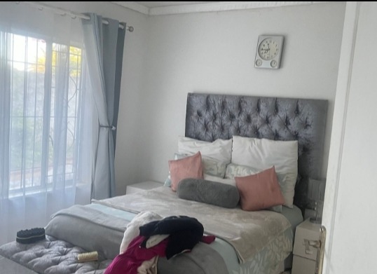 Discover this 3-bedroom, 2-bathroom home situated on a generous 1000 sqm erf in Birch Acres, Kempton Park, South Africa. The functional kitchen features tiled walls, a built-in double oven, and an L-shaped counter, offering direct outdoor access. Bedrooms are well-lit with large windows, security bars, and dual curtains, complemented by tiled flooring and built-in wardrobes for storage. The property boasts extensive outdoor flagstone paving, a secure gated entrance, and a paved driveway. Parking is abundant with two garages and additional covered parking for multiple vehicles, totaling four parking spaces. This residence provides a solid foundation for comfortable living with room for personal touches.