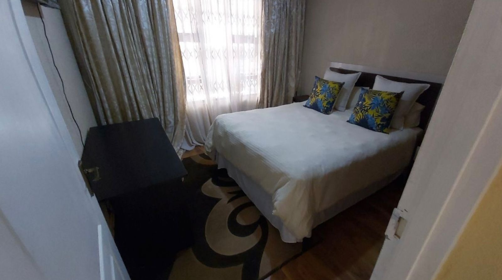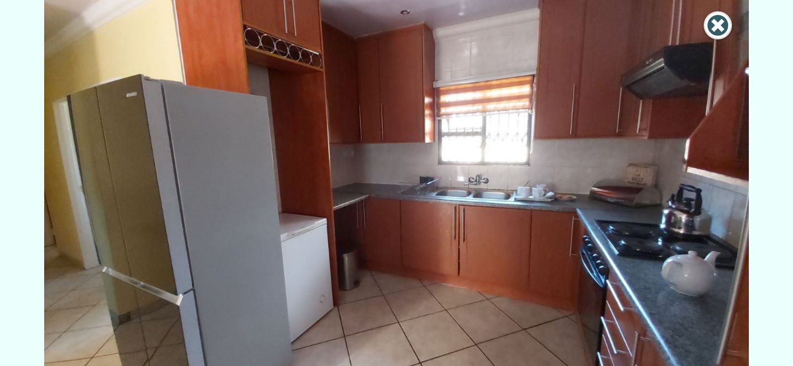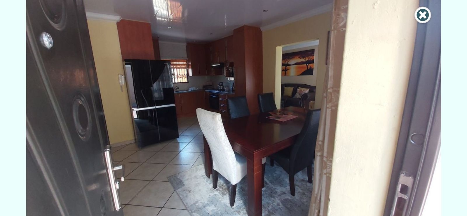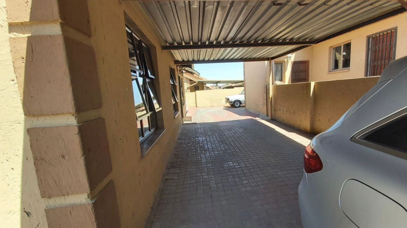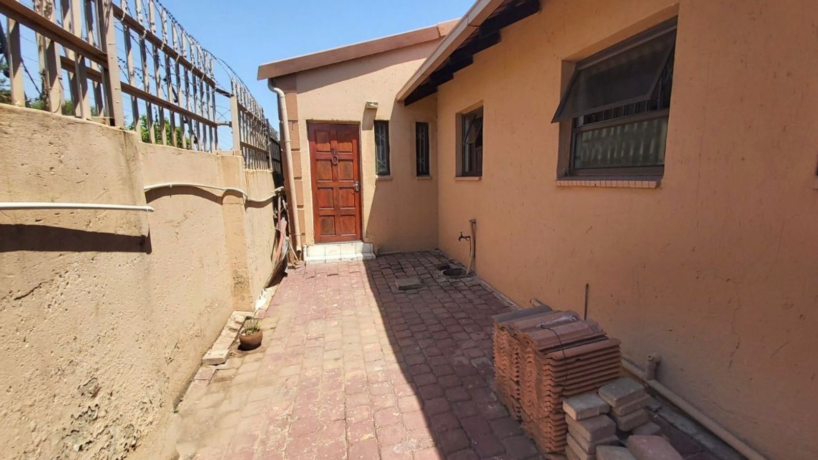 Discover this inviting single-story residence located in the established suburb of Birchleigh North, Kempton Park. The property presents a practical layout designed for comfortable living, featuring a red tiled roof and light brown exterior walls. The front of the home boasts a paved driveway leading to a convenient carport, offering sheltered parking for vehicles. Security is a key consideration, with security gates on all visible windows and the sliding glass door, complemented by a high perimeter wall with barbed wire for enhanced peace of mind. Step inside to an open-plan living area that seamlessly connects to the kitchen, dining, and lounge spaces, all featuring easy-to-maintain tiled flooring. The kitchen is equipped with extensive wooden cabinetry, providing ample storage, a double sink, and a built-in stove with an extractor fan. It also offers dedicated space for a large refrigerator and a chest freezer, catering to all your culinary needs. A window with security bars ensures natural light and ventilation. This home offers three comfortable bedrooms, each designed for rest and relaxation. One bedroom features a large built-in wardrobe and a matching dresser, while another benefits from natural light through a window fitted with security bars. The property includes one bathroom with a bathtub and showerhead attachment, along with a pedestal sink. A separate, compact toilet room is also available, featuring tiled walls and a window with security bars. While some areas may benefit from minor cosmetic updates, the home provides a solid foundation for personalization. Outside, the paved side yard offers additional practical space. The property's security features, including robust gates and window bars, contribute to a secure environment. With two parking spaces available, this home combines functionality with essential security elements. Birchleigh North is a well-regarded residential area within Kempton Park, offering convenient access to local amenities and transport routes. It provides a suburban lifestyle with a strong sense of community. Key Features: * 3 Bedrooms, 1 Bathroom * 2 Parking Spaces (Carport) * Open-plan living areas * Functional kitchen with ample storage * Paved driveway and yard * Comprehensive security features (gates, bars, perimeter wall) * Tiled flooring throughout * Established suburban location