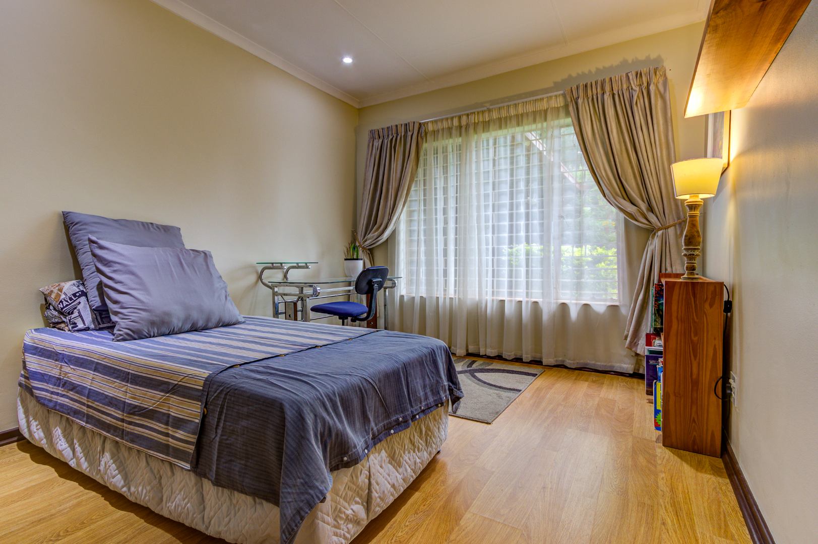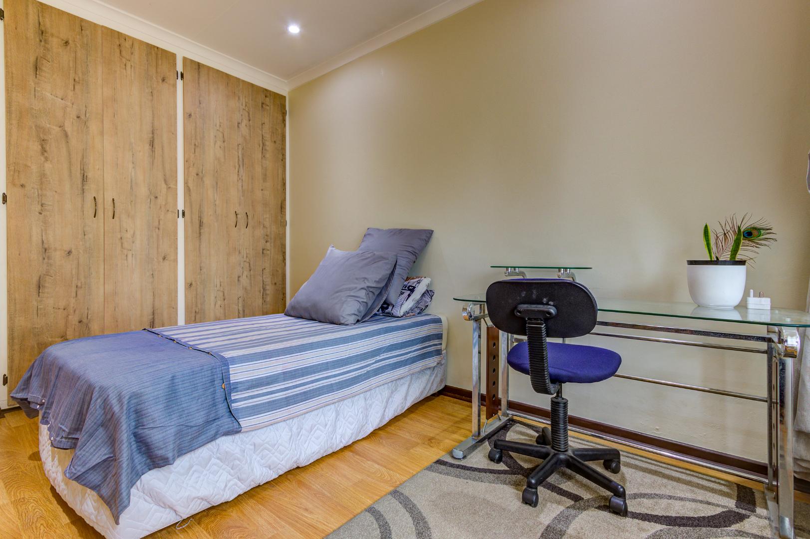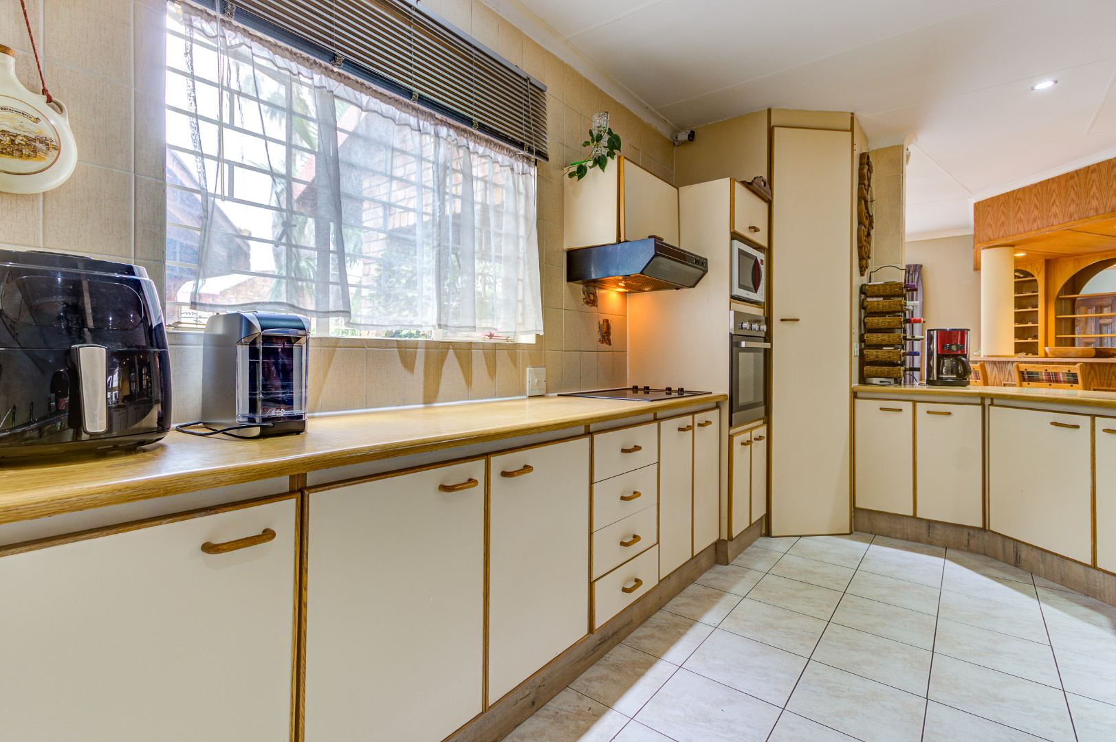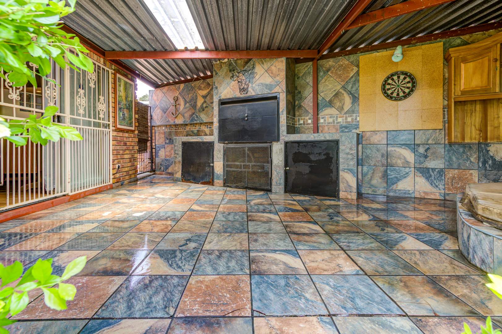 Outside, the property boasts a well-kept garden and paved areas, perfect for outdoor enjoyment. A lapa and built-in braai enhance the outdoor living experience. Parking is well catered for with a double garage. For peace of mind, the property is totally walled and equipped with an alarm system, complemented by security gates and burglar bars on windows, ensuring a secure environment.