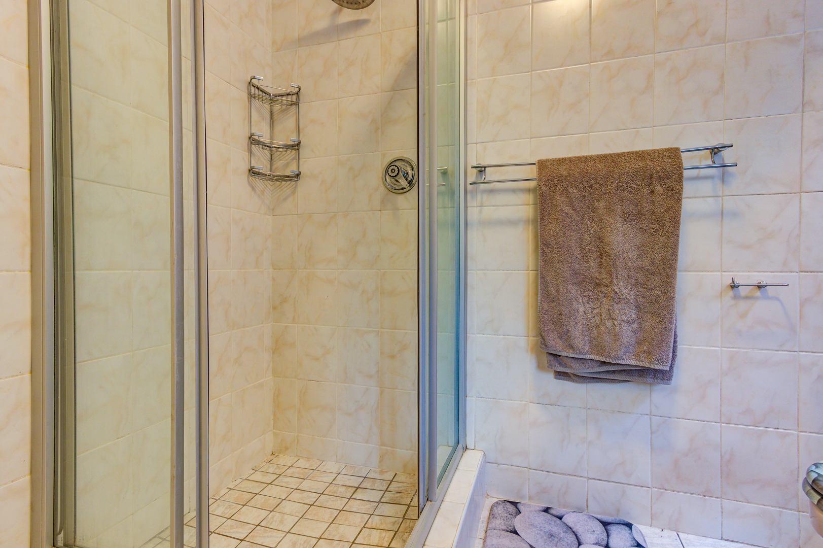 The home offers two well-proportioned bedrooms, both featuring durable hardwood or laminate flooring and ample natural light. The main bedroom includes an en-suite bathroom for added privacy. Built-in wooden wardrobes provide generous storage in bedrooms and the hallway. The two bathrooms are fully tiled, with one offering a bathtub, ensuring practical and easy maintenance.