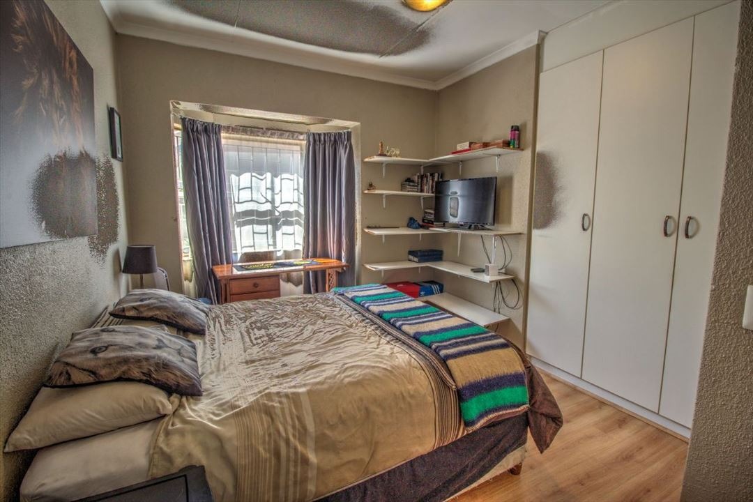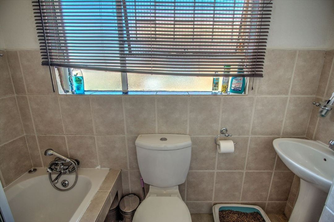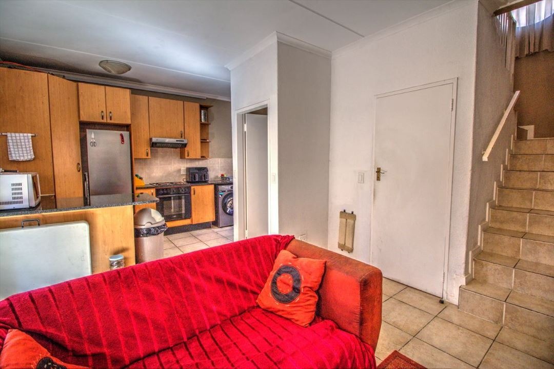The tiled open-plan lounge features a sliding door that fills the home with natural light and leads out to the private garden, ideal for quiet relaxation or small pets—cats are allowed. The kitchen is practical and well-designed, complete with a combo scullery, small laundry area, and a handy pantry cupboard.