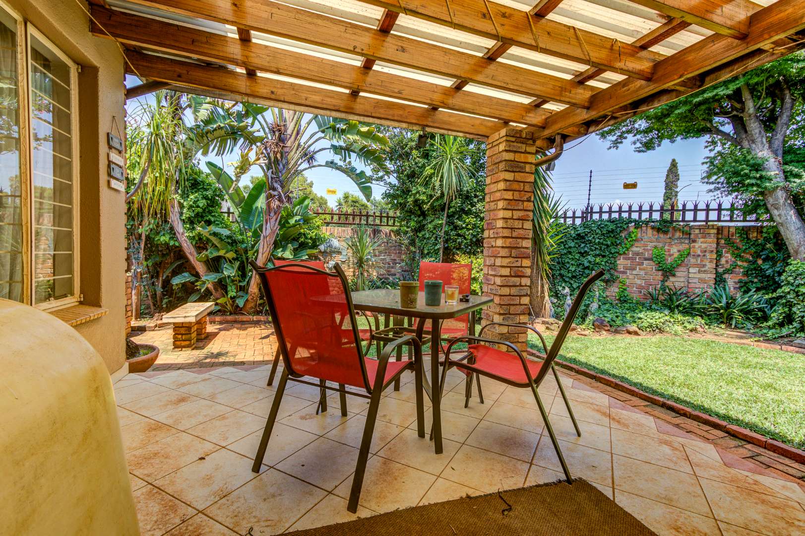 Two well-proportioned bedrooms and 1 full bathroom with separate guest toilet, designed for comfort and convenience. Outdoor living is a highlight, with a covered patio perfect for alfresco dining. A built-in braai area is ideal for entertaining, complemented by a lush, established garden and paved sections for easy maintenance.