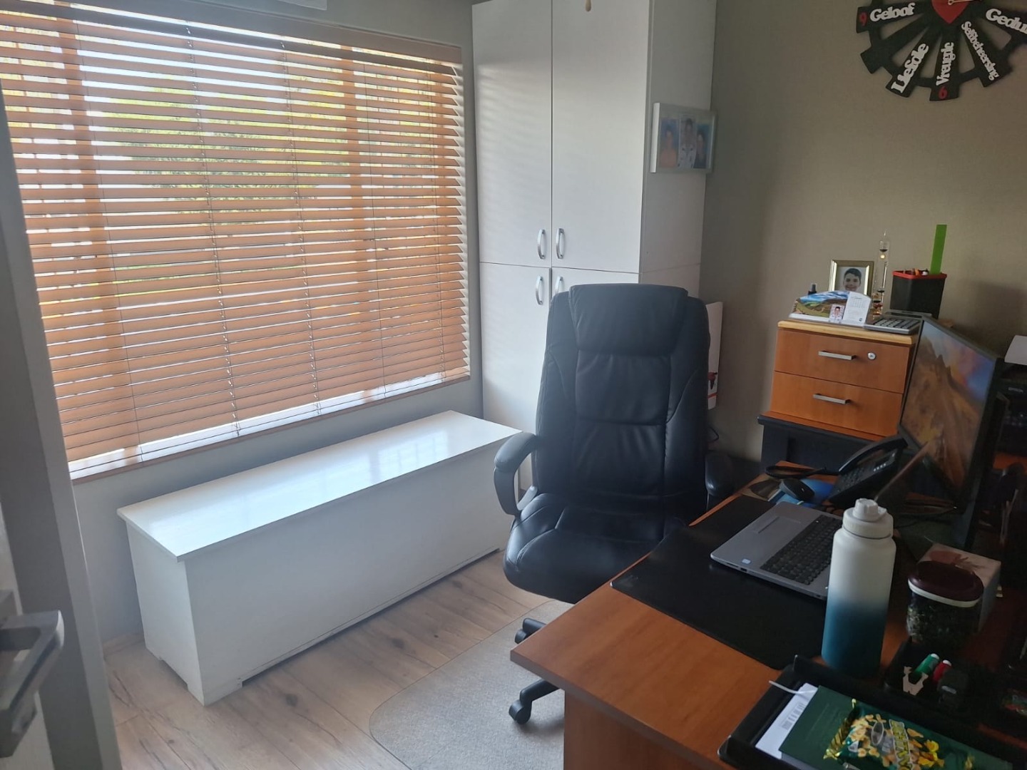 Discover this inviting 3-bedroom, 2-bathroom residence nestled within a secure complex in Birchleigh, Kempton Park. This property presents a durable brick exterior with a multi-level design, complemented by a gated entry and paved access, ensuring a welcoming first impression. The expansive 11843 sqm erf offers significant outdoor potential, a rare find for a residential property, providing ample space for future enhancements or recreational activities. Inside, the home features a comfortable layout designed for practical living. The spacious lounge area, complete with a functional ceiling fan and abundant natural light from large windows, creates an ideal setting for relaxation and entertainment. Adjacent to this, a dedicated dining room provides a perfect space for family meals. The functional kitchen is ready to cater to your culinary needs, forming the heart of this family home. Accommodation includes three well-proportioned bedrooms, each featuring wood-look flooring and unique ceiling details, such as paneled or beaded finishes, adding character. The main bedroom benefits from an en-suite bathroom, while a second full bathroom serves the remaining rooms. A dedicated home office space, equipped with built-in storage and a large window, offers a quiet and productive environment for remote work or study. Further enhancing this property are the practical amenities, including two garages providing secure parking and additional storage. The security complex setting offers peace of mind, making it an ideal choice for families seeking a safe and comfortable living environment. This home combines functional living spaces with the benefits of a large erf in a desirable location. Birchleigh, situated in Kempton Park, South Africa, is a well-established suburb known for its community feel and convenient access to local amenities and transport routes, making it a sought-after area for residents. Key Features: * 3 Bedrooms, 2 Bathrooms (1 En-suite) * Spacious Lounge and Dining Room * Dedicated Home Office Space * 2 Garages with Paved Access * Expansive 11843 sqm Erf * Secure Complex Living * Durable Brick Construction * Wood-Look Flooring Throughout