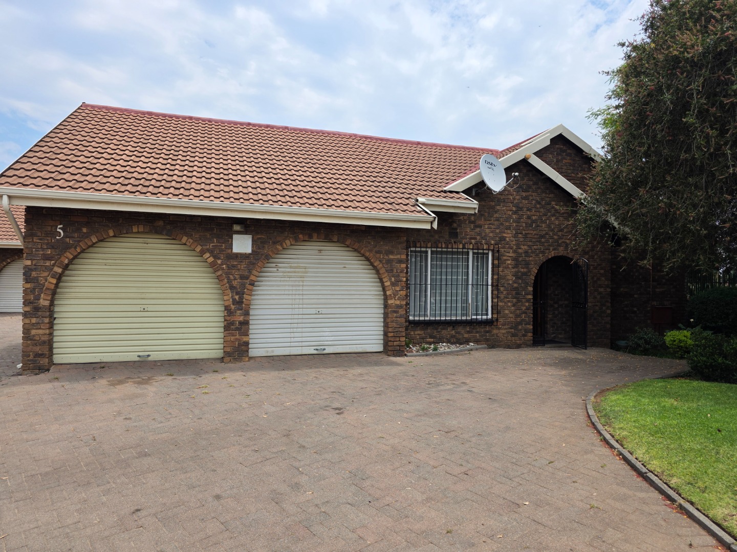 Discover this charming single-story facebrick townhouse in Birchleigh, Kempton Park. The property features a durable tiled roof, a well-maintained front lawn with a large shade tree, and a paved driveway leading to a double garage with distinctive arched doors. The property is totally walled and secured with an access gate, ensuring privacy and peace of mind.