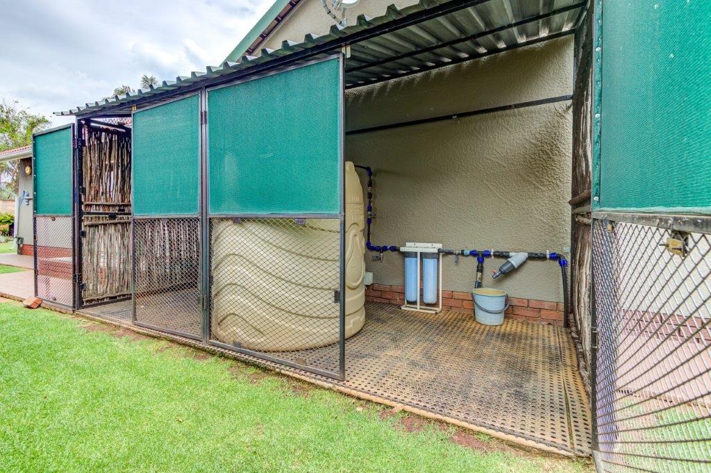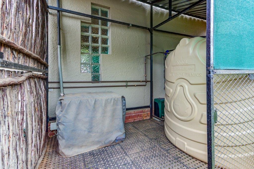 entertainment at Its Best. This home truly shines outdoors: Expansive entertainment area with stacking doors, Unique Solid glass roof with adjustable weather blinds, Tiled floors and built-in braai, Overlooking a sparkling heated marble-like pool, Waterfall feature with separate pump system, Beautifully manicured garden with tranquil water feature, Outside toilet with basin, fully tiled parking and Practical Extras. Large 70m² double garage, Double carport, Energy and Water Security (Major Value Add!) Borehole with filtration & sprinkler system, 2000L JoJo tank with pressure pump (connected to the house), 6kVA generator connected to the main DB board