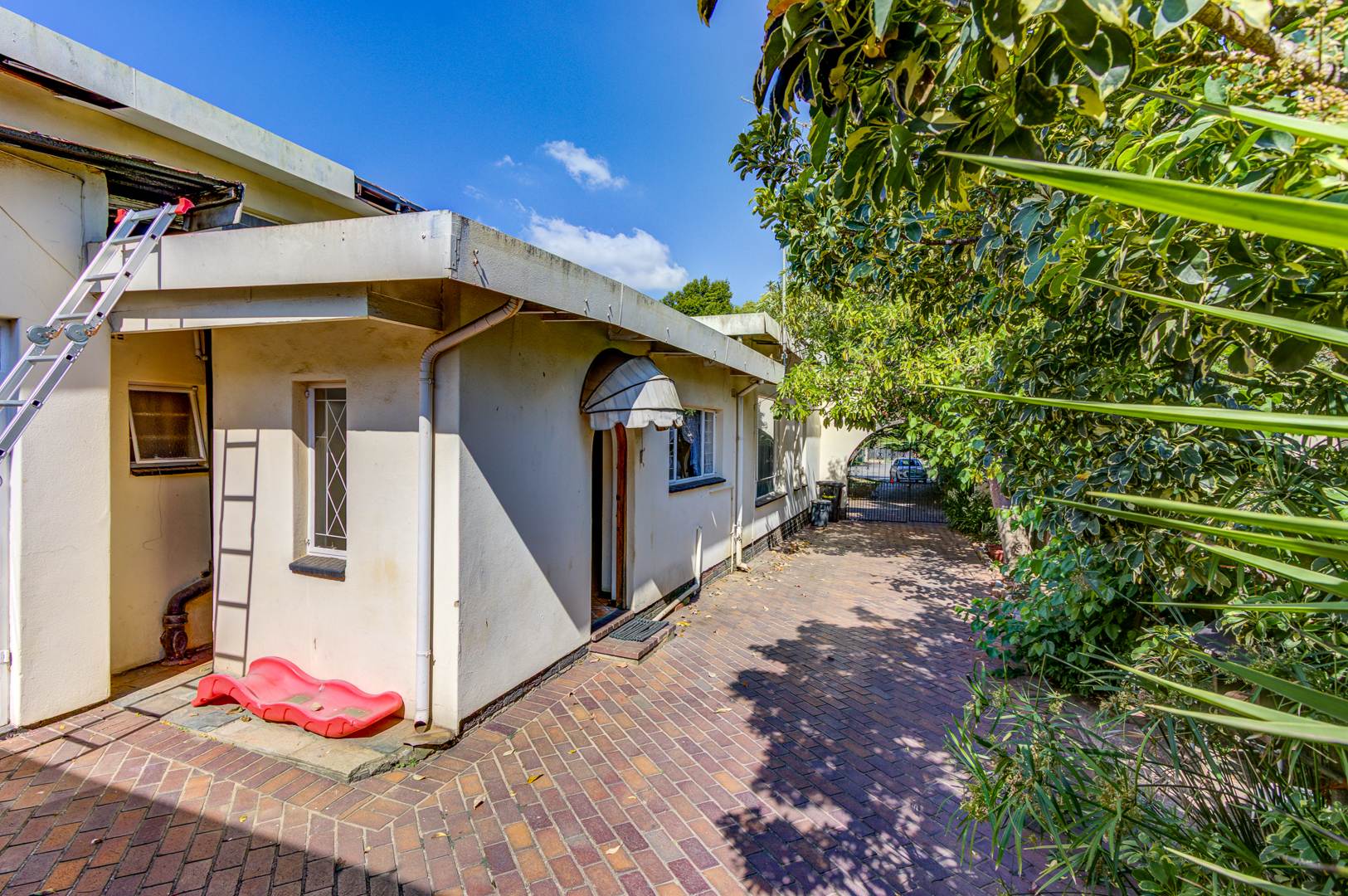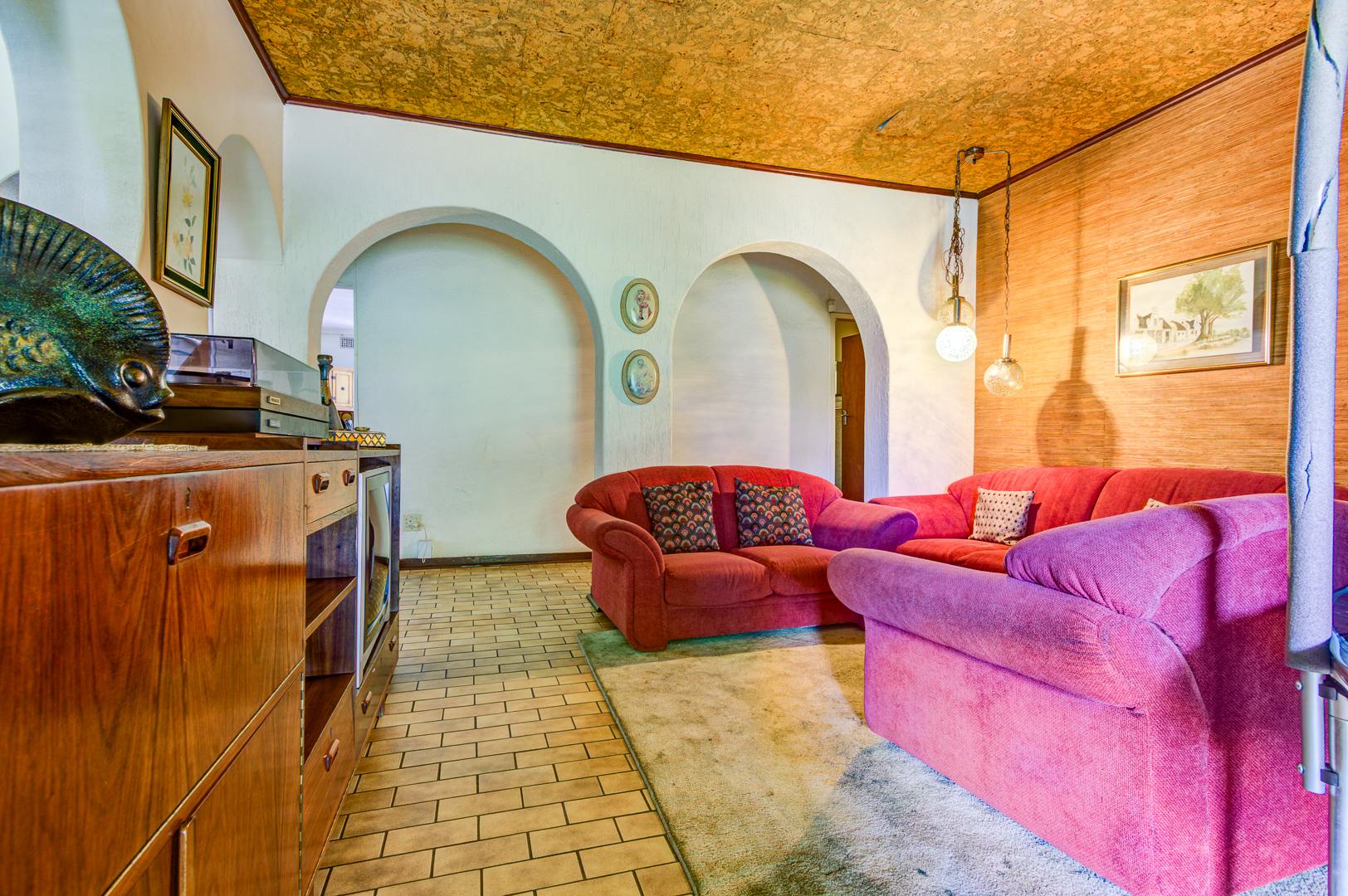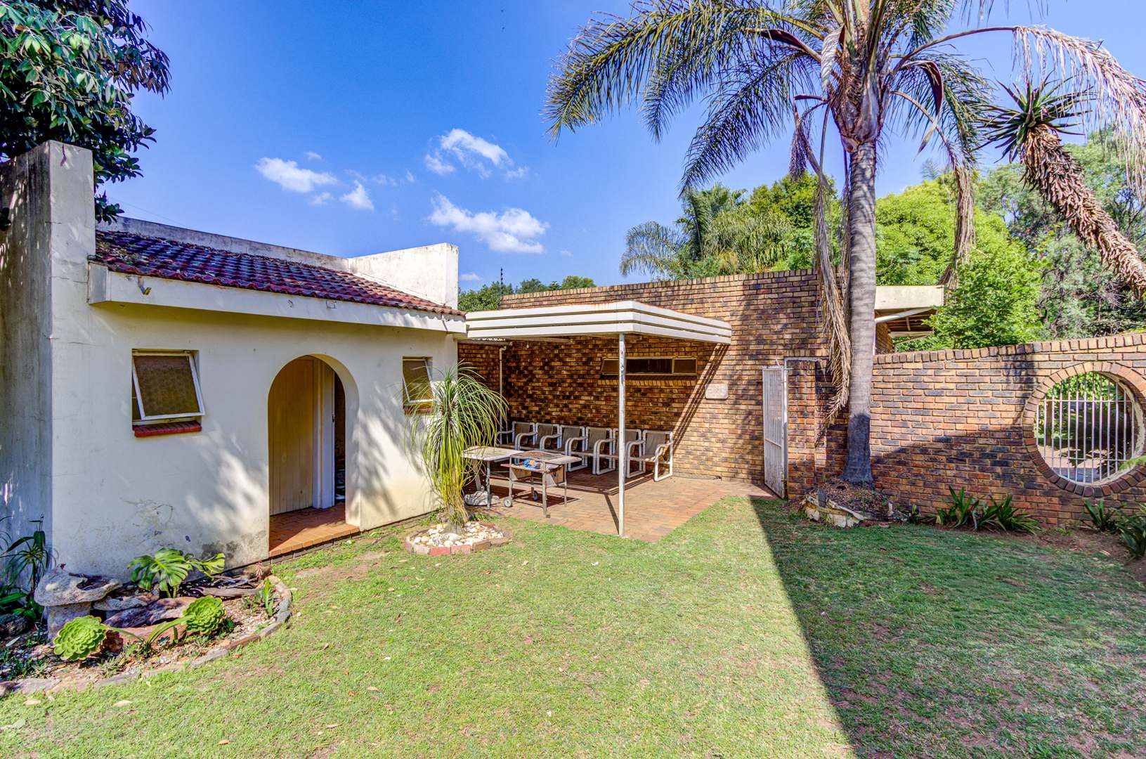Nestled in the established suburb of Birchleigh, Kempton Park, this substantial 346 sqm residence on a generous 1400 sqm erf presents a unique renovation opportunity. The property boasts distinctive architectural features, including arched windows and a covered entrance, set amidst mature trees and lush landscaping. Brick-paved driveways and multiple covered parking options offer a welcoming first impression, hinting at the grandeur that can be restored. Birchleigh offers suburban living with convenient access to local amenities, walking distance to Birchleigh high school and close to Birchleigh primary school.