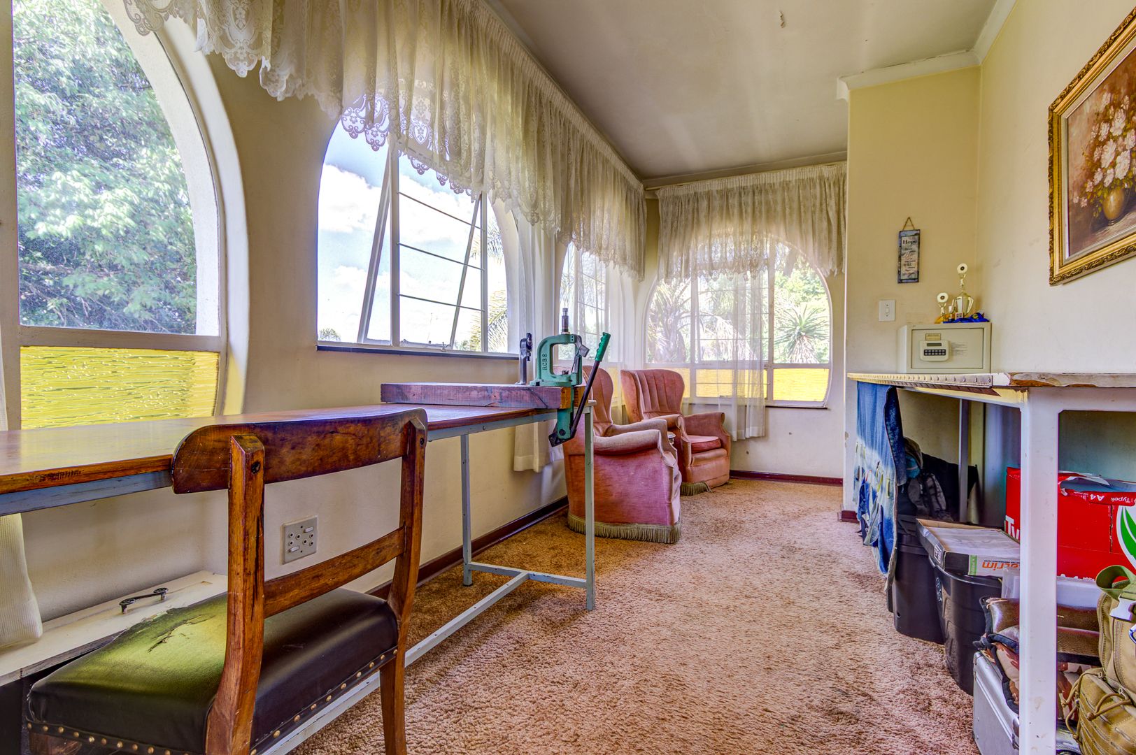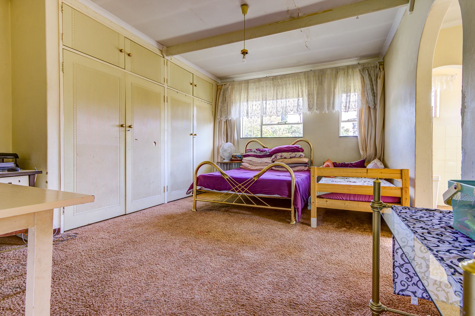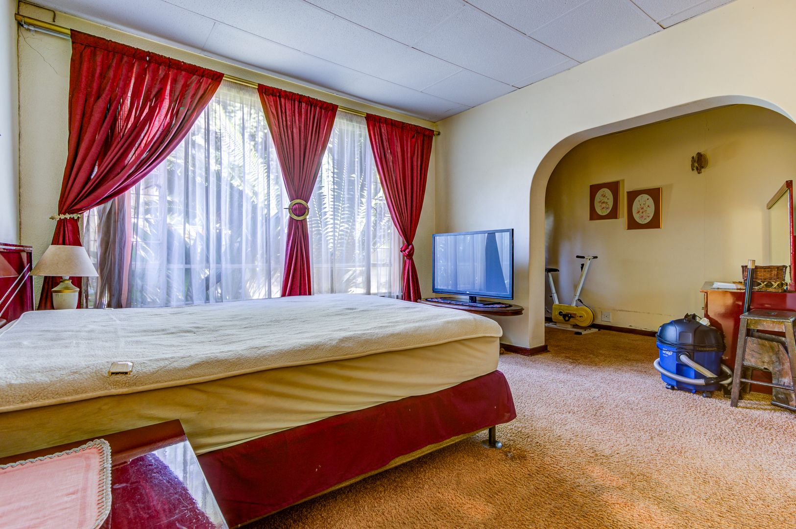 Nestled in the established suburb of Birchleigh, Kempton Park, this substantial 346 sqm residence on a generous 1400 sqm erf presents a unique renovation opportunity. The property boasts distinctive architectural features, including arched windows and a covered entrance, set amidst mature trees and lush landscaping. Brick-paved driveways and multiple covered parking options offer a welcoming first impression, hinting at the grandeur that can be restored. Birchleigh offers suburban living with convenient access to local amenities, walking distance to Birchleigh high school and close to Birchleigh primary school.