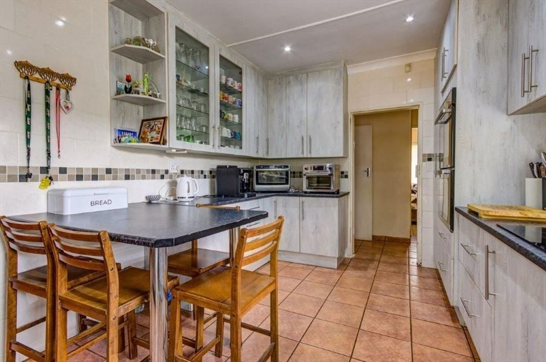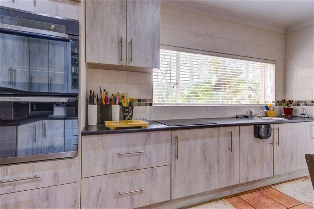 The home features four spacious bedrooms and two bathrooms, including a main bedroom with an en-suite bathroom. The newly renovated full second bathroom adds modern comfort. The open-plan lounge and dining area flow seamlessly into the kitchen, which includes a built-in braai for easy indoor entertaining. The kitchen is fitted with a double eye-level oven, glass hob, scullery with double sink, and space for a dishwasher.