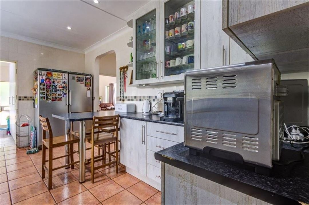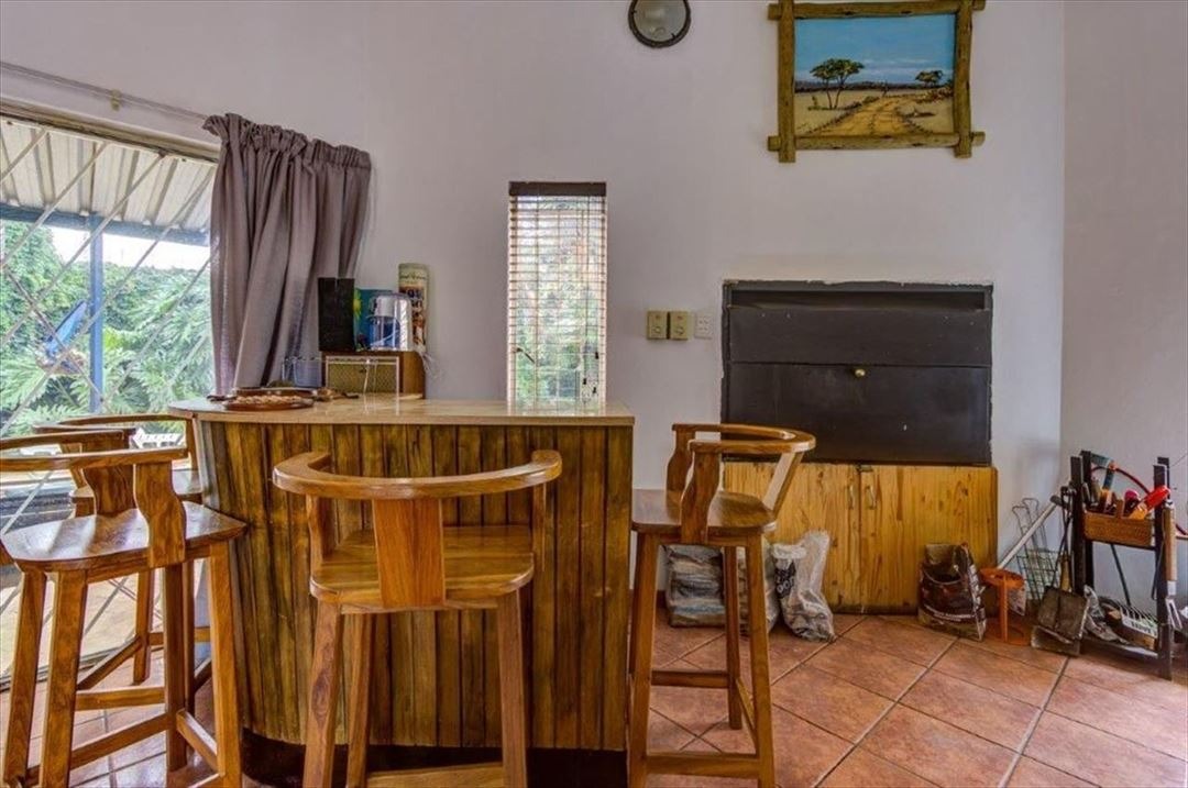 Additional highlights include a large automated garage accommodating a caravan and two vehicles, a strong borehole, a wendy house for storage, and a full alarm system with armed response.