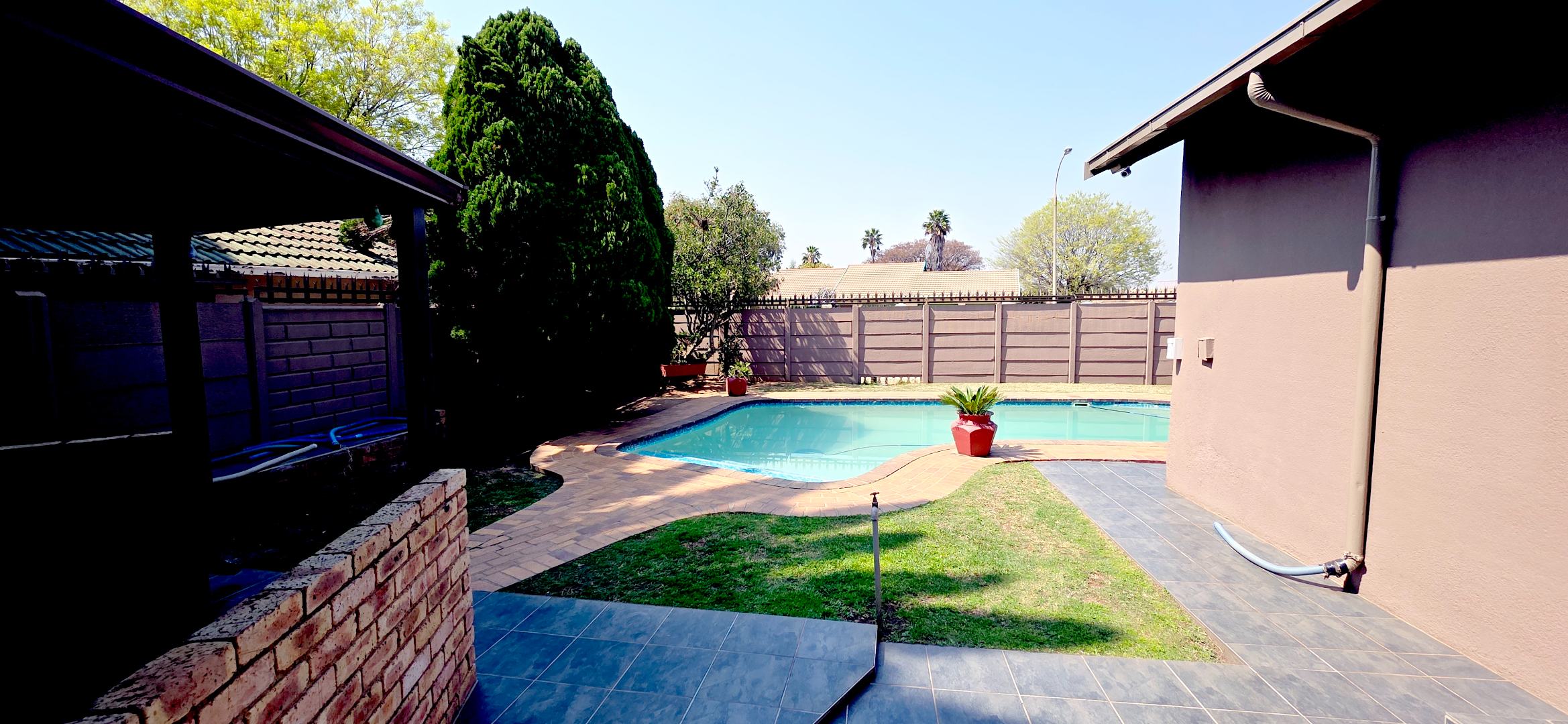 This charming home boasts three comfy bedrooms and two bathrooms, with one being a private en-suite for added convenience. There's also a dedicated laundry area to keep things tidy. Outside, the property truly shines with a sparkling pool, a fantastic lapa, and a built-in braai, creating the ultimate outdoor entertainment zone. The established garden and paving add to the appeal, providing a great space for kids and pets to play freely.