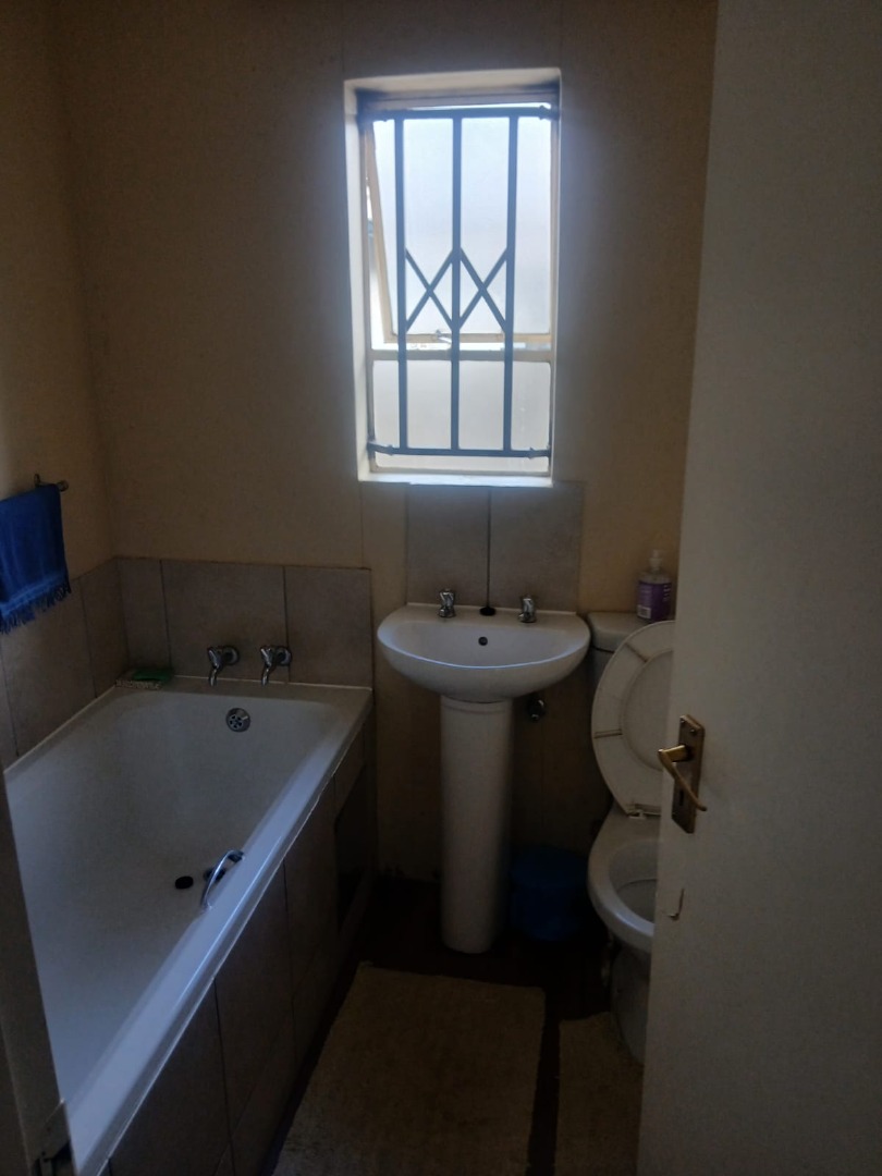 Clayville, Midrand, offers a convenient suburban lifestyle in South Africa, known for its accessibility and community feel. This area provides a practical setting for residents seeking a well-connected location. This inviting 2-bedroom, 1-bathroom residential property presents a secure and low-maintenance lifestyle. The exterior boasts a neat grey and cream finish, complemented by a fully paved driveway offering off-street parking under a protective shade net. Enhanced security is a key feature, with a perimeter wall, fencing, an access gate, burglar bars, and an ADT alarm system providing peace of mind. Step inside to a functional open-plan living area, designed for practical daily use. The space accommodates a lounge setup and flows into a compact kitchen. This modern kitchen is equipped with contemporary cabinetry and a built-in microwave, providing essential amenities for meal preparation. Durable dark modular flooring extends throughout these areas, offering a cohesive and easy-to-maintain finish. The home features two comfortable bedrooms, ideal for a small family or individuals. The single bathroom includes a bathtub, pedestal sink, and toilet, benefiting from natural light via a window fitted with security bars. While functional, the bathroom fixtures present a dated aesthetic, offering an opportunity for future personalization. The property sits on a manageable 200 sqm erf, featuring a low-maintenance outdoor area with artificial turf, accessible through a secure metal gate from the interior. This compact outdoor space is perfect for relaxation without extensive upkeep. Furthermore, the inclusion of a solar geyser contributes to potential energy savings, enhancing the home's sustainability profile. Key Features: * 2 Bedrooms, 1 Bathroom * Open-plan living area * Modern kitchen cabinetry * Paved driveway with shade net * Robust security: perimeter wall, gate, ADT alarm, burglar bars * Solar geyser * Low-maintenance artificial turf area * 200 sqm erf size